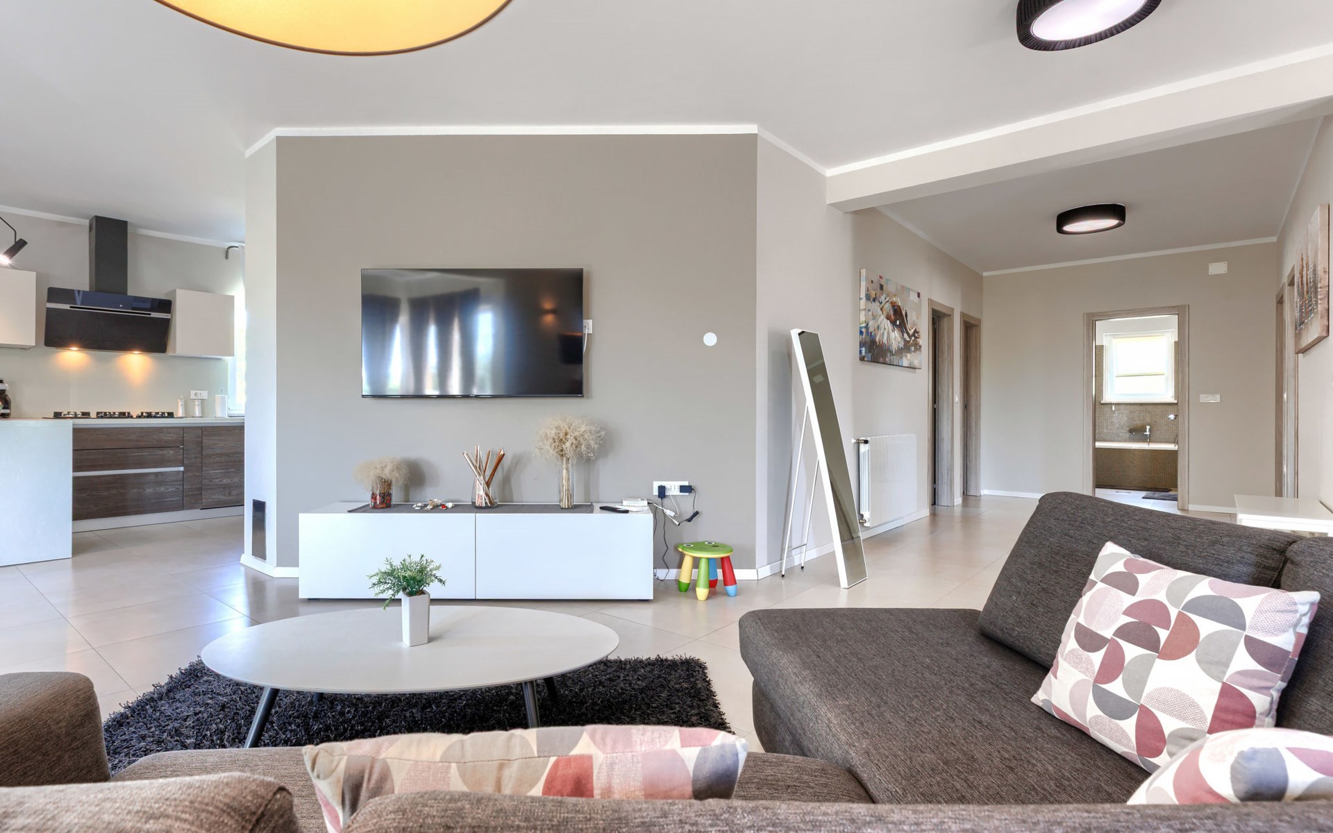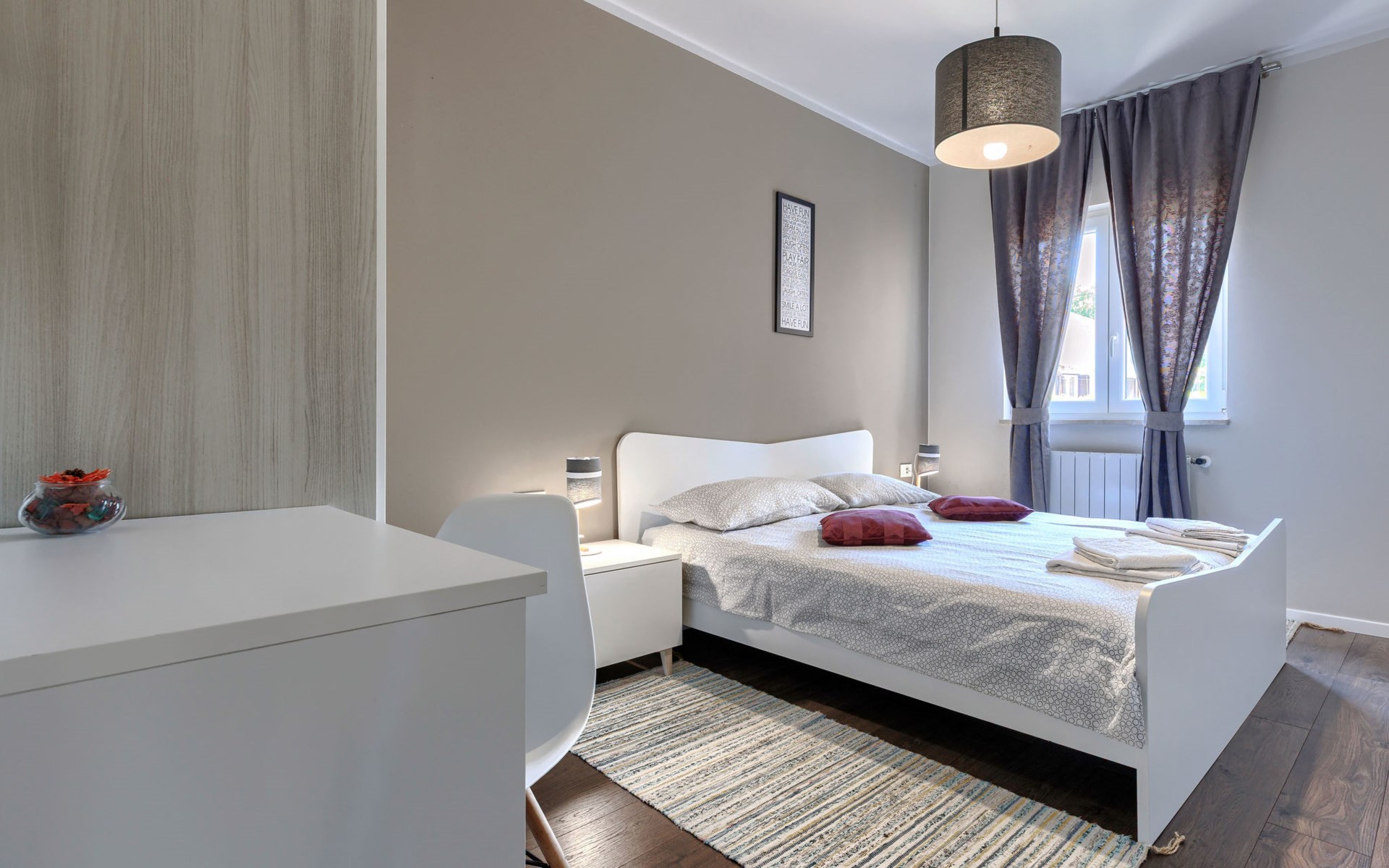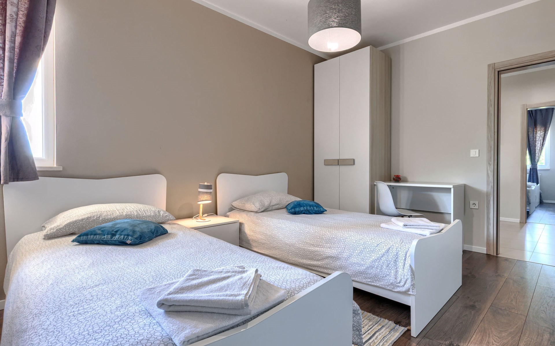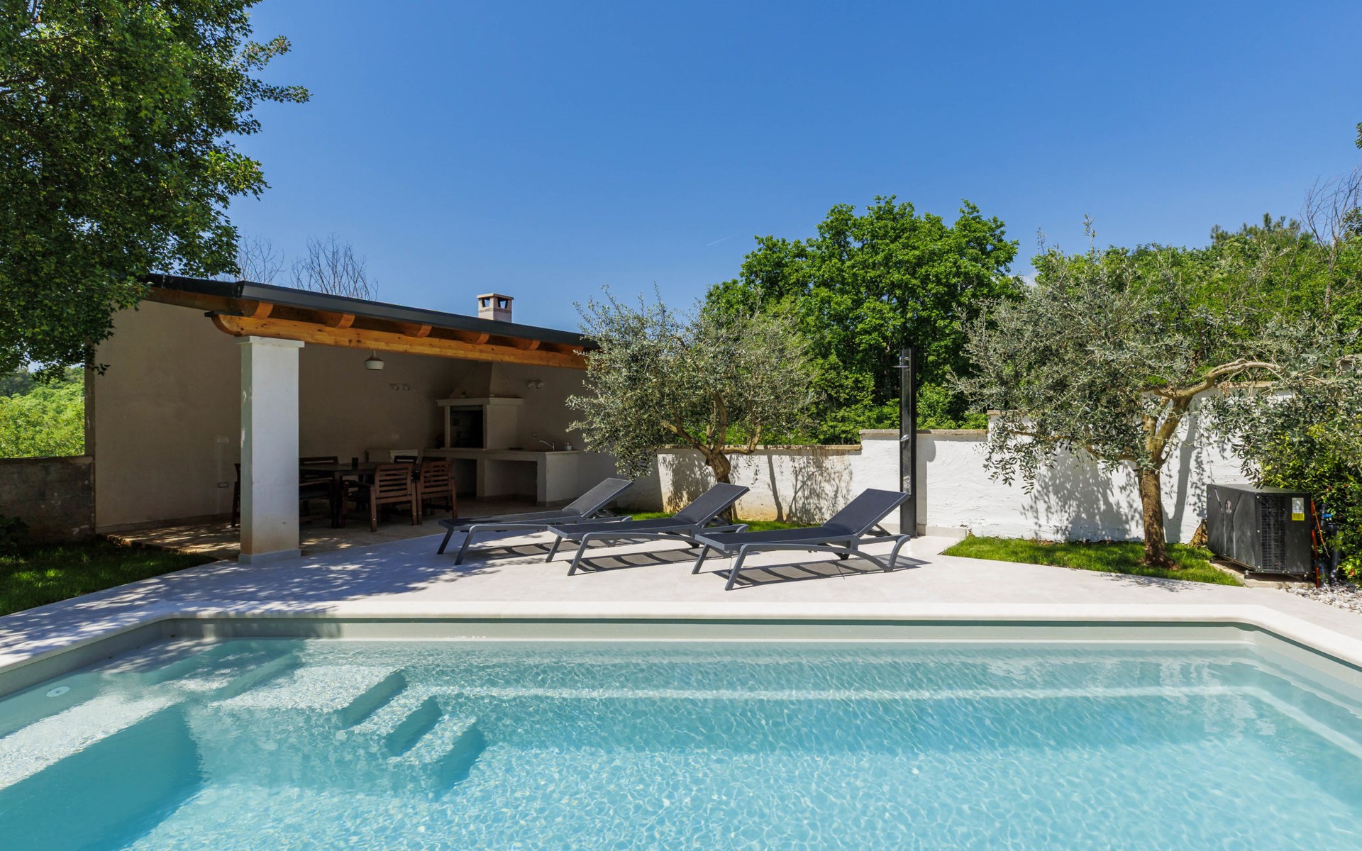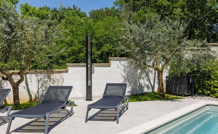 Krnica 22 km van Pula: Huis met 2 woningen "Ana". In het gehucht Beloći, 7 km van het centrum van Krnica, 7 km van het centrum van Barban, 26 km van het centrum van Rabac, rustige, zonnige ligging, 4 km van zee, 4 km van het strand. Voor medegebruik: terrein 800 m2 (omheind), tuin met gazon en planten. Voor alleengebruik: openluchtzwembad hoekig, verwarmd (7 x 4 m, 140 cm diepte, seizoensgebonden beschikbaarheid: 01.Apr. - 01.Nov.) met trap en zout-elektrolyse. Buitendouche, terras (20 m2), tuinmeubelen, barbecue (glijbaan, schommel), onderhoud zwembad door de eigenaar/tuinman. In het huis: internetaansluiting, trampoline, bergruimte voor fietsen. Beschikbaar: fietsen (4). Parkeerplaats bij het huis op het terrein. Oplaadstation. Winkel 2 km, supermarkt 7 km, restaurant 3 km, bushalte 1.4 km, kiezelstrand 4 km, rotsstrand 4 km, strandbad 16 km. Manege 500 m, wandelroutes 50 m vanaf het huis, fietspad 100 m. Attracties in de buurt: Amusement park 6 km. Vliegveld 20 km van het huis. Voor medegebruik: trampoline, fietsen (4), bergruimte voor fietsen. De huiseigenaar adviseert over excursies (op aanvraag, extra). Zwembad verwarmd (tegen betaling). Als er zwembad verwarming nodig is, is het noodzakelijk om dit 7 dagen van te voren aan te geven.
