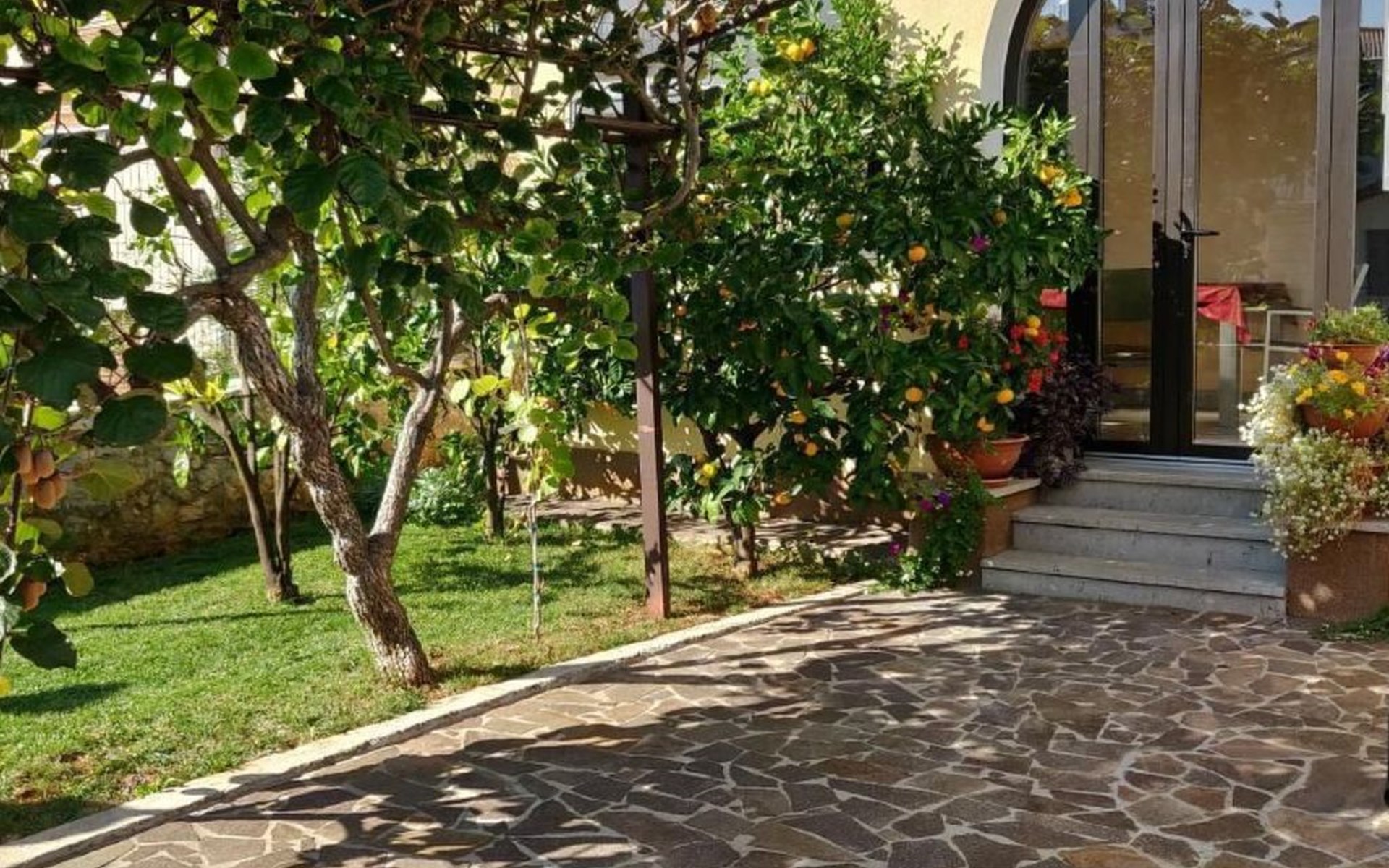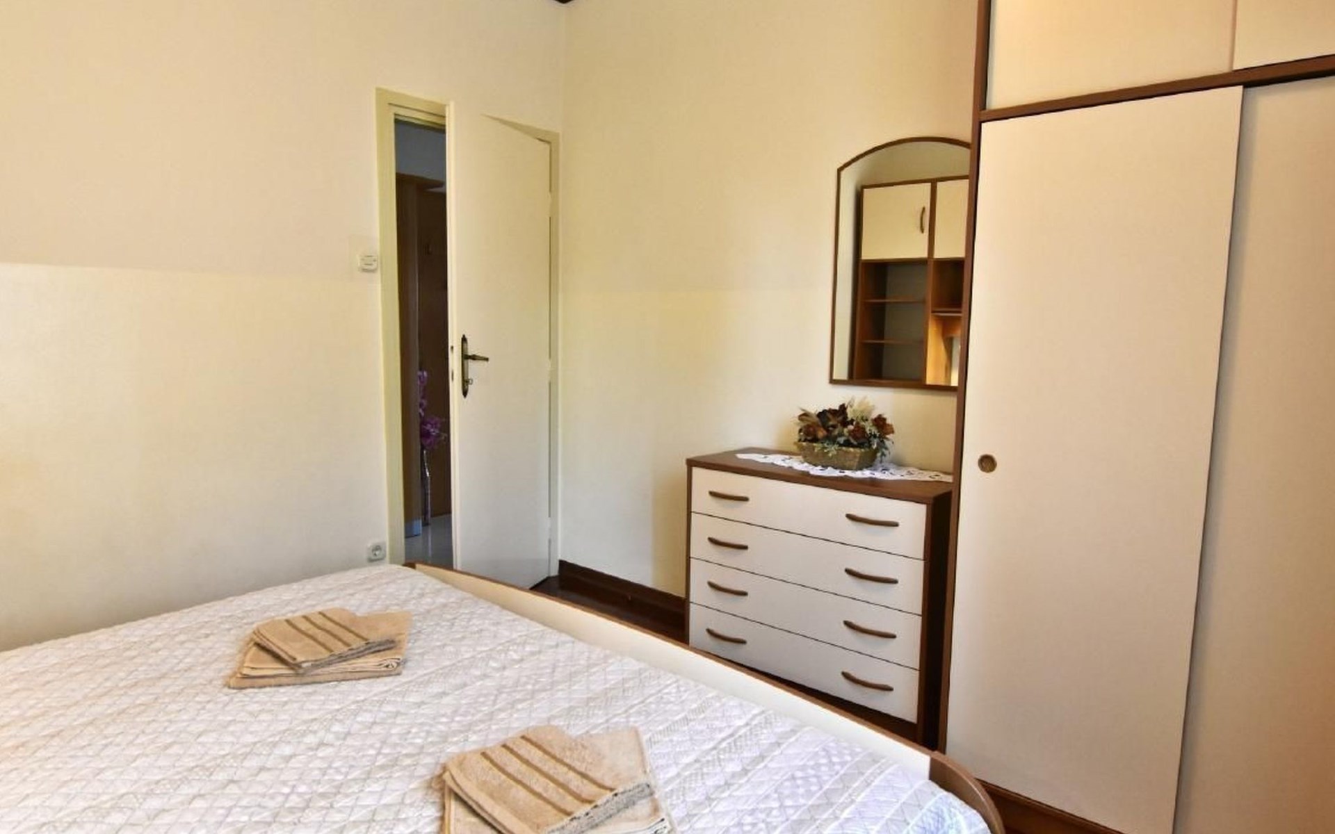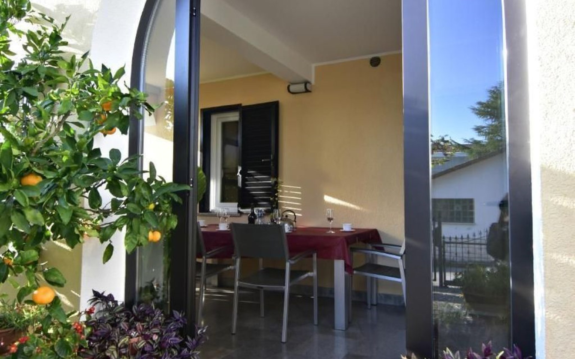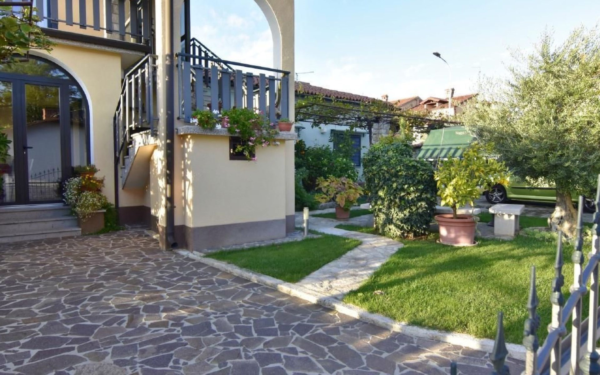 Maximaal 1 huisdier/hond toegestaan. Comfortable ground floor apartment 45 sqm of a family house located in a central location in the popular Punta Umago area, right between the city center and the beautiful beaches. All easily accessible on foot. The apartment is furnished with lots of love. The highlight is of course the large terrace with the beautiful garden. deal for families with children or two couples of friends.Pets are allowed (maximum one small size on request) to be paid in cash upon arrival.The apartment is very close to the supermarket, 150 m from the Umag promenade and the sea, while it is 900 m away from the beach, 450 m from the gas station, bank and ATM at 250 m, 10 m from the restaurant and 900 m. from the center of Umag. It is located in a privileged position, in a few minutes, the beach and the city center can be reached on foot. In the vicinity of the apartment, there is the Istra restaurant with a wide choice of special menus of fish, meat, and dessert. At only 150 m there is the station of the tourist train that leaves from the tourist village of Katoro and along the coast arrives in Umag center and vice versa. * The registration only on the first day, to be paid in cash upon arrival.* Pets are welcome with prior notice, Supplement per pet per day, to be paid on arrival. * Smoking is allowed on the terrace or outside, while smoking is not allowed inside. * We kindly ask our guests: - to respect the neighbors and to behave calmly and discretely, especially at night or during the afternoon rest,- for safety reasons, to turn off the air conditioning, washing machine, and dishwasher when they are not in the accommodation,- to use the equipment of the accommodation with caution- to leave the containers empty and to wash the used cutlery and kitchen utensils,- to declare to the owner any damage caused, that after an accurate assessment of the damage, the owner will request payment of the costs in cash before departure,- to indicate the expected departure time one day before departure to arrange the delivery of the keys. * The accommodation must be left free by 10.00 on the last day of stay. * Custom transfers are possible(example: airport - accommodation, ...)Short descriptionOther: Non-smoking houseShort description 1Number of kitchens: 1SurroundingNearby sports facilities: Basketball, Bike tours, Diving, Fishing, Football area, Golf course, Hunting facilities, Mountainbiking, Paragliding, Riding possibilities, Sailing, Sport center, Surfing, Tennis, Water skiingRental Facilities: Bicycle rental service, Boat rental service, car rentalGarden and outdoorGarden facilities: GrillService benefitsService facilities (may incur additional costs) : Transfer service (airport etc) A garden with a table and benches and a barbecue is available for shared use. The possibility to park your car safely inside the fenced structure will make you feel safer and more peaceful. In our apartment, you can spend days of rest and relaxation relaxing in the garden or on the veranda.The accommodation consists of two bedrooms with double beds 160 x 200, wardrobes, night lamps, bed linen provided (changed weekly), an equipped kitchenette with dishwasher, microwave oven, kettle, coffee machine, oven, stove, extractor hood, the dining room with table and 4 chairs, fridge with freezer area, flat-screen satellite TV, free Wi-Fi internet connection, bathroom with shower, sink with cabinet and mirror, toilet, bidet, washing machine, hairdryer, bath towels provided (two per person - changed weekly), the corridor with hangers and air conditioner, the beautiful veranda furnished with table and chairs.In the center of Umag we recommend visiting the museum, the aquarium, the cathedral, we recommend a walk along the famous Umag dam named “Diga”, to explore the narrow and interesting alleys of the old town of Umag, the new square embellished with a fountain, go shopping in the shops in the center or visit the stalls and the playground on the promenade for the delight of children. To buy more groceries, we recommend driving a few kilometers to the largest and most convenient supermarkets such as Lidl, Spar, Kaufland, or Plodine in Umag.There are severalopportunities for recreation in the Umag area: tennis courts, the 18-hole Adriatic Golf Club, equestrian centers, sports centers for water sportsenthusiasts where it is possible to practice water skiing, diving, boat rental, the adrenaline park Jangalooz for children with minigolf course near the SolStella Maris tourist village, night clubs, casino’, the possibility of various boat or bus trips.The area is full of renowned restaurants, simple restaurants, pizzerias, fast food restaurants, bars. Those who want to explore Istria will discover caves, ruins, numerous churches, museums, and impressive marinas.For non-beach days or evenings, we recommend making unforgettable trips inland. The picturesque artists' village Grožnjan has a beautiful terrace from which you can enjoy a magnificent view over the Mirna river valley. Motovun, the typical medieval town located on a hill, is known for the film festival, which has been taking place in late July for years. Livade, the town known for its white truffle found in the nearby woods. For lovers of astronomy and wishing to admire the sky and the stars, visit the Višnjan Astronomical Center, 30 km from Umag, by appointment. For cave enthusiasts, visit the small marvelous Baredine cave just 15 km from Umag. Don't miss the chance to visit Hum, the smallest city in the world just 60 km from Umag. Also interesting are the cities on the coast such as Pula, Rovinj, and Poreč, as well as the Brijuni National Park which can also be visited with organized excursions. Various "Fish Picnic" boat trips are organized, with picnics based on fish or meat during which you will have the opportunity to visit Rovinj and Poreč or Novigrad. Many tourists are interested in the wonderful day trip to Venice by hydrofoil. To the delight o