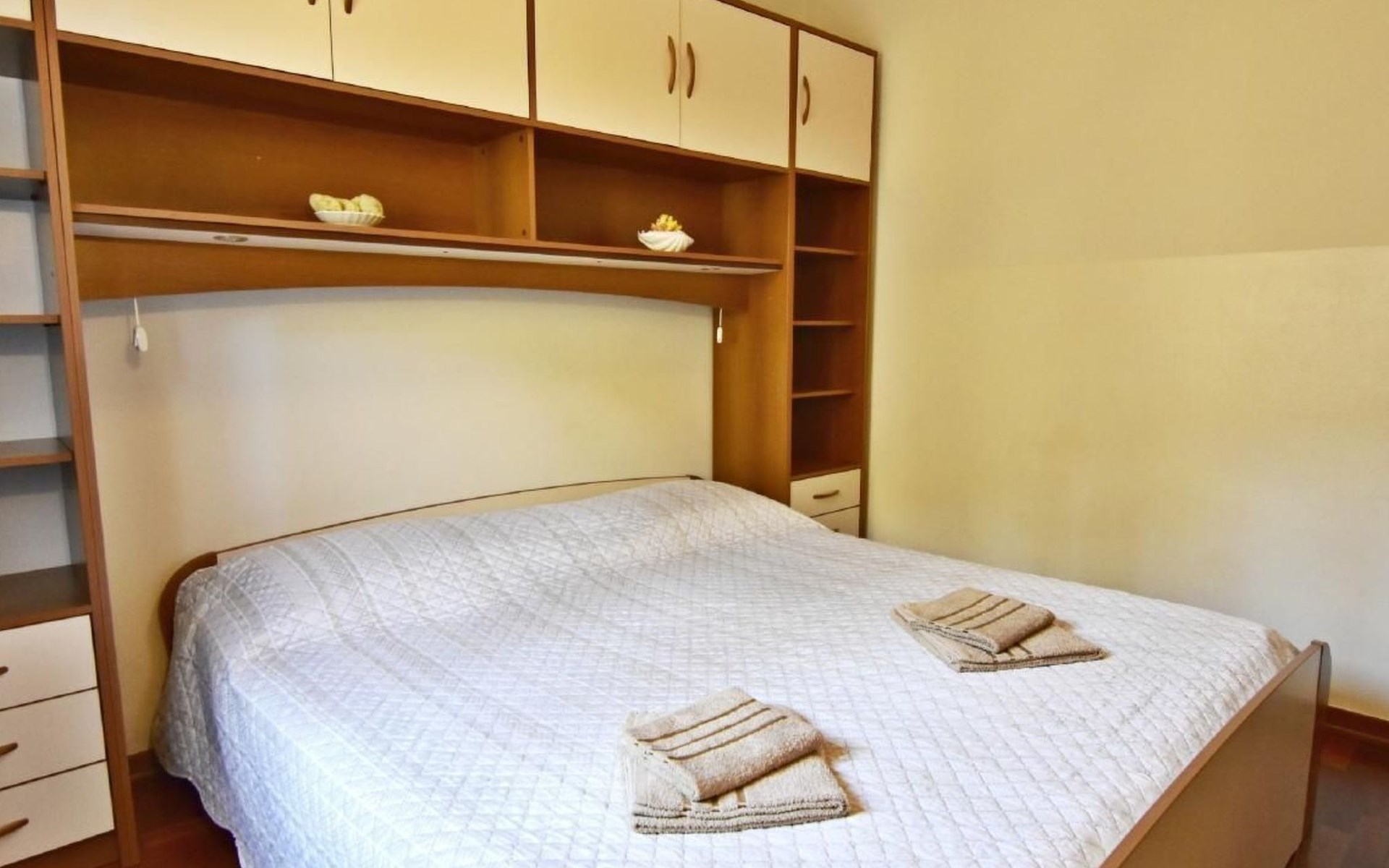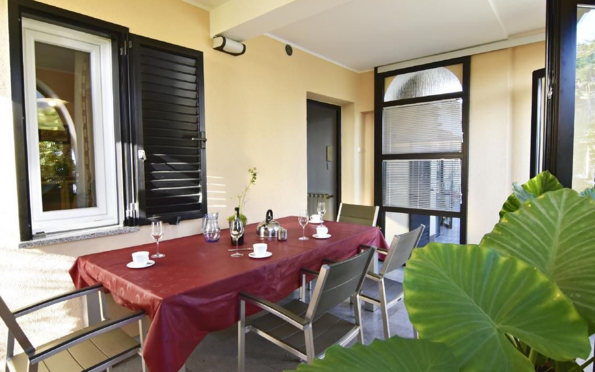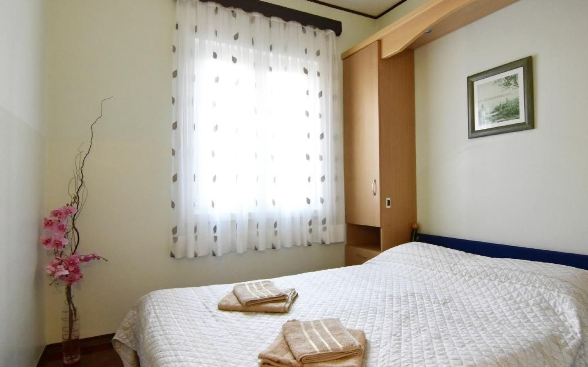 Maximaal 1 huisdier/hond toegestaan. Comfortable ground floor apartment 45 sqm of a family house located in a central location in the popular Punta Umago area, right between the city center and the beautiful beaches. All easily accessible on foot. The apartment is furnished with lots of love. The highlight is of course the large terrace with the beautiful garden. deal for families with children or two couples of friends.Pets are allowed (maximum one small size on request) to be paid in cash upon arrival.The apartment is very close to the supermarket, 150 m from the Umag promenade and the sea, while it is 900 m away from the beach, 450 m from the gas station, bank and ATM at 250 m, 10 m from the restaurant and 900 m. from the center of Umag. It is located in a privileged position, in a few minutes, the beach and the city center can be reached on foot. In the vicinity of the apartment, there is the Istra restaurant with a wide choice of special menus of fish, meat, and dessert. At only 150 m there is the station of the tourist train that leaves from the tourist village of Katoro and along the coast arrives in Umag center and vice versa. * The registration only on the first day, to be paid in cash upon arrival.* Pets are welcome with prior notice, Supplement per pet per day, to be paid on arrival. * Smoking is allowed on the terrace or outside, while smoking is not allowed inside. * We kindly ask our guests: - to respect the neighbors and to behave calmly and discretely, especially at night or during the afternoon rest,- for safety reasons, to turn off the air conditioning, washing machine, and dishwasher when they are not in the accommodation,- to use the equipment of the accommodation with caution- to leave the containers empty and to wash the used cutlery and kitchen utensils,- to declare to the owner any damage caused, that after an accurate assessment of the damage, the owner will request payment of the costs in cash before departure,- to indicate the expected departure time one day before departure to arrange the delivery of the keys. * The accommodation must be left free by 10.00 on the last day of stay. * Custom transfers are possible(example: airport - accommodation, ...)Short descriptionOther: Non-smoking houseShort description 1Number of kitchens: 1SurroundingNearby sports facilities: Basketball, Bike tours, Diving, Fishing, Football area, Golf course, Hunting facilities, Mountainbiking, Paragliding, Riding possibilities, Sailing, Sport center, Surfing, Tennis, Water skiingRental Facilities: Bicycle rental service, Boat rental service, car rentalGarden and outdoorGarden facilities: GrillService benefitsService facilities (may incur additional costs) : Transfer service (airport etc) A garden with a table and benches and a barbecue is available for shared use. The possibility to park your car safely inside the fenced structure will make you feel safer and more peaceful. In our apartment, you can spend days of rest and relaxation relaxing in the garden or on the veranda.The accommodation consists of two bedrooms with double beds 160 x 200, wardrobes, night lamps, bed linen provided (changed weekly), an equipped kitchenette with dishwasher, microwave oven, kettle, coffee machine, oven, stove, extractor hood, the dining room with table and 4 chairs, fridge with freezer area, flat-screen satellite TV, free Wi-Fi internet connection, bathroom with shower, sink with cabinet and mirror, toilet, bidet, washing machine, hairdryer, bath towels provided (two per person - changed weekly), the corridor with hangers and air conditioner, the beautiful veranda furnished with table and chairs.In the center of Umag we recommend visiting the museum, the aquarium, the cathedral, we recommend a walk along the famous Umag dam named “Diga”, to explore the narrow and interesting alleys of the old town of Umag, the new square embellished with a fountain, go shopping in the shops in the center or visit the stalls and the playground on the promenade for the delight of children. To buy more groceries, we recommend driving a few kilometers to the largest and most convenient supermarkets such as Lidl, Spar, Kaufland, or Plodine in Umag.There are severalopportunities for recreation in the Umag area: tennis courts, the 18-hole Adriatic Golf Club, equestrian centers, sports centers for water sportsenthusiasts where it is possible to practice water skiing, diving, boat rental, the adrenaline park Jangalooz for children with minigolf course near the SolStella Maris tourist village, night clubs, casino’, the possibility of various boat or bus trips.The area is full of renowned restaurants, simple restaurants, pizzerias, fast food restaurants, bars. Those who want to explore Istria will discover caves, ruins, numerous churches, museums, and impressive marinas.For non-beach days or evenings, we recommend making unforgettable trips inland. The picturesque artists' village Grožnjan has a beautiful terrace from which you can enjoy a magnificent view over the Mirna river valley. Motovun, the typical medieval town located on a hill, is known for the film festival, which has been taking place in late July for years. Livade, the town known for its white truffle found in the nearby woods. For lovers of astronomy and wishing to admire the sky and the stars, visit the Višnjan Astronomical Center, 30 km from Umag, by appointment. For cave enthusiasts, visit the small marvelous Baredine cave just 15 km from Umag. Don't miss the chance to visit Hum, the smallest city in the world just 60 km from Umag. Also interesting are the cities on the coast such as Pula, Rovinj, and Poreč, as well as the Brijuni National Park which can also be visited with organized excursions. Various "Fish Picnic" boat trips are organized, with picnics based on fish or meat during which you will have the opportunity to visit Rovinj and Poreč or Novigrad. Many tourists are interested in the wonderful day trip to Venice by hydrofoil. To the delight o