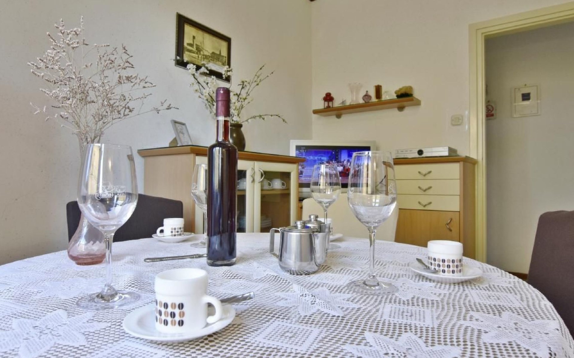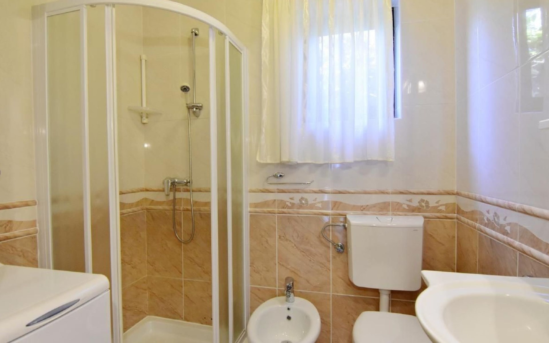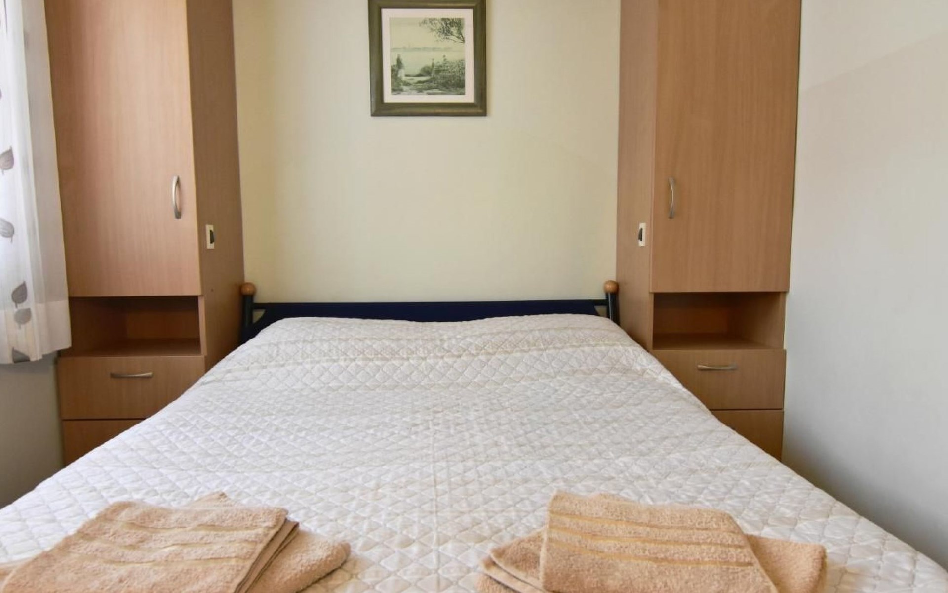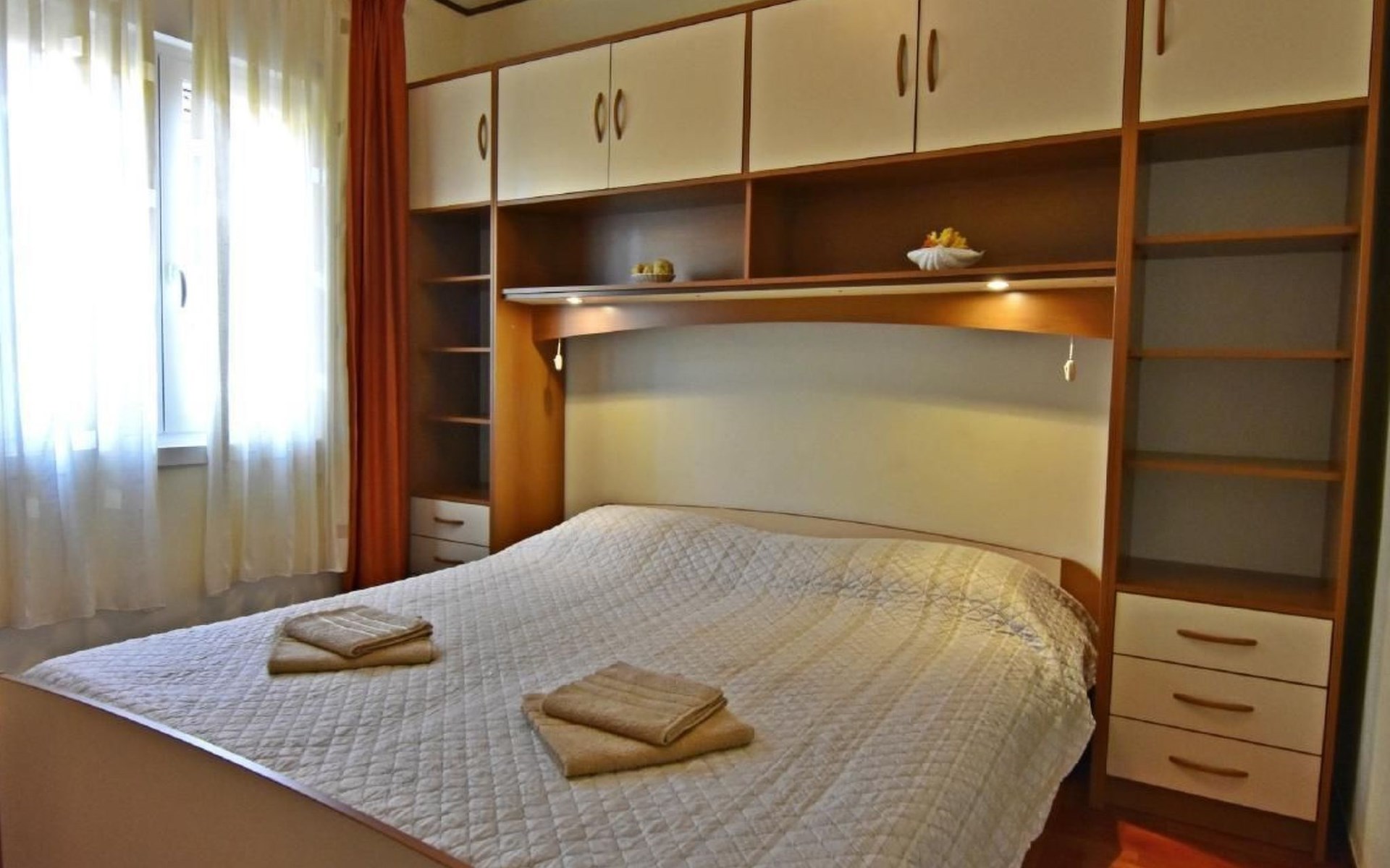 Maximaal 1 huisdier/hond toegestaan. Comfortable ground floor apartment 45 sqm of a family house located in a central location in the popular Punta Umago area, right between the city center and the beautiful beaches. All easily accessible on foot. The apartment is furnished with lots of love. The highlight is of course the large terrace with the beautiful garden. deal for families with children or two couples of friends.Pets are allowed (maximum one small size on request) to be paid in cash upon arrival.The apartment is very close to the supermarket, 150 m from the Umag promenade and the sea, while it is 900 m away from the beach, 450 m from the gas station, bank and ATM at 250 m, 10 m from the restaurant and 900 m. from the center of Umag. It is located in a privileged position, in a few minutes, the beach and the city center can be reached on foot. In the vicinity of the apartment, there is the Istra restaurant with a wide choice of special menus of fish, meat, and dessert. At only 150 m there is the station of the tourist train that leaves from the tourist village of Katoro and along the coast arrives in Umag center and vice versa. * The registration only on the first day, to be paid in cash upon arrival.* Pets are welcome with prior notice, Supplement per pet per day, to be paid on arrival. * Smoking is allowed on the terrace or outside, while smoking is not allowed inside. * We kindly ask our guests: - to respect the neighbors and to behave calmly and discretely, especially at night or during the afternoon rest,- for safety reasons, to turn off the air conditioning, washing machine, and dishwasher when they are not in the accommodation,- to use the equipment of the accommodation with caution- to leave the containers empty and to wash the used cutlery and kitchen utensils,- to declare to the owner any damage caused, that after an accurate assessment of the damage, the owner will request payment of the costs in cash before departure,- to indicate the expected departure time one day before departure to arrange the delivery of the keys. * The accommodation must be left free by 10.00 on the last day of stay. * Custom transfers are possible(example: airport - accommodation, ...)Short descriptionOther: Non-smoking houseShort description 1Number of kitchens: 1SurroundingNearby sports facilities: Basketball, Bike tours, Diving, Fishing, Football area, Golf course, Hunting facilities, Mountainbiking, Paragliding, Riding possibilities, Sailing, Sport center, Surfing, Tennis, Water skiingRental Facilities: Bicycle rental service, Boat rental service, car rentalGarden and outdoorGarden facilities: GrillService benefitsService facilities (may incur additional costs) : Transfer service (airport etc) A garden with a table and benches and a barbecue is available for shared use. The possibility to park your car safely inside the fenced structure will make you feel safer and more peaceful. In our apartment, you can spend days of rest and relaxation relaxing in the garden or on the veranda.The accommodation consists of two bedrooms with double beds 160 x 200, wardrobes, night lamps, bed linen provided (changed weekly), an equipped kitchenette with dishwasher, microwave oven, kettle, coffee machine, oven, stove, extractor hood, the dining room with table and 4 chairs, fridge with freezer area, flat-screen satellite TV, free Wi-Fi internet connection, bathroom with shower, sink with cabinet and mirror, toilet, bidet, washing machine, hairdryer, bath towels provided (two per person - changed weekly), the corridor with hangers and air conditioner, the beautiful veranda furnished with table and chairs.In the center of Umag we recommend visiting the museum, the aquarium, the cathedral, we recommend a walk along the famous Umag dam named “Diga”, to explore the narrow and interesting alleys of the old town of Umag, the new square embellished with a fountain, go shopping in the shops in the center or visit the stalls and the playground on the promenade for the delight of children. To buy more groceries, we recommend driving a few kilometers to the largest and most convenient supermarkets such as Lidl, Spar, Kaufland, or Plodine in Umag.There are severalopportunities for recreation in the Umag area: tennis courts, the 18-hole Adriatic Golf Club, equestrian centers, sports centers for water sportsenthusiasts where it is possible to practice water skiing, diving, boat rental, the adrenaline park Jangalooz for children with minigolf course near the SolStella Maris tourist village, night clubs, casino’, the possibility of various boat or bus trips.The area is full of renowned restaurants, simple restaurants, pizzerias, fast food restaurants, bars. Those who want to explore Istria will discover caves, ruins, numerous churches, museums, and impressive marinas.For non-beach days or evenings, we recommend making unforgettable trips inland. The picturesque artists' village Grožnjan has a beautiful terrace from which you can enjoy a magnificent view over the Mirna river valley. Motovun, the typical medieval town located on a hill, is known for the film festival, which has been taking place in late July for years. Livade, the town known for its white truffle found in the nearby woods. For lovers of astronomy and wishing to admire the sky and the stars, visit the Višnjan Astronomical Center, 30 km from Umag, by appointment. For cave enthusiasts, visit the small marvelous Baredine cave just 15 km from Umag. Don't miss the chance to visit Hum, the smallest city in the world just 60 km from Umag. Also interesting are the cities on the coast such as Pula, Rovinj, and Poreč, as well as the Brijuni National Park which can also be visited with organized excursions. Various "Fish Picnic" boat trips are organized, with picnics based on fish or meat during which you will have the opportunity to visit Rovinj and Poreč or Novigrad. Many tourists are interested in the wonderful day trip to Venice by hydrofoil. To the delight o
