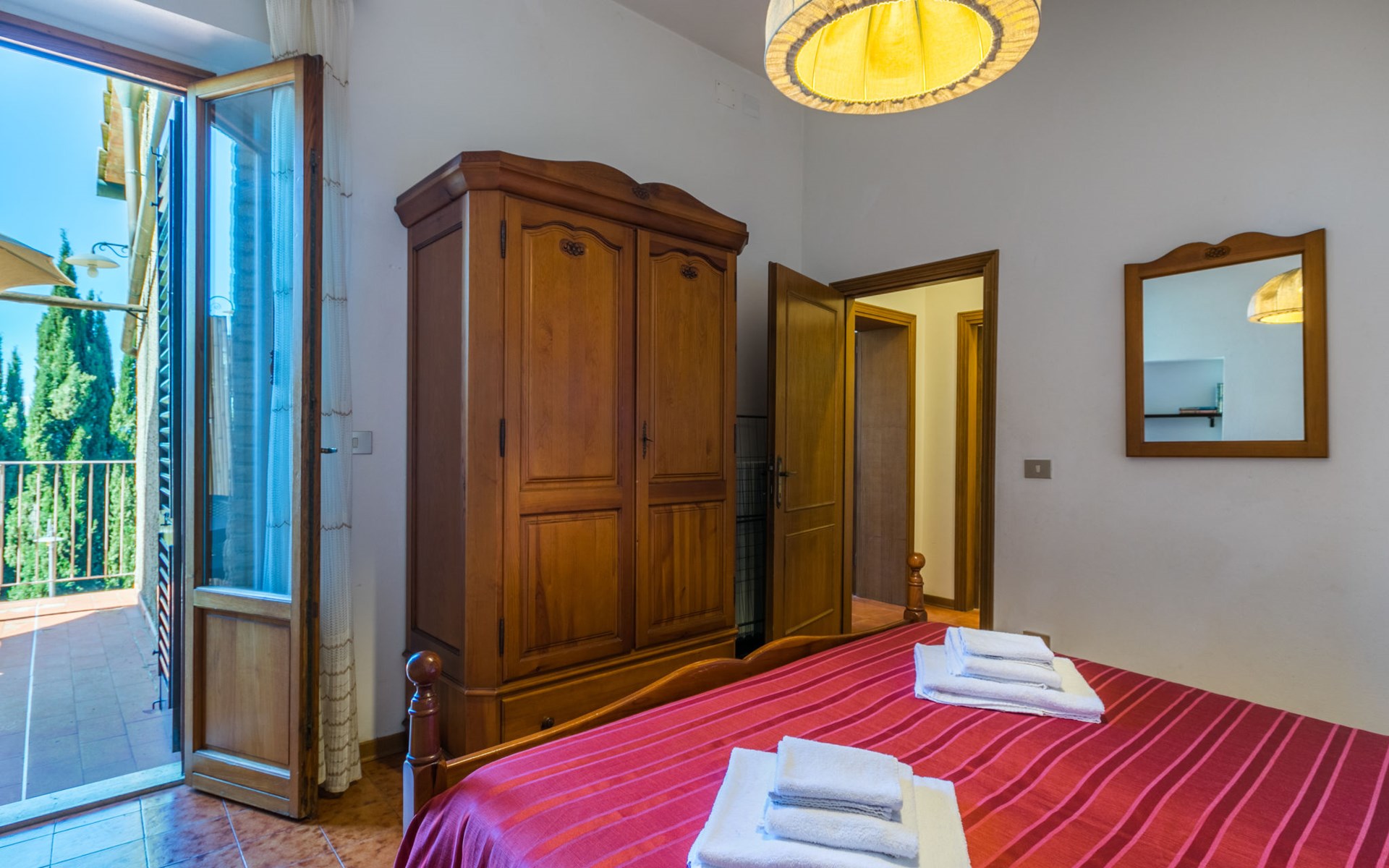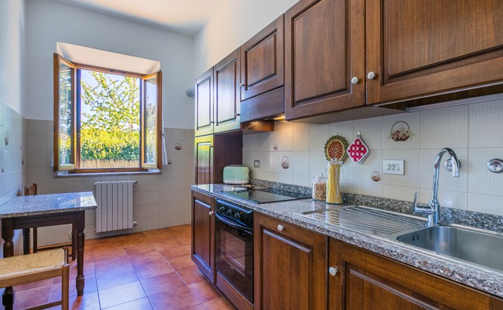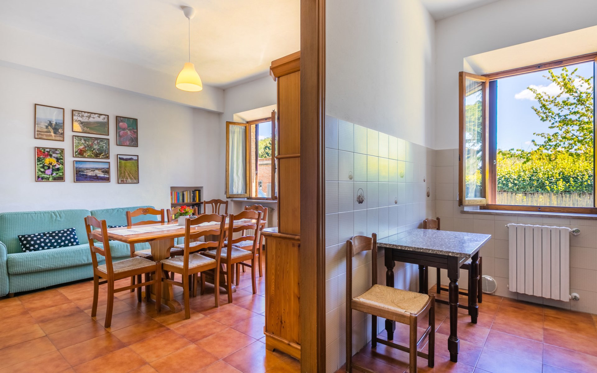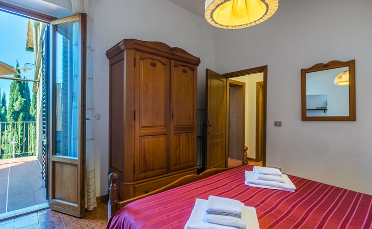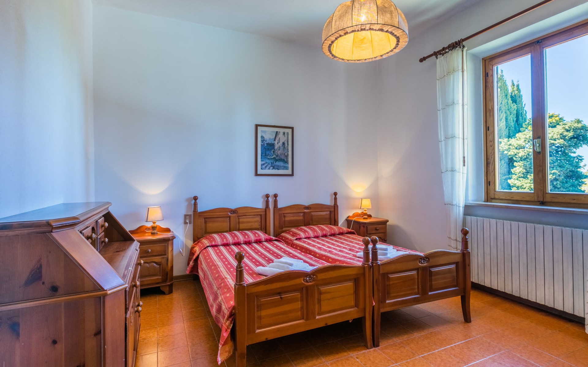 Landhuis "San Vivaldo", 400 m boven zeeniveau, omgeven door bomen en velden. 16 appartementen in de woning. In het gehucht San Vivaldo, 7 km van het centrum van Montaione, 50 km van het centrum van Pisa, 60 km van het centrum van Firenze, zonnige, verhoogde ligging in een woonwijk, 65 km van zee, te midden van groen. Voor medegebruik: terrein 920.000 m2, bomen, openluchtzwembad omheind (20 x 10 m, 150 - 250 cm diepte, seizoensgebonden beschikbaarheid: 01.Mei. - 07.Okt. openingstijden zwembad: 09:00-20:00) met zout-elektrolyse. Douche/WC bij het zwembad, tennisbaan, tafeltennis, terras, tuinmeubelen, barbecue, kinderspeelplaats, onderhoud zwembad door de eigenaar/tuinman. In het complex: receptie, Internet (WiFi), wasmachine (voor medegebruik). Overdekte parkeerplaats op het terrein. Levensmiddelenwinkel, restaurant, bar, bakkerij 10 m, bushalte 7 km, zandstrand "Cecina Mare" 66 km. Golfterrein (18 holes) 4 km. Attracties in de buurt: San Gimignano 17 km, Certaldo 19 km, Volterra 30 km. Auto noodzakelijk. Baby uitrusting (incl.). Lokale verkoop van streekproducten. De woningen kunnen onderling van inrichting verschillen. Oplaadstation ca. 100 m.