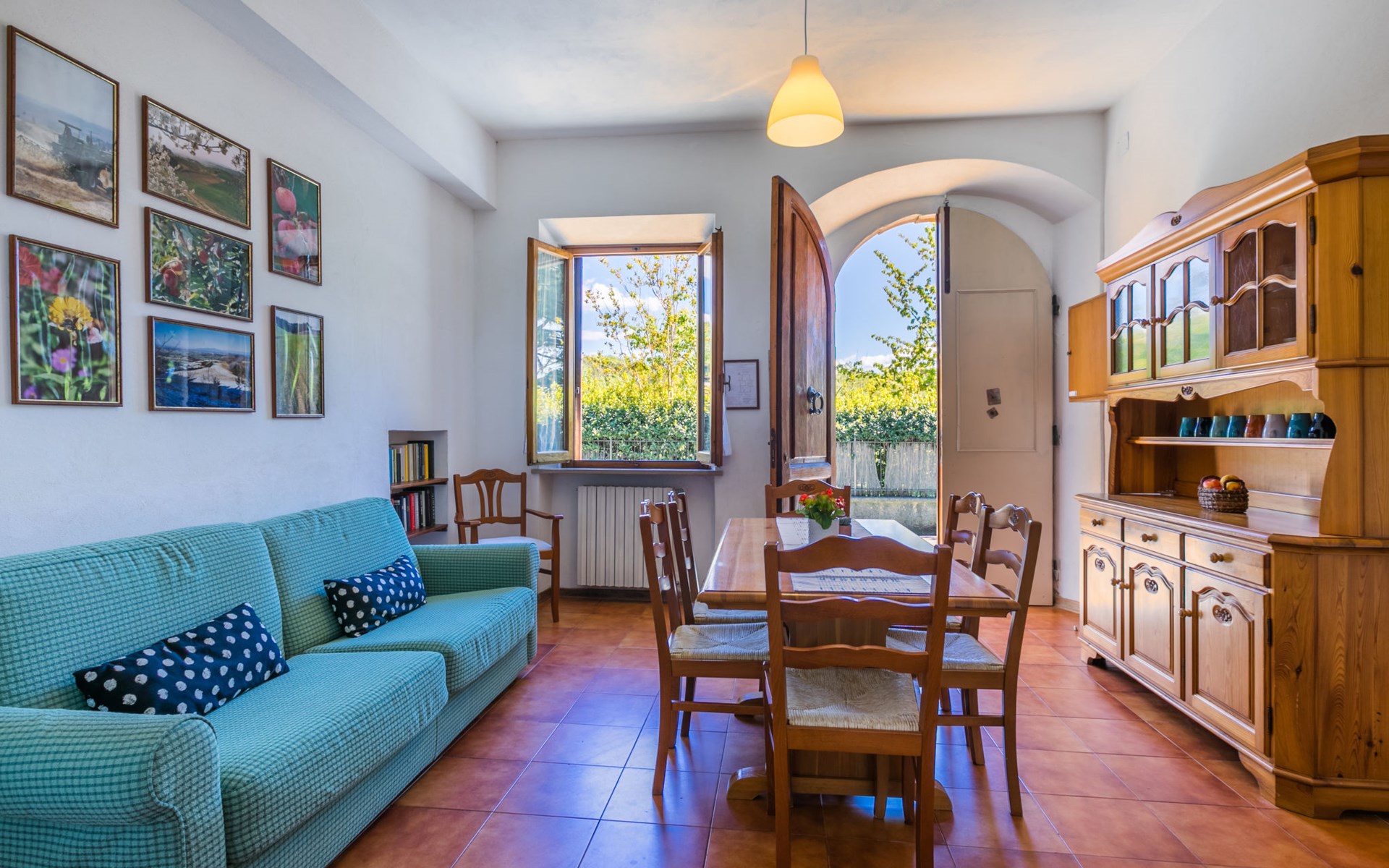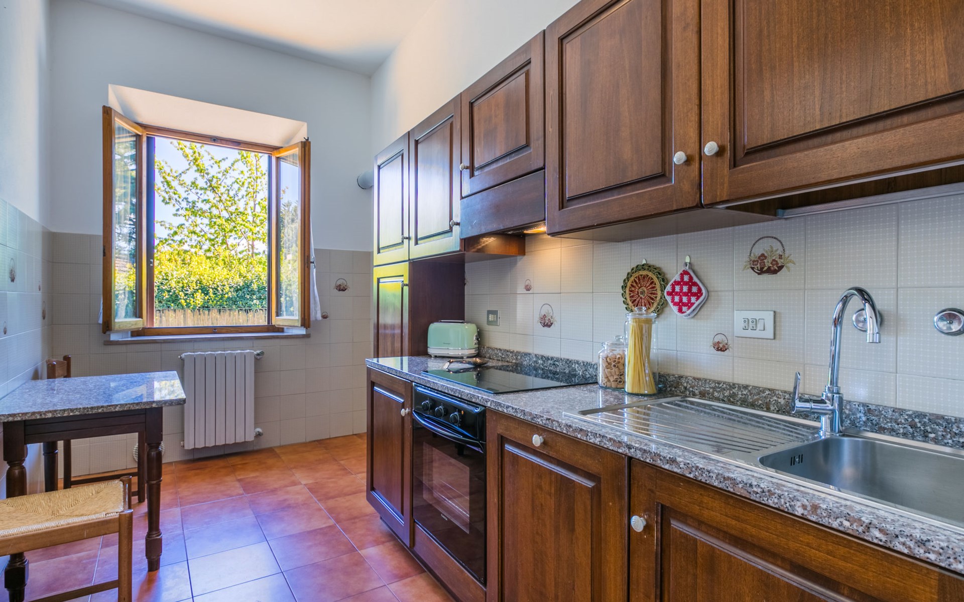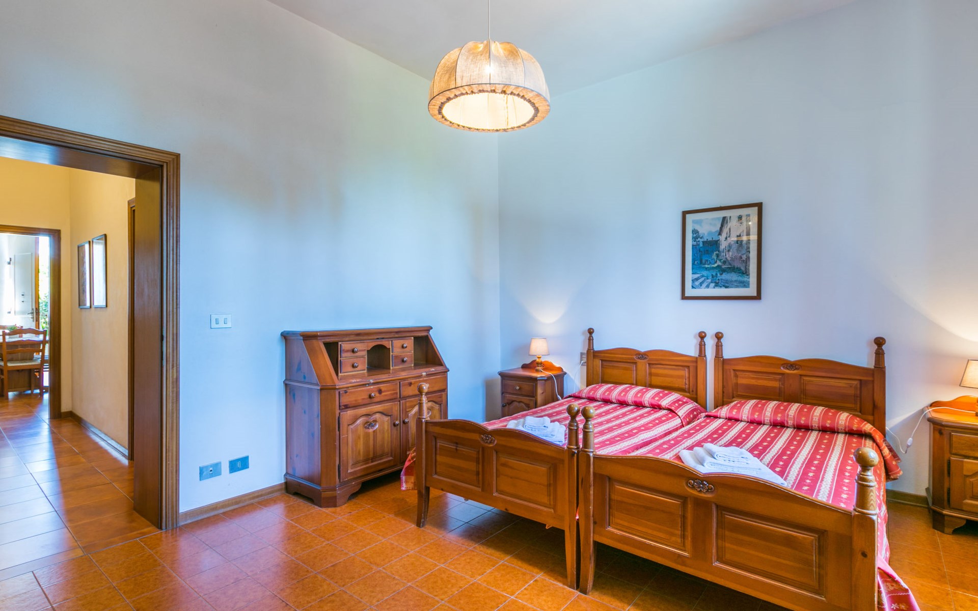 Landhuis "San Vivaldo", 400 m boven zeeniveau, omgeven door bomen en velden. 16 appartementen in de woning. In het gehucht San Vivaldo, 7 km van het centrum van Montaione, 50 km van het centrum van Pisa, 60 km van het centrum van Firenze, zonnige, verhoogde ligging in een woonwijk, 65 km van zee, te midden van groen. Voor medegebruik: terrein 920.000 m2, bomen, openluchtzwembad omheind (20 x 10 m, 150 - 250 cm diepte, seizoensgebonden beschikbaarheid: 01.Mei. - 07.Okt. openingstijden zwembad: 09:00-20:00) met zout-elektrolyse. Douche/WC bij het zwembad, tennisbaan, tafeltennis, terras, tuinmeubelen, barbecue, kinderspeelplaats, onderhoud zwembad door de eigenaar/tuinman. In het complex: receptie, Internet (WiFi), wasmachine (voor medegebruik). Overdekte parkeerplaats op het terrein. Levensmiddelenwinkel, restaurant, bar, bakkerij 10 m, bushalte 7 km, zandstrand "Cecina Mare" 66 km. Golfterrein (18 holes) 4 km. Attracties in de buurt: San Gimignano 17 km, Certaldo 19 km, Volterra 30 km. Auto noodzakelijk. Baby uitrusting (incl.). Lokale verkoop van streekproducten. De woningen kunnen onderling van inrichting verschillen. Oplaadstation ca. 100 m.
