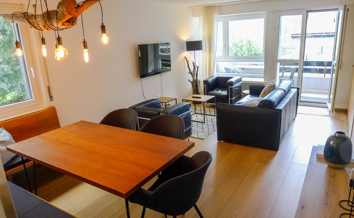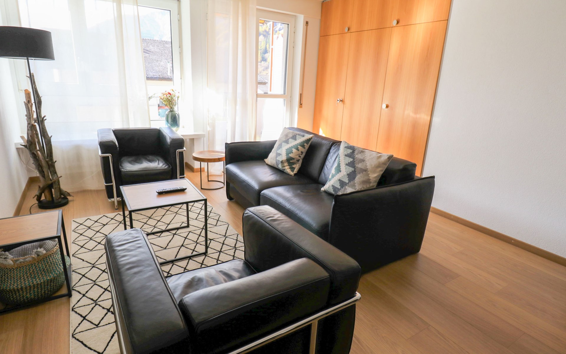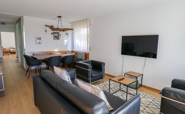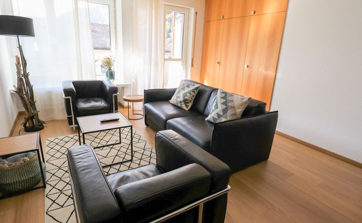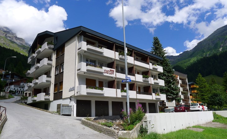 Gezellig, comfortabel flatgebouw "Siesta", 1.400 m boven zeeniveau, van 4 verdiepingen. In de plaats, 1 km van het centrum, rustige, zonnige, verhoogde ligging, 500 m van het skigebied. Voor medegebruik: tuin. In het huis: lift, berging voor ski's, centrale verwarming, wasmachine, droger (voor medegebruik). Toegangsweg tot aan het huis (bergweg). Parkeerplaats bij het huis. Levensmiddelenwinkel 500 m, supermarkt 1 km, restaurant 250 m, bakkerij 100 m, bushalte 100 m, thermaalbad 800 m. Tennis, kabelbaan, skilift, ski faciliteiten, skipisten, skibushalte 100 m, skischool, rodelbaan 500 m, langlaufloipe 1 km, ijsbaan, kinderspeelplaats 500 m. Bekende skigebieden kunnen gemakkelijk worden bereikt: Leukerbad Torrent 1.5 km. Wandelgebied Gemmi 500 m.