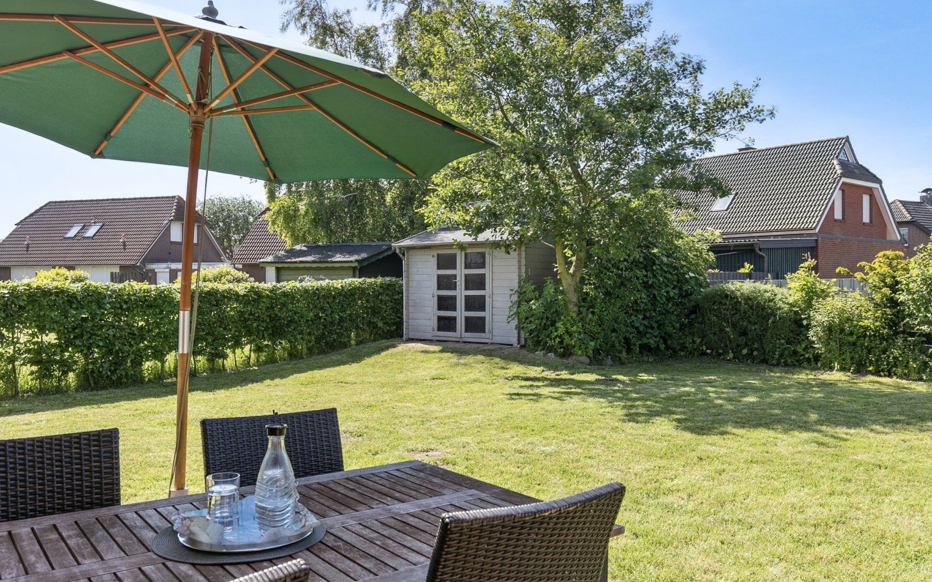 Maximaal 2 huisdieren/honden toegestaan. Discover the idyllic holiday cottage on the dyke in the quiet North Sea resort of Friedrichskoog, perfectly located for an unforgettable holiday just 300 metres from the North Sea dyke with its various beach sections, including a guarded bathing beach, a nudist area and a special dog beach. Situated in a traffic-calmed cul-de-sac of a holiday home area, this accommodation offers the ideal starting point for your explorations and relaxation right by the sea. With its facilities that leave nothing to be desired and its direct proximity to the sea, it is also an attractive destination in the colder seasons for long walks, walking tours on the dyke and relaxing moments in the clear sea air.Inside, 75 m² of living space await you, furnished with attention to detail. Equipped for up to 5 people, you will find a cosy living room with an integrated, modern fitted kitchen that is fully equipped with a dishwasher, microwave, induction hob and other amenities. Three bedrooms, including one with a comfortable box-spring bed on the ground floor and two more on the upper floor, ensure a restful night's sleep. An ultra-modern shower room with underfloor heating and exclusive extras such as a small sauna for two and a wood-burning stove round off the feel-good offer.The outdoor area of the holiday home impresses with a 500 m² garden with a sunbathing lawn and terrace on the south-west side, perfect for sunny hours outdoors. There is a garden table with chairs, a cosy beach chair and a barbecue - ideal for enjoying the long summer evenings. A car parking space is also part of the offer, so that you can arrive comfortably and start your excursions in the surrounding area without any problems.The location of the holiday home allows you to experience the special atmosphere of Friedrichskoog with its numerous leisure activities. Distances of only approx. 0.60 km to cafés and restaurants and 0.30 km to the sea make your stay particularly convenient. For active holidaymakers, the surrounding area offers a variety of sports such as cycling, horse riding, sailing, surfing and tennis. Golf and mini golf can also be enjoyed nearby. You can also explore the scenic North Sea coast on your own with the bike and go-kart hire in the area.Choose the Ferienkate am Deich for your next holiday and enjoy the perfect combination of comfort, peace and quiet and proximity to nature. Experience relaxing days in Friedrichskoog, where the beauty of the North Sea, the cosy furnishings of the holiday home and the wide range of leisure activities in the surrounding area contribute to an unforgettable holiday. Look forward to a relaxing holiday with many wonderful moments, whatever the season.