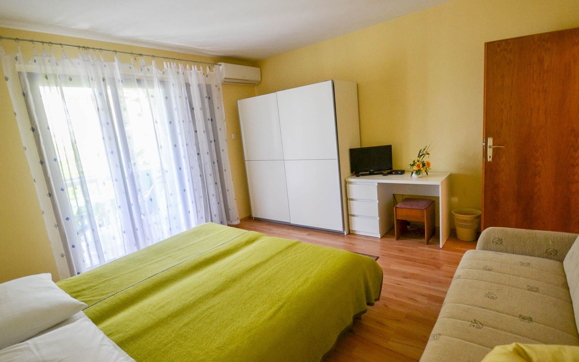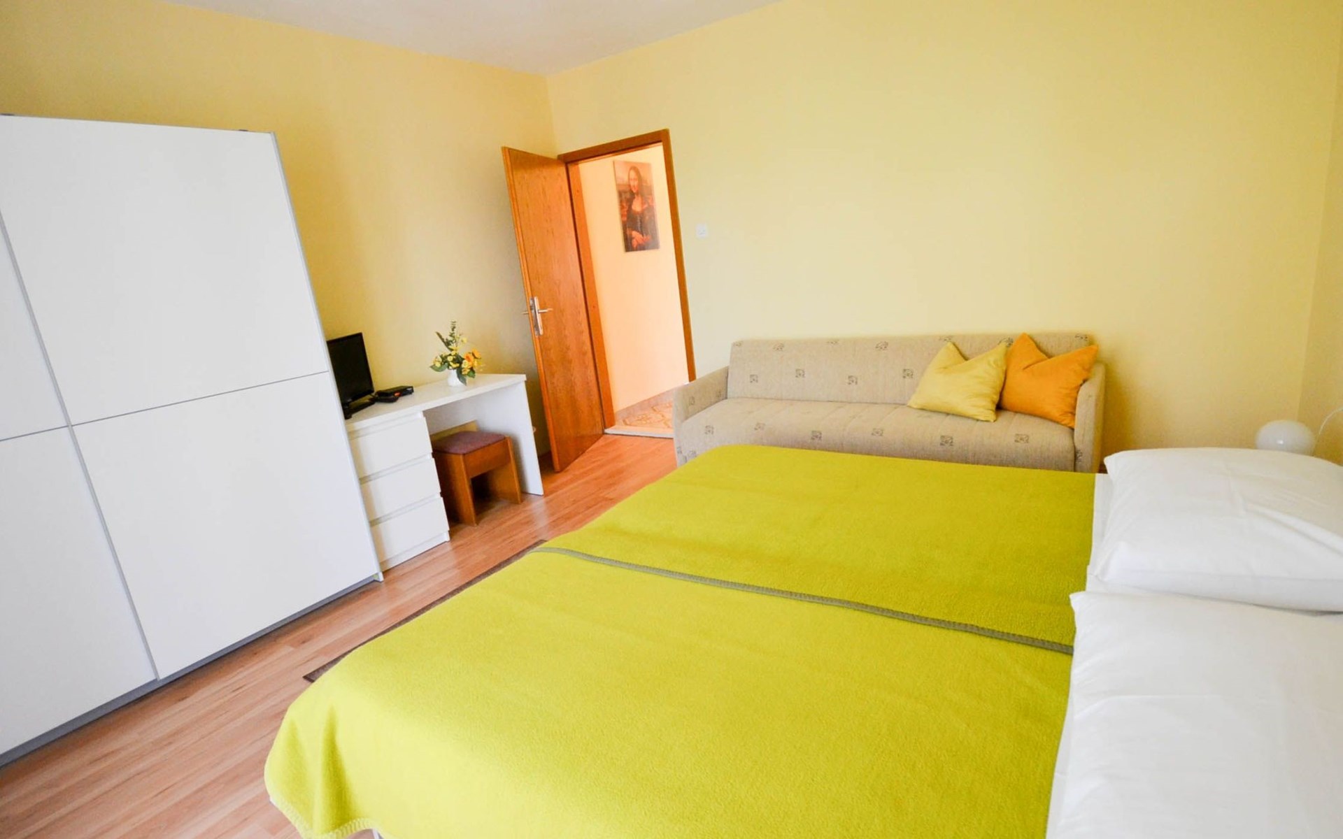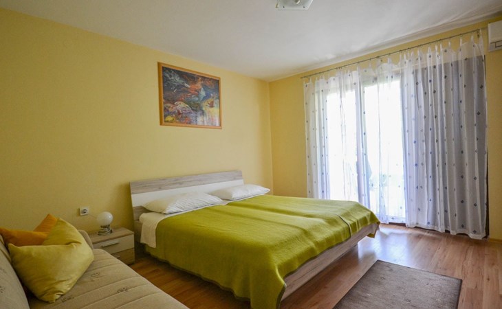 Discover the perfect getaway for a group of five in Novigrad, Istrien, with our inviting ground-floor apartment. Ideally positioned just a few minutes' walk from the sea, this cozy accommodation offers a seamless blend of comfort and convenience. Whether you're looking to explore the vibrant town centre or simply relax by the water's edge, our apartment serves as your ideal base.The interior of the apartment is thoughtfully arranged to meet your every need during your stay. It features two comfortably furnished bedrooms, each equipped with a double bed, ensuring a restful night's sleep for all. Additionally, the living space includes a sofa bed that can accommodate an additional guest. The apartment is partially air-conditioned, making it a cool retreat during those warm, sunny days. For those who enjoy cooking, the separate kitchen is equipped with a gas cooker and coffee machine, allowing you to prepare your favourite meals just the way you like them.Outside, the apartment boasts a private terrace furnished with outdoor seating, where guests can unwind and enjoy the serene atmosphere of Novigrad. It also offers the convenience of a designated parking space on the property, ensuring ease of access for those arriving by car.The apartment's prime location places guests just a short stroll from the beach, only 250m away, where days can be spent basking in the sun or diving into the cooling depths of the sea. For canine companions, a dog-friendly beach is merely 300m from your doorstep. The nearest grocery store is conveniently located 200m away, making it easy to stock up on essentials. Further afield, the town centre is accessible within a 10-minute walk, offering a variety of dining, shopping, and entertainment options.Conclude your search for the perfect holiday accommodation with our charming apartment in Novigrad, Istrien. Whether you're looking to enjoy peaceful beach days, explore local attractions, or simply relax in a comfortable setting, our apartment promises an unforgettable experience for groups and families alike.
