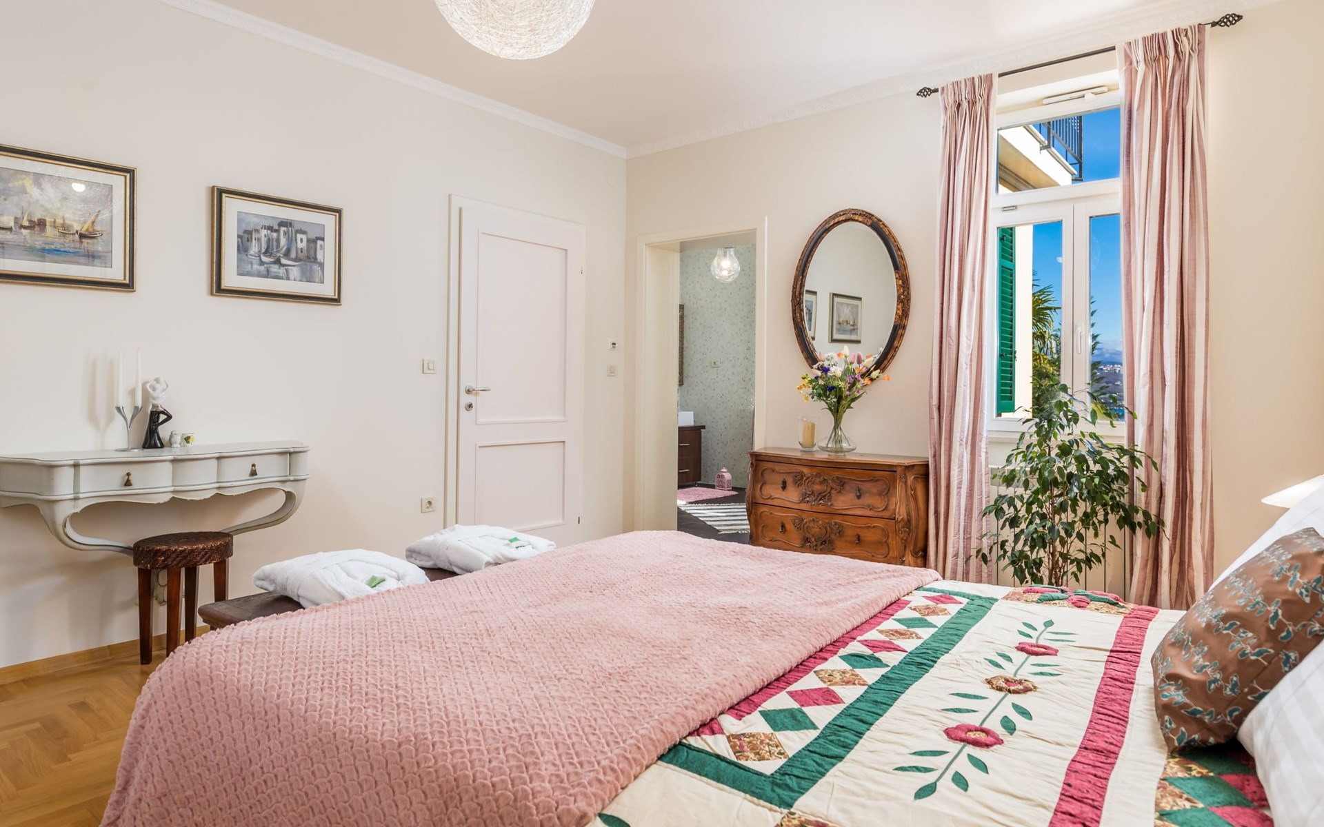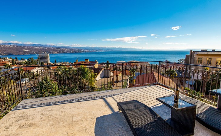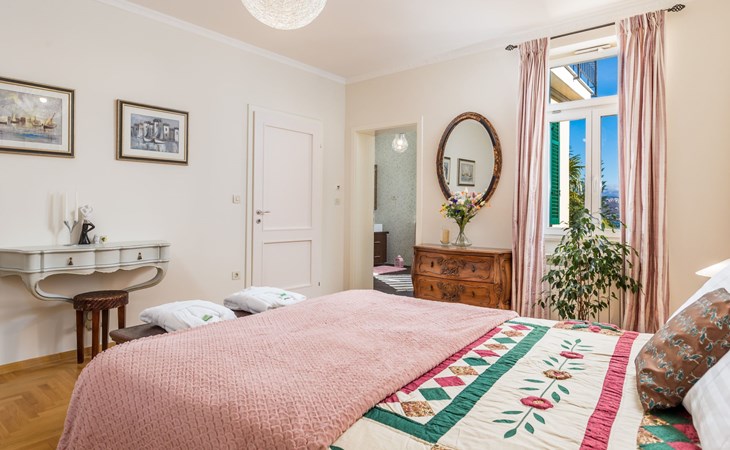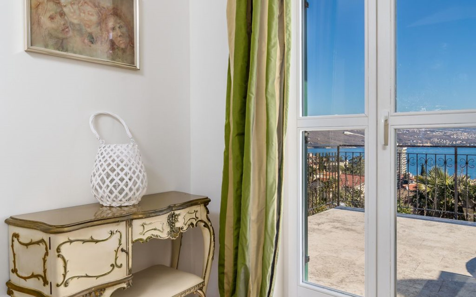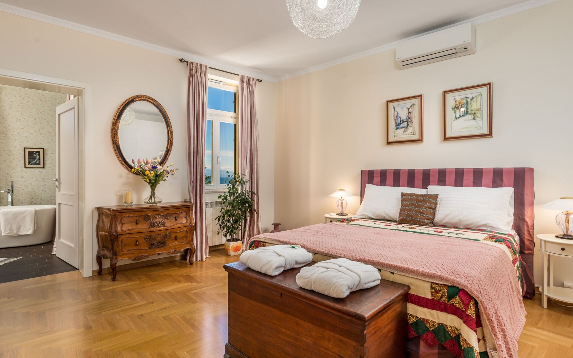 Discover the charm of Opatija from our family-run holiday house, nestled in the heart of the Kvarner Bay. As your host, my name is Vilma, and together with my family, we invite you to stay in our cherished villa, where our passions for food, socializing, art, and antiques converge to create a unique and memorable experience. Ideal for groups of up to 8 persons, our heritage-protected house is a gateway to both relaxation and adventure in one of Croatia's most picturesque locations.The interior of the house is equipped with all the amenities to ensure a comfortable and convenient stay. With four bedrooms and three bathrooms, including both shower and bath tub options, there is ample space and privacy for all guests. The house features air conditioning throughout, underfloor heating in some areas, and for those longer stays or just practicality, a washing machine and clothes dryer are for exclusive use within the property. The kitchen is fully equipped to cater to all your culinary needs, with a gas cooker, both filter coffee machine and coffee machine capsules/pods, an electric kettle, and a dishwasher for easy cleanup.Step outside to the private garden, and you'll find an oasis of tranquility exclusively for your use, making it a perfect spot for leisurely afternoons or a quiet morning with a book. The terrace and roof terrace provide ample outdoor space for dining al fresco, soaking up the sun, or simply enjoying the serene surrounding with your favorite drink. Pets are welcome here, meaning no member of the family has to be left behind.Situated merely 250 meters from the beach and equally close to the dog-friendly beach and the sparkling Adriatic Sea, our holiday house invites you to immerse in the coastal lifestyle. Water sports enthusiasts will find their haven just 300 meters away at the sea or explore the mountain trails accessible by the nearby mountain rail. With the nearest town center only a 200-meter stroll away, and a grocery store equally close, you'll have convenient access to everything you need - from local cuisine to essentials.In Opatija, where the allure of historical elegance meets the untouched beauty of nature, our holiday house stands as your perfect retreat. Whether you're looking to delve into the local culture, enjoy the vibrant culinary scene, or simply take a moment to unwind, our family welcomes you to a stay filled with genuine warmth and the beauty that only the Kvarner Bay can offer.