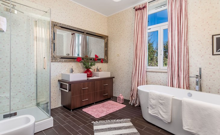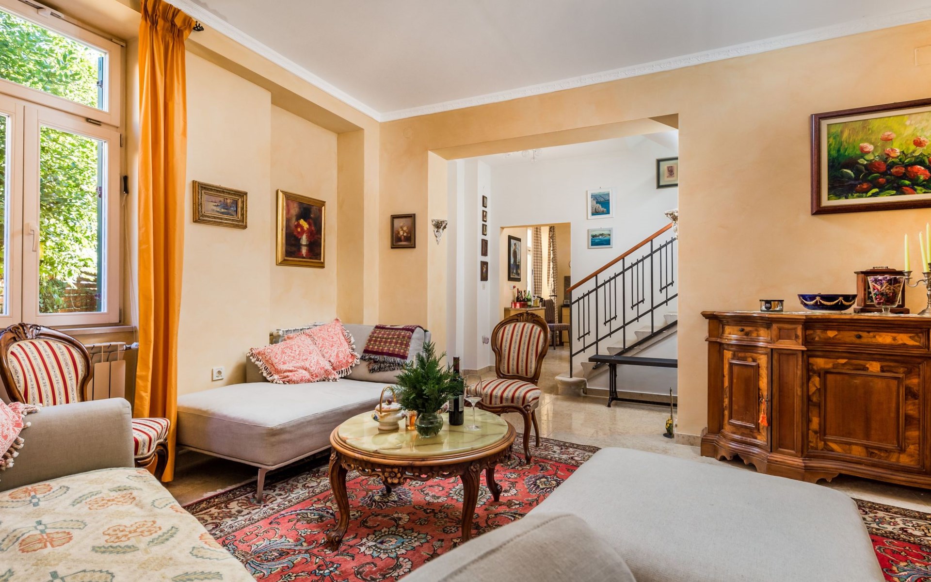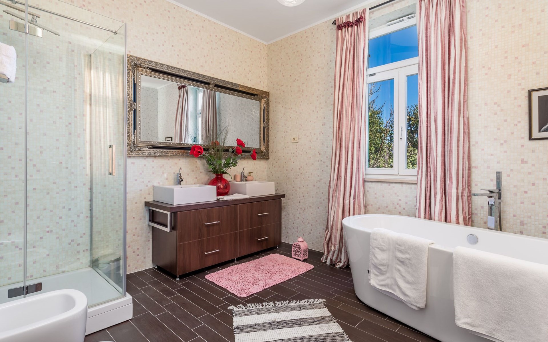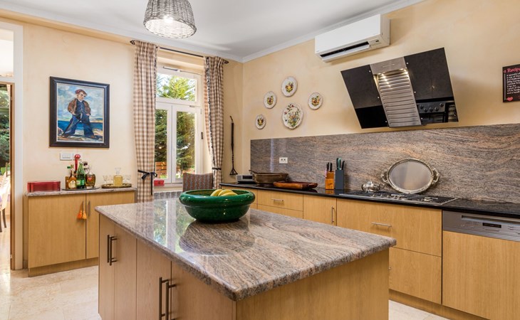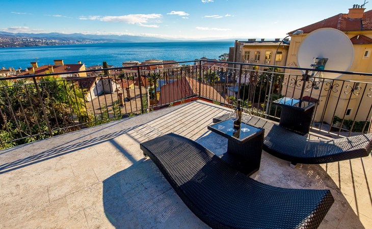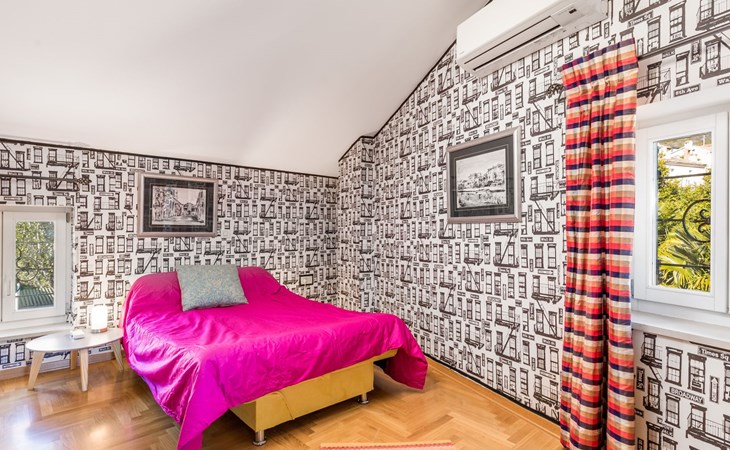 Discover the charm of Opatija from our family-run holiday house, nestled in the heart of the Kvarner Bay. As your host, my name is Vilma, and together with my family, we invite you to stay in our cherished villa, where our passions for food, socializing, art, and antiques converge to create a unique and memorable experience. Ideal for groups of up to 8 persons, our heritage-protected house is a gateway to both relaxation and adventure in one of Croatia's most picturesque locations.The interior of the house is equipped with all the amenities to ensure a comfortable and convenient stay. With four bedrooms and three bathrooms, including both shower and bath tub options, there is ample space and privacy for all guests. The house features air conditioning throughout, underfloor heating in some areas, and for those longer stays or just practicality, a washing machine and clothes dryer are for exclusive use within the property. The kitchen is fully equipped to cater to all your culinary needs, with a gas cooker, both filter coffee machine and coffee machine capsules/pods, an electric kettle, and a dishwasher for easy cleanup.Step outside to the private garden, and you'll find an oasis of tranquility exclusively for your use, making it a perfect spot for leisurely afternoons or a quiet morning with a book. The terrace and roof terrace provide ample outdoor space for dining al fresco, soaking up the sun, or simply enjoying the serene surrounding with your favorite drink. Pets are welcome here, meaning no member of the family has to be left behind.Situated merely 250 meters from the beach and equally close to the dog-friendly beach and the sparkling Adriatic Sea, our holiday house invites you to immerse in the coastal lifestyle. Water sports enthusiasts will find their haven just 300 meters away at the sea or explore the mountain trails accessible by the nearby mountain rail. With the nearest town center only a 200-meter stroll away, and a grocery store equally close, you'll have convenient access to everything you need - from local cuisine to essentials.In Opatija, where the allure of historical elegance meets the untouched beauty of nature, our holiday house stands as your perfect retreat. Whether you're looking to delve into the local culture, enjoy the vibrant culinary scene, or simply take a moment to unwind, our family welcomes you to a stay filled with genuine warmth and the beauty that only the Kvarner Bay can offer.