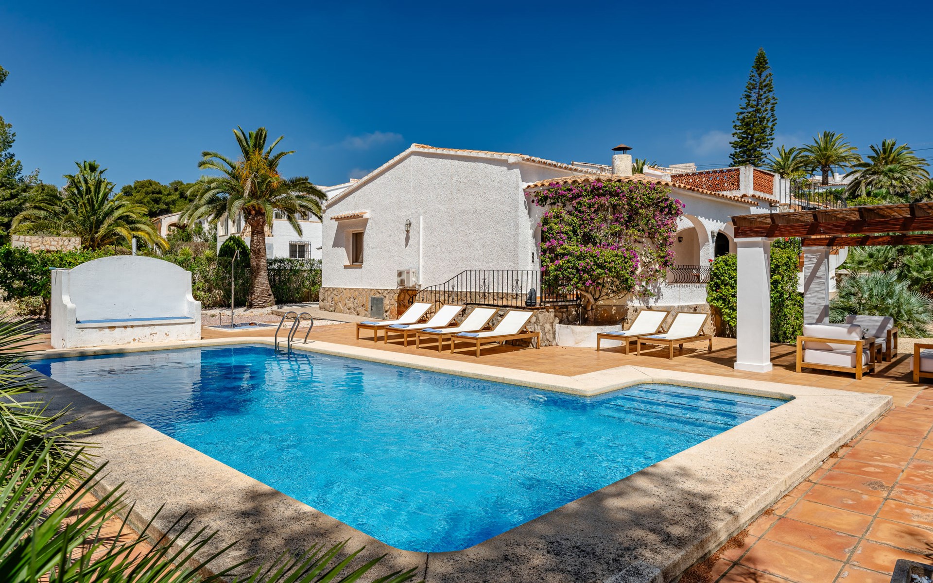 Groot, mooi villa "Alsing", gerenoveerd in 2023. In de plaats Balcon al Mar, rustige, zonnige ligging, 500 m van zee, 4 km van het strand. Voor alleengebruik: mooie, verzorgde tuin met planten en bomen, openluchtzwembad hoekig (10 x 5 m, 40 - 210 cm diepte, seizoensgebonden beschikbaarheid: 01.Jan. - 31.Dec.) met trap. Buitendouche, tuinmeubelen, parkeerplaats op het terrein. Supermarkt, restaurant 400 m, bushalte "Parada Toscamar" 4.8 km, zandstrand "El Arenal" 6 km, stenenstrand "Portitxol" 4.2 km. Surfschool 4.2 km, zeilschool 4.2 km, tennis 400 m. De eigenaar accepteert geen jeugdgroepen.