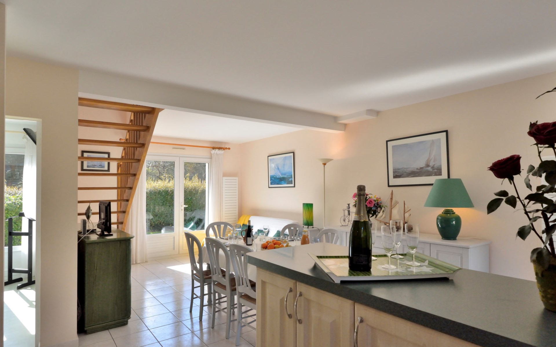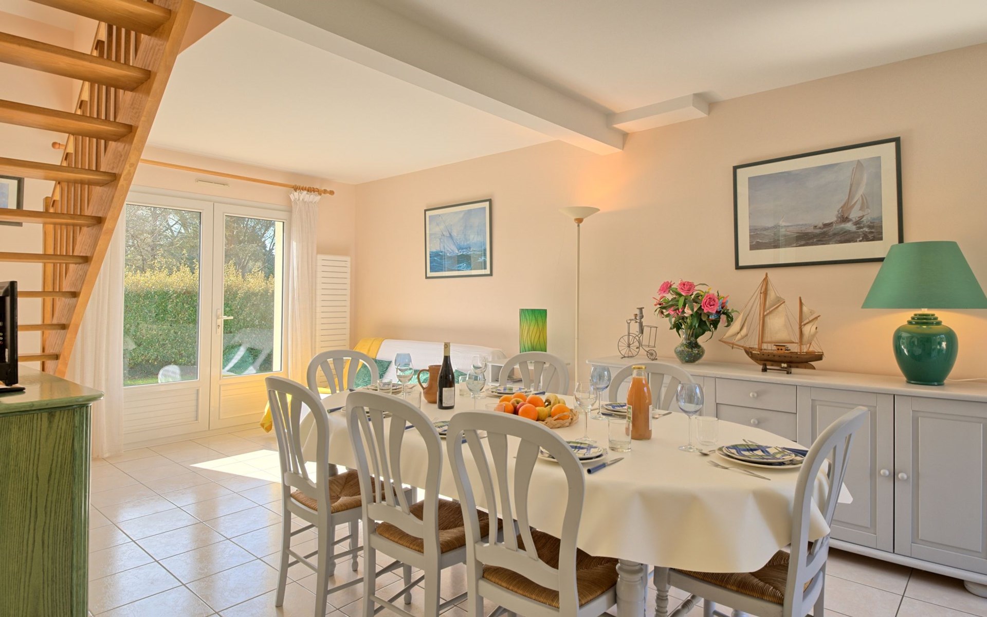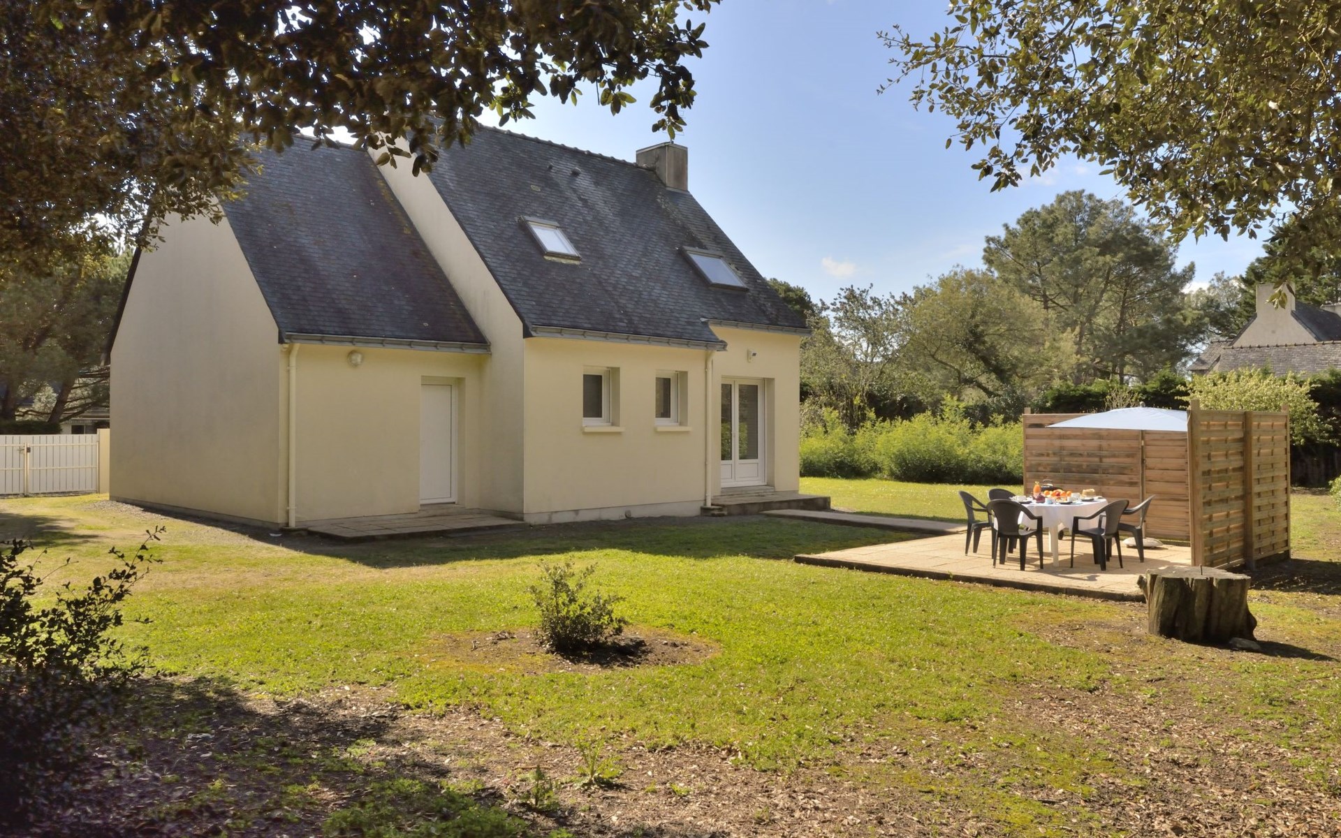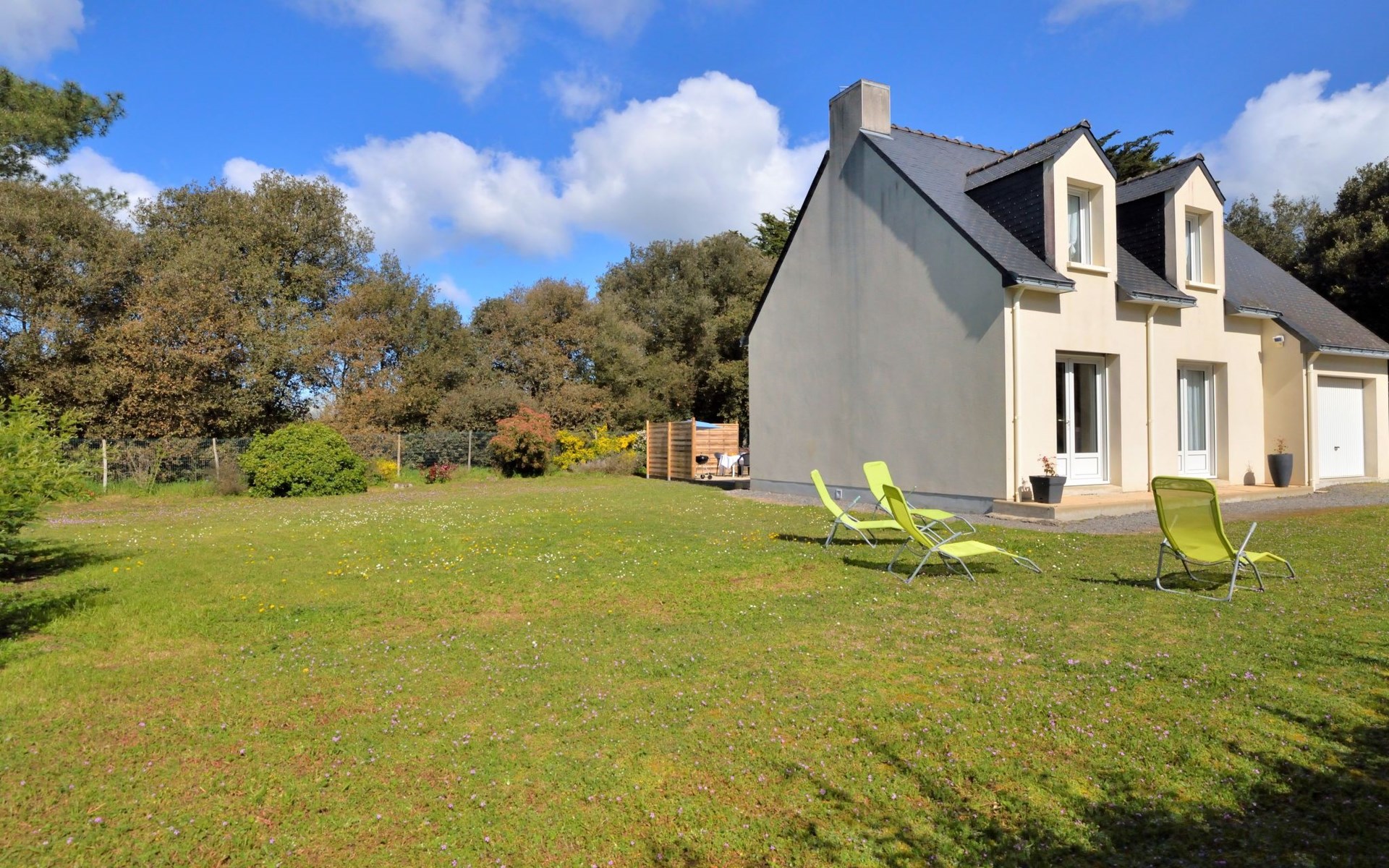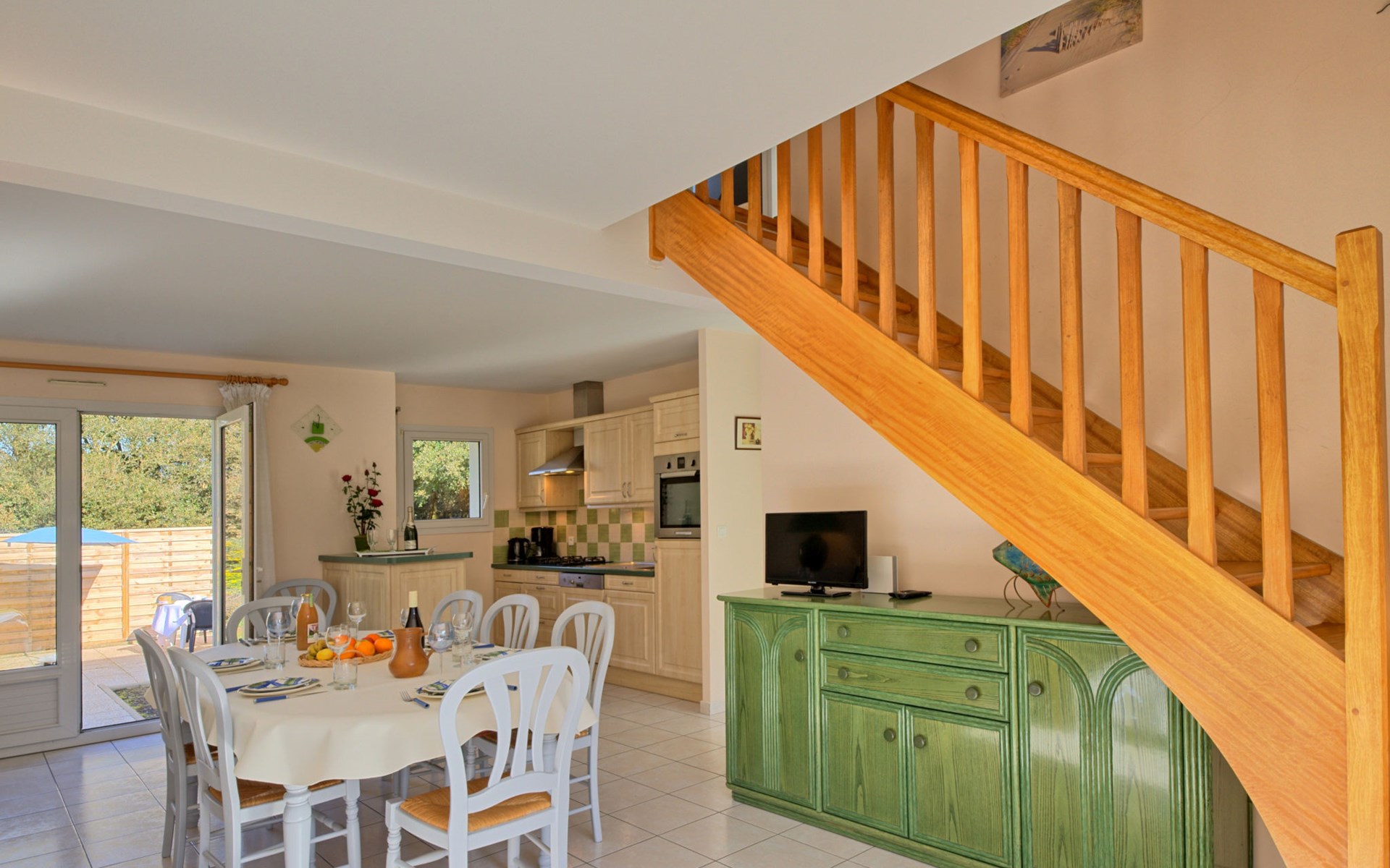 Eengezinswoning "Les Chênes Verts". 2 km van het centrum van La Turballe, 8.4 km van het centrum van Guérande, in een woonwijk, 600 m van zee. Voor alleengebruik: tuin 1.000 m2 (omheind) met gazon en bomen, parkeerplaats op het terrein. Supermarkt 800 m, restaurant 2 km, bushalte 2 km, zandstrand 600 m, overdekt zwembad 5 km. Zeilschool 2.5 km. Attracties in de buurt: Port de pêche 2 km, Marais Salants 4 km, Parc naturel régional de Brière 8 km, Nantes 90 km.