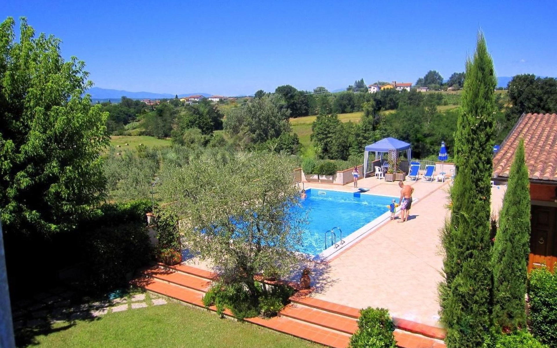 AGRITURISMO POGGIO ALLA CAVALLA is located in the heart of Tuscany, near Florence, between Montecatini Terme and Vinci, the birthplace of Leonardo. Thanks to its privileged geographical position, it is possible to make day trips to the Tuscan cities of art: Florence, Pistoia, Pisa, Siena, S. Gimignano, Volterra, Arezzo, Cortona, Lucca and the sea of Versilia.The flat is surrounded by a garden, inside which there is a swimming pool, with a large panoramic terrace and private parking. The apartment is about 42 square metres; it is situated on the ground floor, has 1 double bedroom and a comfortable double sofa bed in the living room, for a maximum of 5 guests (2+3). The apartment has an independent entrance, independent heating, air conditioning, TV, FreeWiFi Internet access, and is composed of: Kitchenette (cooker, electric oven, dishwasher, sink, fridge-freezer), a comfortable living area with dining table and comfortable double sofa bed (complete with linen and blankets), double bedroom (possibility of adding a cot) furnished with typical Tuscan furniture and fittings (complete with linen and blankets), comfortable and functional bathroom with shower cubicle, washbasin, toilet, bidet and hairdryer. (The flat has a private outdoor area equipped with table, chairs and sun umbrella, barbecue, The swimming pool for flat guests only (10x6 mt. open from 30.04 to 01.10) is equipped with gazebo, umbrellas, sun beds, deckchairs and shower.Nearby ( km 1/km 2 ) there are: supermarkets and various shops, banks, post office, pharmacy, doctors' surgery, public assistance green cross, restaurants and pizzerias etc.Short description Other : Non-smoking houseBrief description 1Other rooms : Living room-Diving room 2 placesTotal kitchens : 1Living room 1Other living room equipment : A comfortable living area with a double sofa bed equipped with linen and blankets; independent heating, air conditioning, TV, DVD, FreeWifi Internet. Bedroom 1Other bedroom equipment : Bright and spacious double bedroom with a cot, typical Tuscan furniture, wardrobe, bedside tables with lamps, air conditioning, Free Wi-Fi internet connection.Kitchen 1Other kitchen equipment : Kitchen with kitchenette (4 burner gas cooker, electric oven, dishwasher, sink, fridge-freezer), dining table and chairs, utensils and 6 plates and glasses service, tablecloth and kitchen towels.SURROUNDINGS Sports facilities in the surrounding area : Football pitch, Golf course, Sports centre, Bicycle tours, Mountain biking, Fishing, TennisSurroundings 1Other sports and leisure facilities : In the vicinity of the Agriturismo Poggio alla Cavalla there are recreational activities, services and tourist attractions : Chianti Montalbano Hills : Oil and wine road - Leonardo's hillsPadule di Fucecchio : Excursions Collodi Natural Reserve : Pinocchio ParkPistoia : ZooMonsummano Terme : Thermal caves and thermal poolMonsummano Terme : Golf Course "La Pievaccia "Montecatini Terme : Thermal curesMontecatini Terme : HippodromeMontecatini Terme : ShootingLamporecchio : Fitness and wellness centreLamporecchio : Tennis clubLocation description : The farmhouse "Poggio alla Cavalla" is located in Lamporecchio in the heart of Tuscany, near Florence, between Montecatini Terme and Vinci, the birthplace of Leonardo. The area lies on the slopes of the Chianti Montalbano hills, a natural terrace overlooking the Valdinievole, with Pescia the town of flowers, Collodi famous for the Pinocchio park and the Padule di Fucecchio nature reserve of great interest. The countryside surrounding the farmhouse, very green and undulating thanks to the gentleness of its hills, is mainly cultivated with vines and olive trees, and is characterised by hills that are not very high except for the Chianti Montalbano hills. The conformation of the land and the vitality of the countryside have led to the emergence, over time, of many small centres rich in: Artisan workshops, Small trades, Typical restaurants, Markets.Destinations for excursions : Thanks to the privileged geographical position of the Agriturismo Poggio alla Cavalla, it is possible to make day trips to the art cities of Tuscany.Tuscany is a region truly rich in interesting things to see, there are so many beautiful places to visit in Tuscany, that it can be difficult to decide which ones to choose. We have therefore thought of indicating in this section the Art Cities the places or things we recommend you see during your stay in Tuscany.Certainly in the list of the main Cities of Art to visit there are :FLORENCE, SIENA, PISA, LUCCA, SAN GIMIGNANO, VOLTERRA, PISTOIA, VINCI and SAN MINIATO, AREZZO and CORTONAThese are the main destinations, but the list of Tuscan Tourist Places to visit is much longer and includes just to name a few:MONTECATINI TERME and COLLODI (Pinocchio Park), FIESOLE and THE MEDICAL VILLAS, THE CHIANTI CLASSICO ROAD, THE CASTLE OF MONTERIGGIONI, THE BEACHES OF THE VERSILIA, THE MARBLE QUARRIES OF CARRARA....Garden and outdoor areasGarden facilities : Playground equipment, Grill, Garden furniture availableAdjacent leisure facilities : Table tennis, Swimming pool, Shared outdoor swimming pool, Private outdoor swimming pool, SolariumServicesServices (fees may apply) : Babysitting service availableOutside: Barbecue; Garden; Private parking; Parking: 1; Private pool; Terrace ; Veranda;General: 2. double bed; 2. single bed; Year of refurbishment: 2015; Bath: 1; Bedroom; Land area: 20000 m;Living: Double sofa; DVD player; TV;Bathroom/WC: Shower; Hair dryer; Solarium nearby; Toilet;Kitchen: Kettle; Electric cooker; Oven; Freezer; Refrigerator; Dishwasher; Coffee machine; Toaster;Other: Non-smoking accommodation; Pets allowed: max. 1; Air conditioning; Washing machine; Heating; View; WIFI available;THE MASTER HOUSE - DescriptionMq.120 - can accommodate 5 people in the 2 bedrooms and another 2 people in the comfortable sofa bed located in the living room. Situated on the ground floor it has an independent entrance, independen