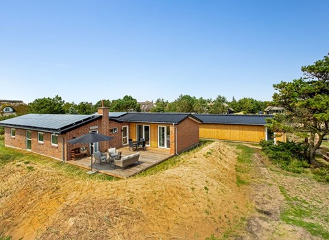 Eengezinswoning, bouwjaar 1982. 275 m van zee. Voor alleengebruik: terrein 1.213 m2, verzorgde tuin. Terras (102 m2), barbecue. In het huis: sauna, wasmachine, droger. Parkeerplaats bij het huis. Levensmiddelenwinkel 5 km. De eigenaar accepteert geen jeugdgroepen.