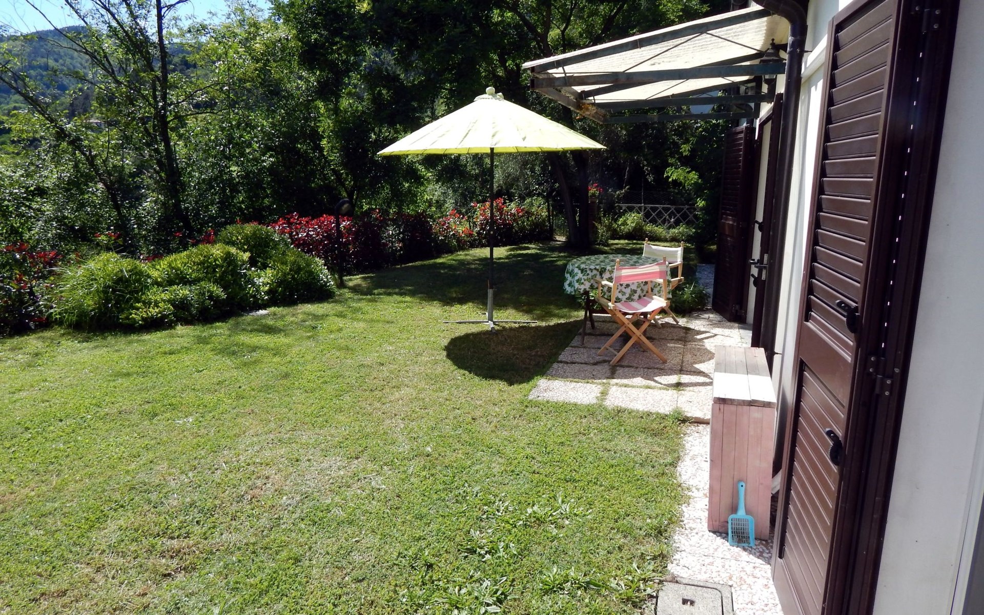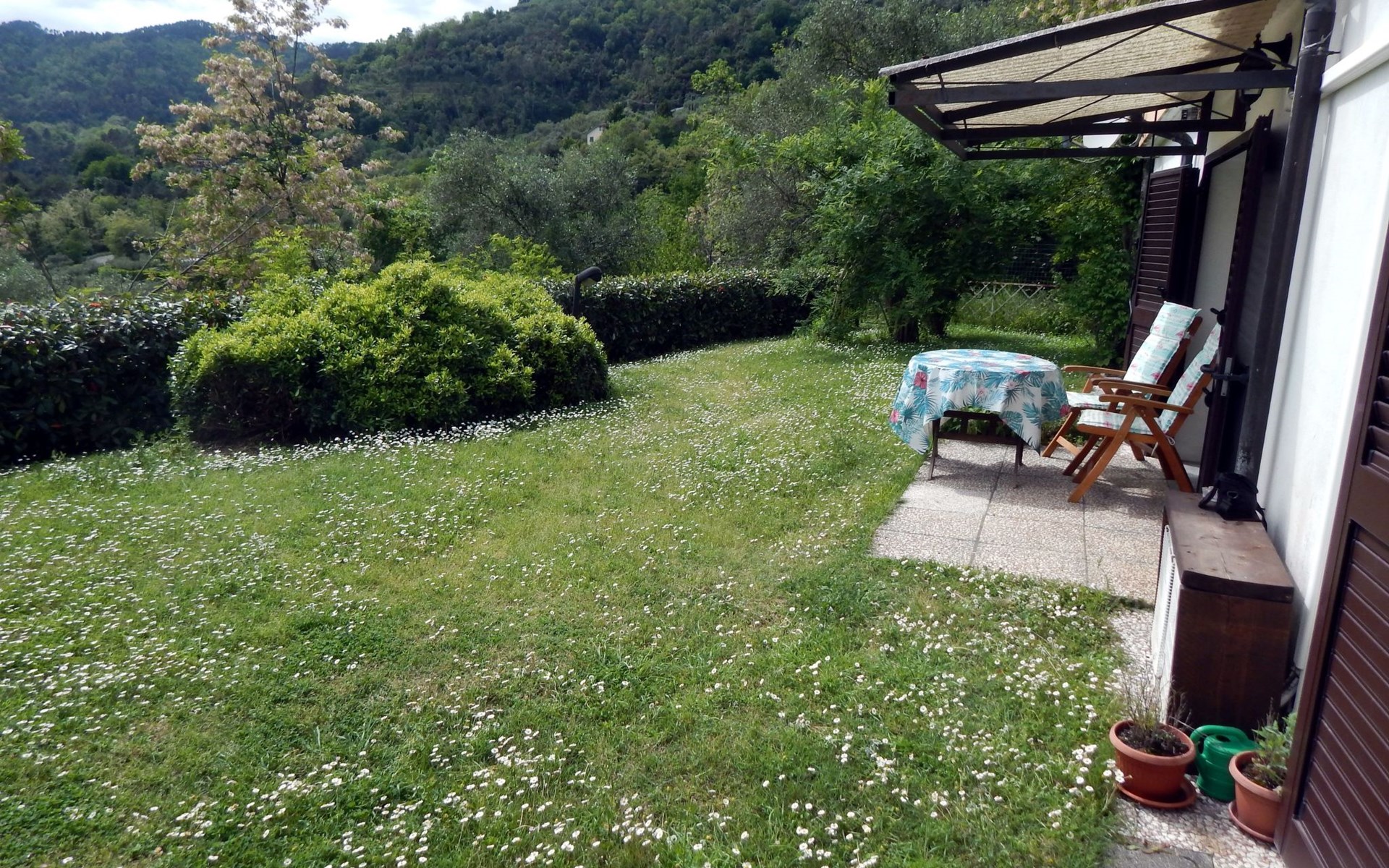 Maximaal 3 huisdieren/honden toegestaan. The annexe “la dependence” lies in the midst of a five-hectare jungle of olives, figs, acacias, mimosas, apricots, pomegranates, oaks and pines.This holiday house for four people measures 80m² and has two bedrooms, each with a double bed. In the kitchen-living room there is air conditioning (for a fee), a dining table and a cosy seating corner with a satellite TV. The bathroom is equipped with a toilet, bidet, sink, shower and washing machine. Central heating is also available.There is an inviting terrace, as well as a fenced garden. Private parking spaces are provided.As the owners also have three dogs, pets are welcome. From the house, you can go on walks with your four-legged friends to the river, where they are allowed to go into the water. They are only allowed in the sea in the autumn and winter, or during bad weather in the spring and summer, which is rare though in this region. The landlord lives next door.The house is located in a Vara tributary valley, halfway to the ancient Tivegna built on the mountain peak. You will find shops in (Pian di) Follo about 3km away, where there are also a bank, a post office, restaurants, tennis courts etc. The nearest bathing possibility is about 2km away in the Vara River. About 10km away there is the tourist resort of La Spezia. This medium-sized harbour town has the only large harbour in Liguria that is protected naturally by the Golfo dei Poeti, forming the border between Liguria and Tuscany. It is a similar distance to the awesome world cultural heritage of Cinque Terre. Portovenere, Lerici, Versilia, Portofino, Sarzana and Carrara are also in the vicinity. You can go biking, riding, climbing, sailing, and even skiing in winter at Passo del Ceretto. The hospitality and the Ligurian gastronomy will make your stay unforgettable. IT011013C2RCZ57CYB