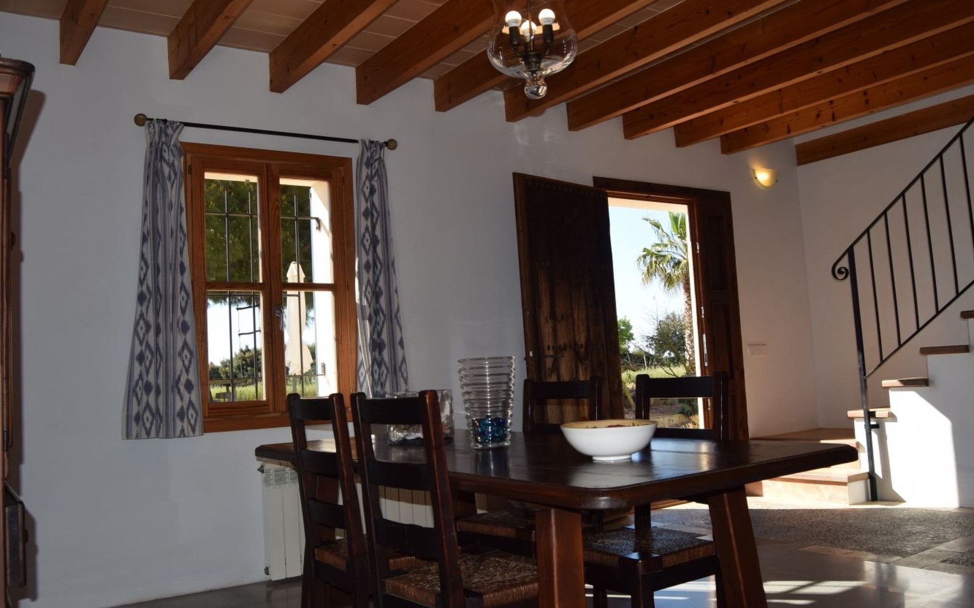 Punta de Vistalegre is a holidays villa with its own pool in Mallorca, which can accommodate up to 6 persons, in one double and two twins rooms. It is located on the east coast from Mallorca, nearby Porto Cristo in a very quiet rural setting, about 60 km from Palma and the airport.The swimming pool is located at the front of the house. It is surrounded by large shaded patios and is an ideal place to relax with no sounds except for those of mother nature for company. This is transformed into a celestial vault at nightfall and is perfect for observing the star-filled sky. The swimming pool covers a surface area of 32 m2 and has a depth which ranges from 0.90m to 1.80m.Private swimming poolWIFI outdoors and indoorsSeasonal vegetables garden4 km from the nearest beaches; Cala Anguila, S’Estany d’en Mas, Cala Mendia and Porto CristoSOME MORE DETAILS ABOUT PUNTA DE VISTALEGREThis cottage on Mallorca, with 160 m2, was constructed at the beginning of the twentieth century as a farm building for the land which surrounds it. The cottage has undergone various extensions over the years, as required by changes in the way the land is worked. The oldest part is constructed from stone and earth, which were taken from the land that it serves. The rest of the building has been constructed with marès - a type of sandstone that is easy to work and found in abundance on Mallorca. The property, in which the cottage is located covers 46,168m2 and continues to function agriculturally, combining an almond grove with a small flock of sheep and a summer vegetables garden, which provides fresh vegetables to the guests. It is located in a quiet spot near the town of Porto Cristo and the beaches of Cala Anguila, Cala Mendia and S'Estany d'En Mas.BEDROOMSThe main bedroom is on the ground floor and is accessed from the dining room. It has a double bed, a window set in the fa�ade of the building, and the original stones used in the construction of the buildings walls are uncovered. There are two more bedrooms upstairs. These have spectacular views over the countryside and onto the sea. They both have two beds, but one has a bed situated on a raised platform at over 2 metres from the floor, which is bound to prove exciting for young children.DINING ROOMThe main entrance to the house leads straight into the dining room, from which the rest of the rooms can be accessed. There are two entrances, the main entrance and another door which is next to the kitchen and which leads on to the patio in front of the swimming pool. This patio was originally used for drying out the figs collected from the trees belonging to the house during summer.LIVING ROOMThe living room is a large room with 4 windows that offer views over the countryside to the mountains and sea in the distance. It is upstairs and is reached directly from the staircase which leads up from the dining room. There is here a TV connected to Astra satellite channels.KITCHEN AND LAUNDRYThe kitchen covers an area of 13.45 m2 and is next to the dining room on the ground floor. It is well equipped for cooking, and contains the following items: Complete crockery and cutlery sets for 12 peopleDishwasher Cooking rings with a ceramic glass plateElectric oven Microwave oven Toaster Fridge-freezer Coffee-pot Kettle The laundry room is on the ground floor and can be accessed from the inside or exterior of the house, it has a washing machine and an iron. We provide washing materials. BATHROOMSThere are two bathrooms in the house. The first, which is on the ground floor, is accessed from the dining room and is next to the main bedroom. The other one is upstairs, next to the two upstairs bedrooms. Both have windows at the rear of the building. ESFCTU00000702300059584300000000000000000000ETV/9