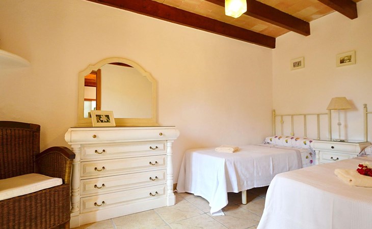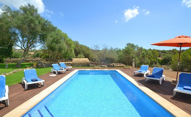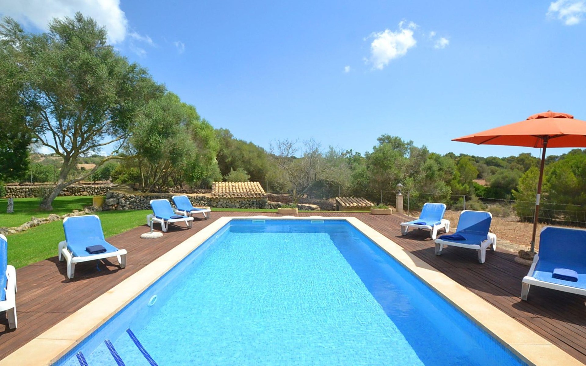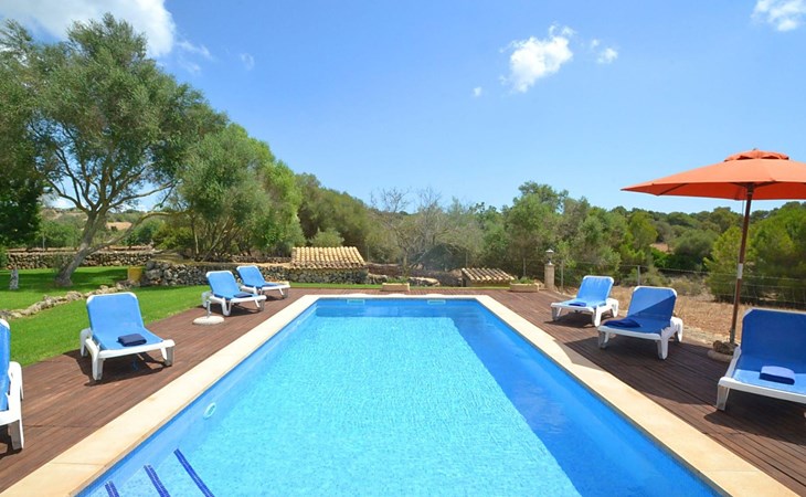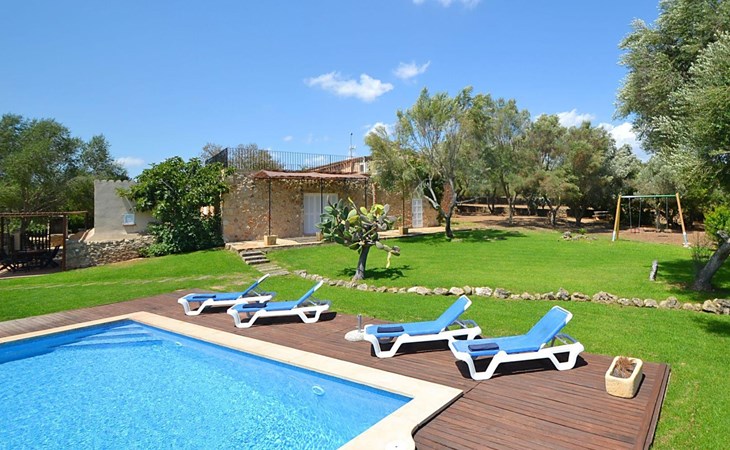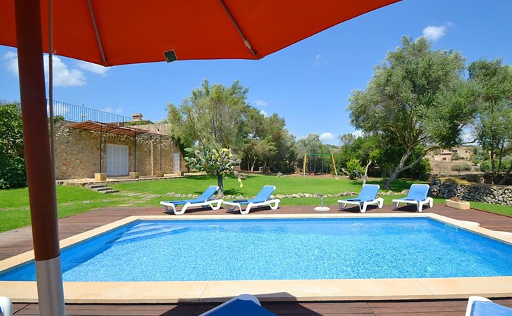 Manacor: Gezellig, comfortabel huis "Mascaro", bouwjaar 2006, omgeven door bomen en velden. Aan de rand van de plaats Manacor, rustige ligging, te midden van groen. Voor alleengebruik: terrein (omheind), ligweide, mooie tuin ter ontspanning, openluchtzwembad (9 x 4 m, seizoensgebonden beschikbaarheid: 01.Mrt. - 30.Okt.). Buitendouche, patio, prieel, tuinmeubelen, barbecue. In het huis: internetaansluiting, Internet (WiFi), air-conditioning, wasmachine. Parkeerplaats op het terrein. Winkel 4 km, levensmiddelenwinkel 4 km, supermarkt 4 km, restaurant 4 km, bushalte "Manacor" 9 km, treinstation "Manacor" 9 km, zandstrand 4 km. Auto noodzakelijk. Geschikt voor families, geschikt voor senioren baby uitrusting (incl.). De eigenaar accepteert geen jeugdgroepen. Laden en lossen van de baggage is mogelijk bij het huis. Vliegveld 48 km van het huis.