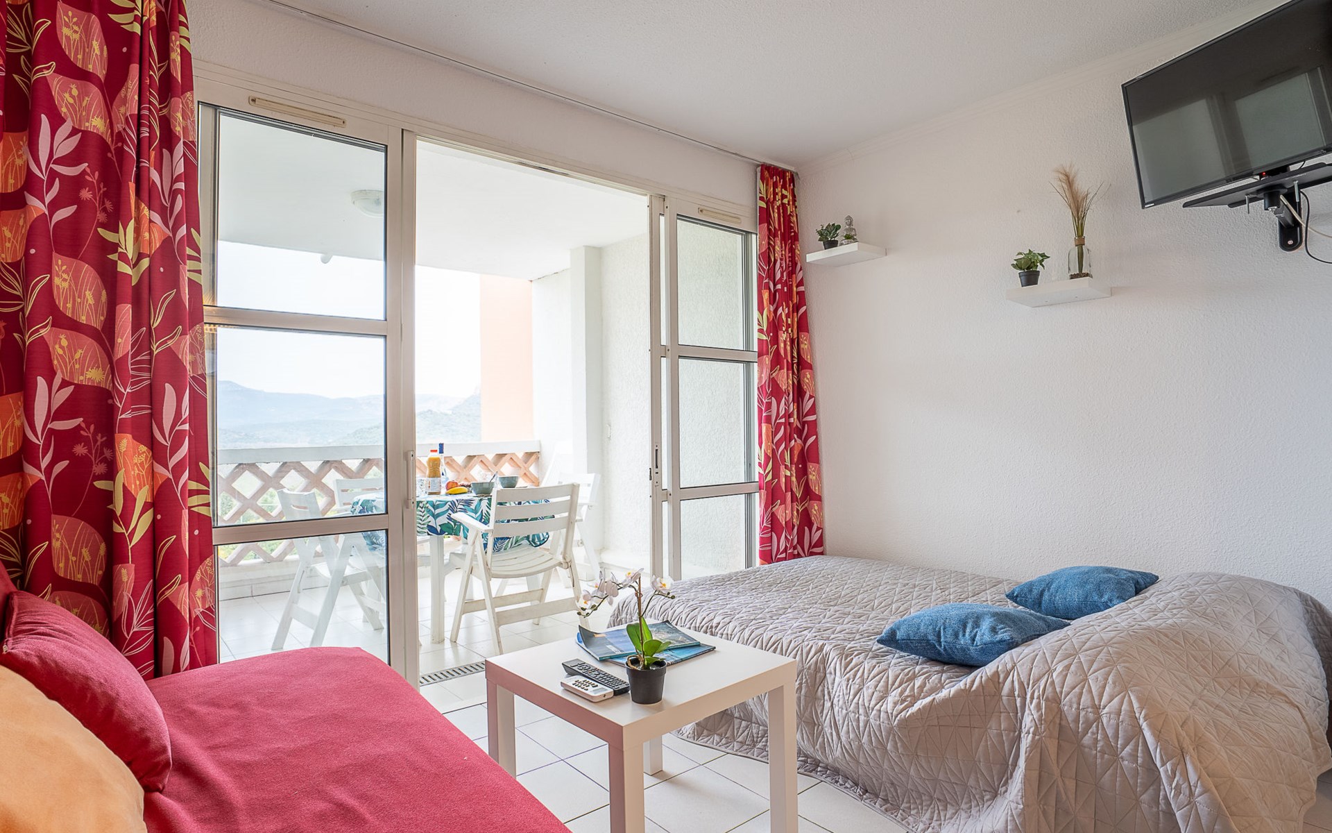 Groot vakantiecomplex "Village Cap Estérel - Le Village". Aan de rand van de plaats, 2 km van het centrum van Agay, tegen een helling, in een woonwijk, 900 m van zee, van het strand, de straat oversteken, aan de golfbaan, in een voetgangerszone. Voor medegebruik: park 210 ha, 5 zwembaden (seizoensgebonden beschikbaarheid: 06.Apr. - 03.Nov.). Kinderzwembad, jeu de boules, kinderspeelplaats (glijbaan, schommel). In het complex: spa centrum (extra), winkel, wasserette (extra). Oplaadstation. Winkel 500 m, levensmiddelenwinkel, supermarkt 6 km, restaurant 500 m, bakkerij, bushalte "Ligne 21" 300 m, station "Saint-Raphaël-Valescure TGV" 9 km, zandstrand "Tiki Plage" 900 m. Jachthaven 1 km, golfterrein (9 holes), tennis 500 m. Attracties in de buurt: Anthéor 8 km, Saint-Raphaël 9 km, Fréjus 13 km, Cannes 33 km, Saint-Tropez 50 km, Nice 76 km. Bekende meren kunnen gemakkelijk worden bereikt: Lac Saint-Cassien. Wandelgebied Massif de l'Estérel. Autovrij vakantiepark, geen lift. Animatie in het hoogseizoen. Geschikt voor families, kinderopvang mogelijk in het hoogseizoen (extra). Bewaakt vakantiecomplex. Vergelijkbare accommodaties kunnen worden geboekt.