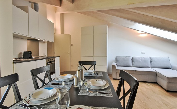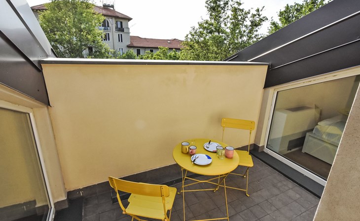 Klein, mooi appartementencomplex "White Attic Terrace", van 3 verdiepingen, uit de 19e eeuw, gerenoveerd in 2024. 2.5 km van het centrum van Milano, in het district Corvetto, drukke ligging, aan een hoofdweg, op het westen. In het huis: lift, centrale verwarming, verwarming alleen beschikbaar van 15.Okt. - 15.Apr.. Openbare parkeerplaatsen in de straat. Levensmiddelenwinkel, supermarkt 250 m, restaurant, bar, café 50 m, bushalte 50 m, treinstation "Centrale(Malpensa Express Train)" 6 km, metrostation "Corvetto (M3)" 250 m, park "Parco Sempione" 5.5 km, overdekt zwembad 800 m, thermaalbad "Terme Milano" 2.5 km. Golfterrein (18 holes) 7.7 km. Attracties in de buurt: Fondazione Prada 2 km, Navigli (canal district) 4 km, Piazza del Duomo 4.3 km, Brera district 5 km, Castello Sforzesco 5.2 km, Fiera Milano City/ MiCo 8 km. Bekende meren kunnen gemakkelijk worden bereikt: Lago di Como 58 km.