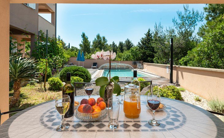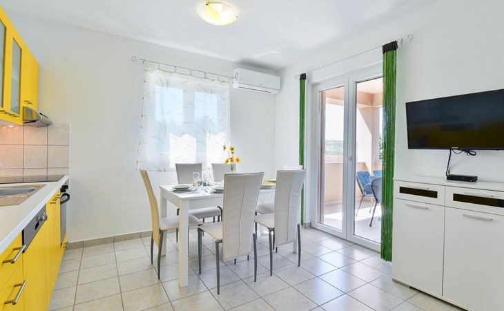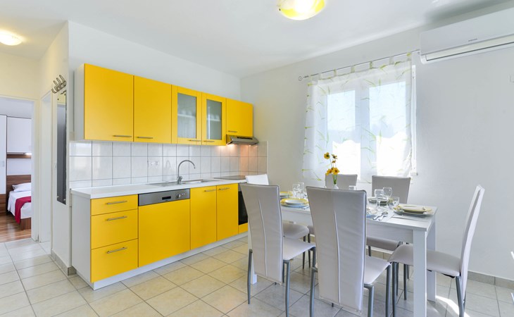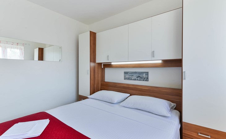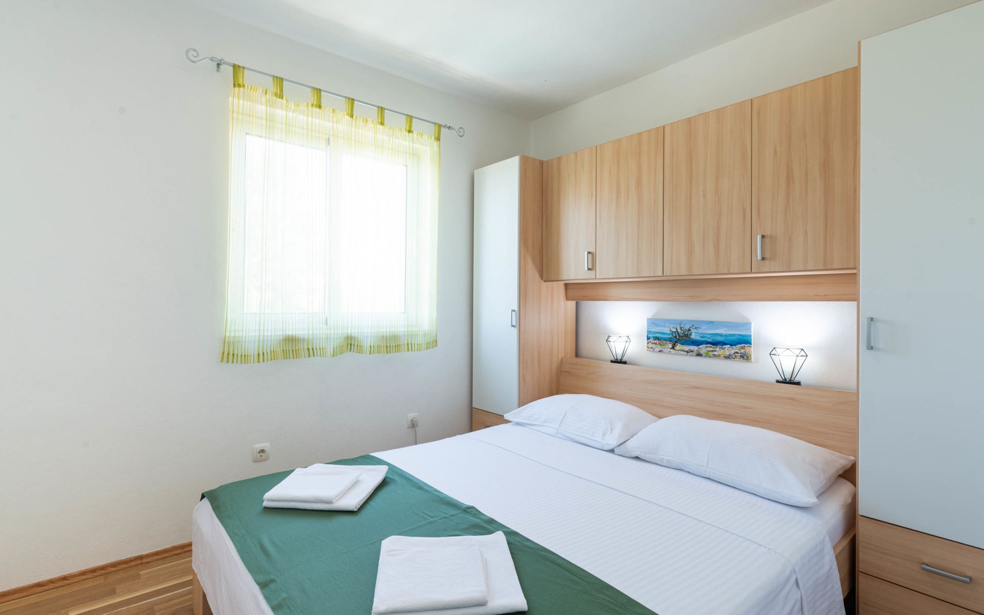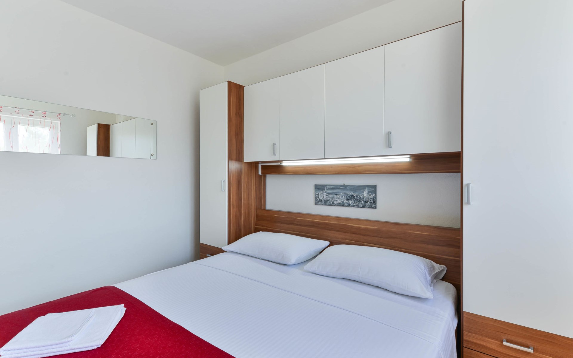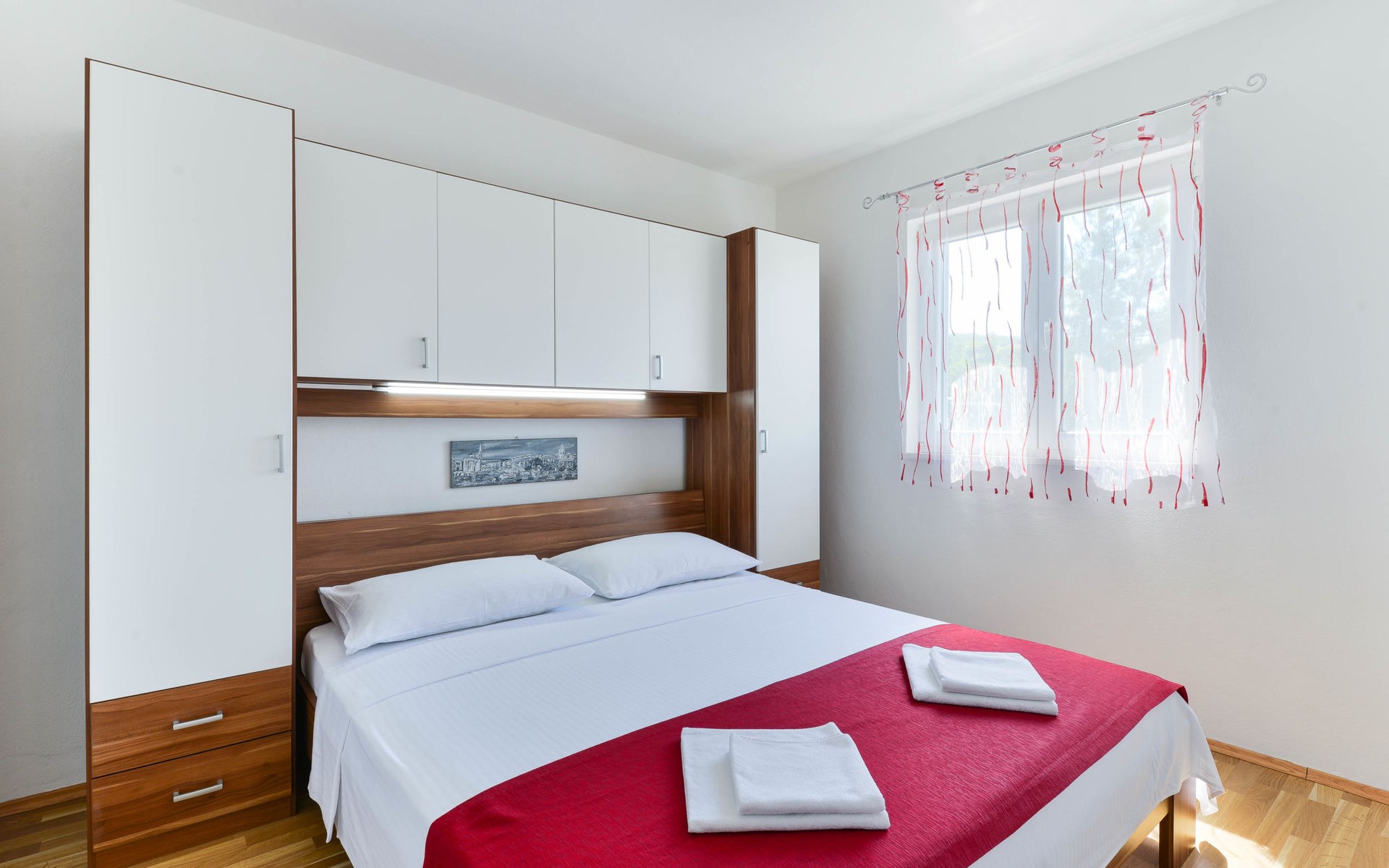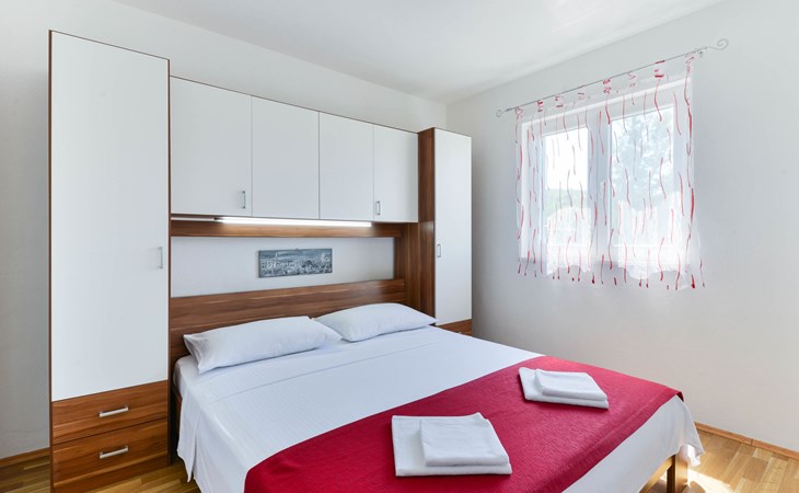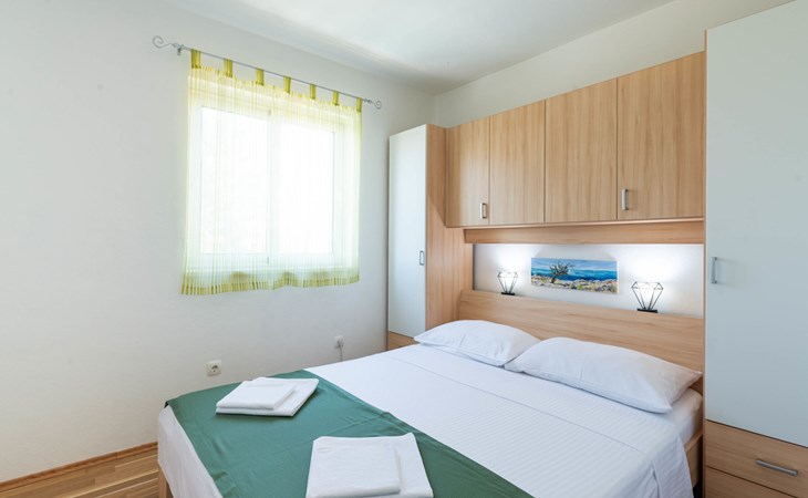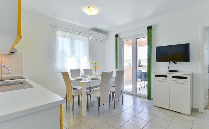 Appartementencomplex "Matas". 12 km van het centrum van Starigrad, 300 m van het centrum van Rovanjska, 35 km van het centrum van Zadar, 200 m van zee, 200 m van het strand, aan een doodlopende weg. Voor medegebruik: terrein 500 m2 (omheind) met bomen, openluchtzwembad hoekig verwarmd (8 x 3 m, 30 m2, 150 cm diepte, seizoensgebonden beschikbaarheid: 28.Mrt. - 17.Okt.) met trap en oprolbaar afdekscherm. Buitendouche, terras, tuinmeubelen, barbecue, onderhoud zwembad door de eigenaar/tuinman. In het huis: internetaansluiting. Parkeerplaats op het terrein, openbare parkeerplaatsen. Winkel 300 m, restaurant 500 m, bushalte 350 m, rotsstrand 200 m. Zwembad met stroming.