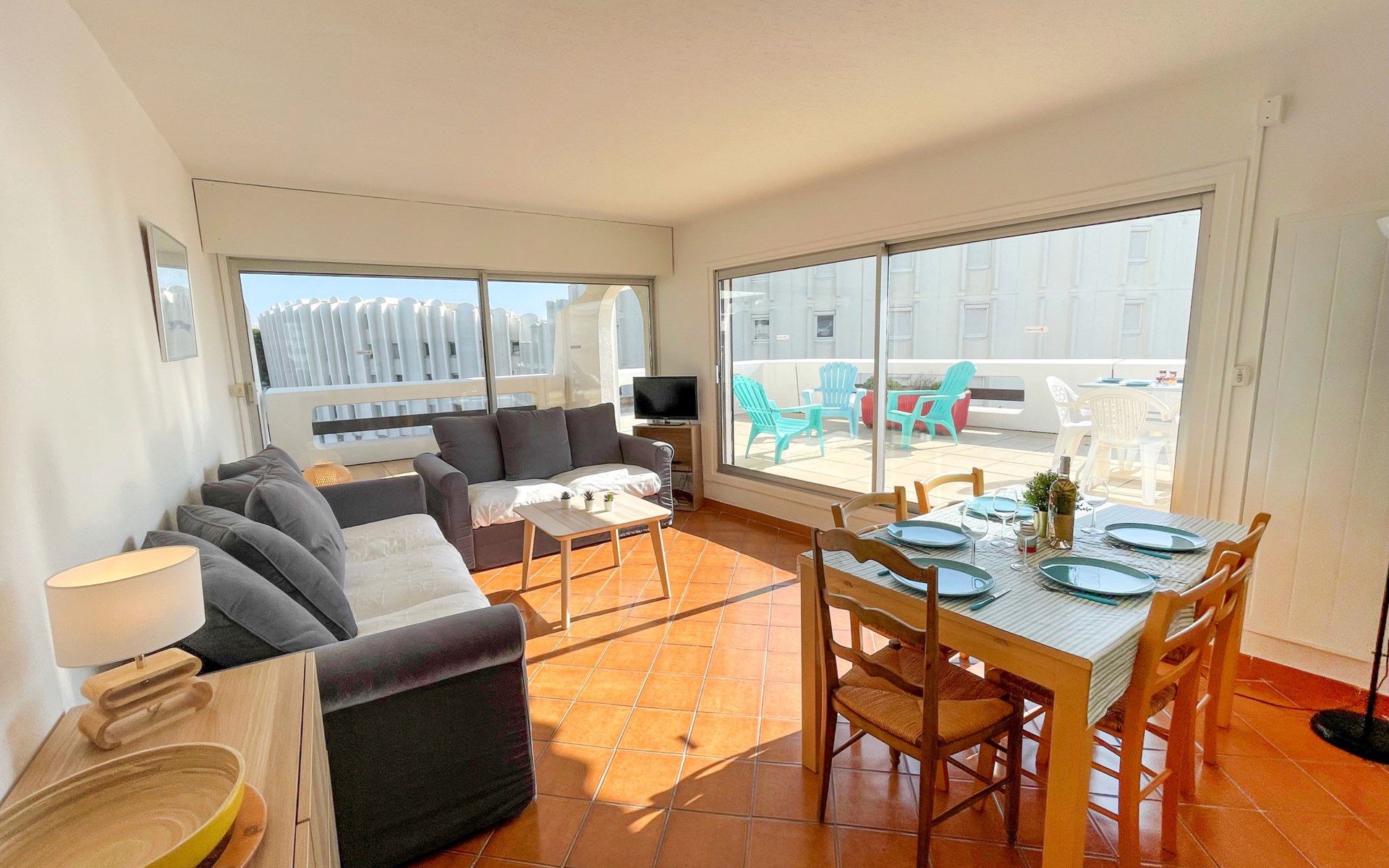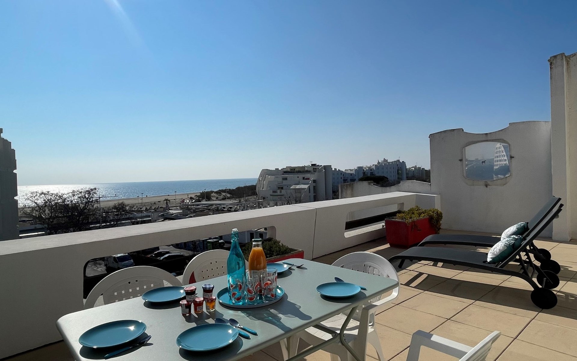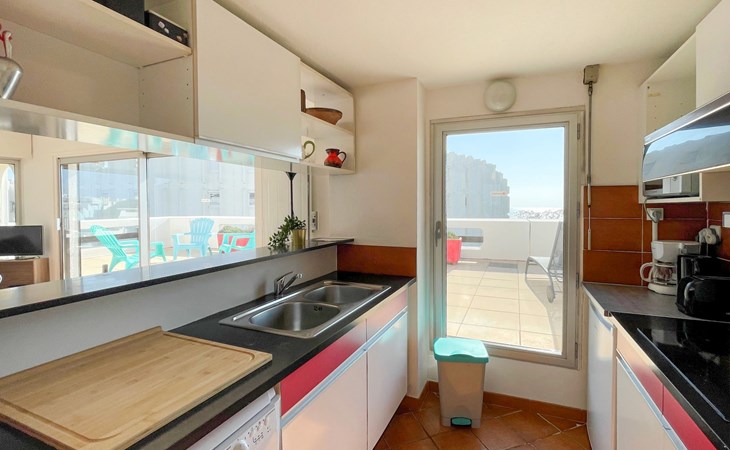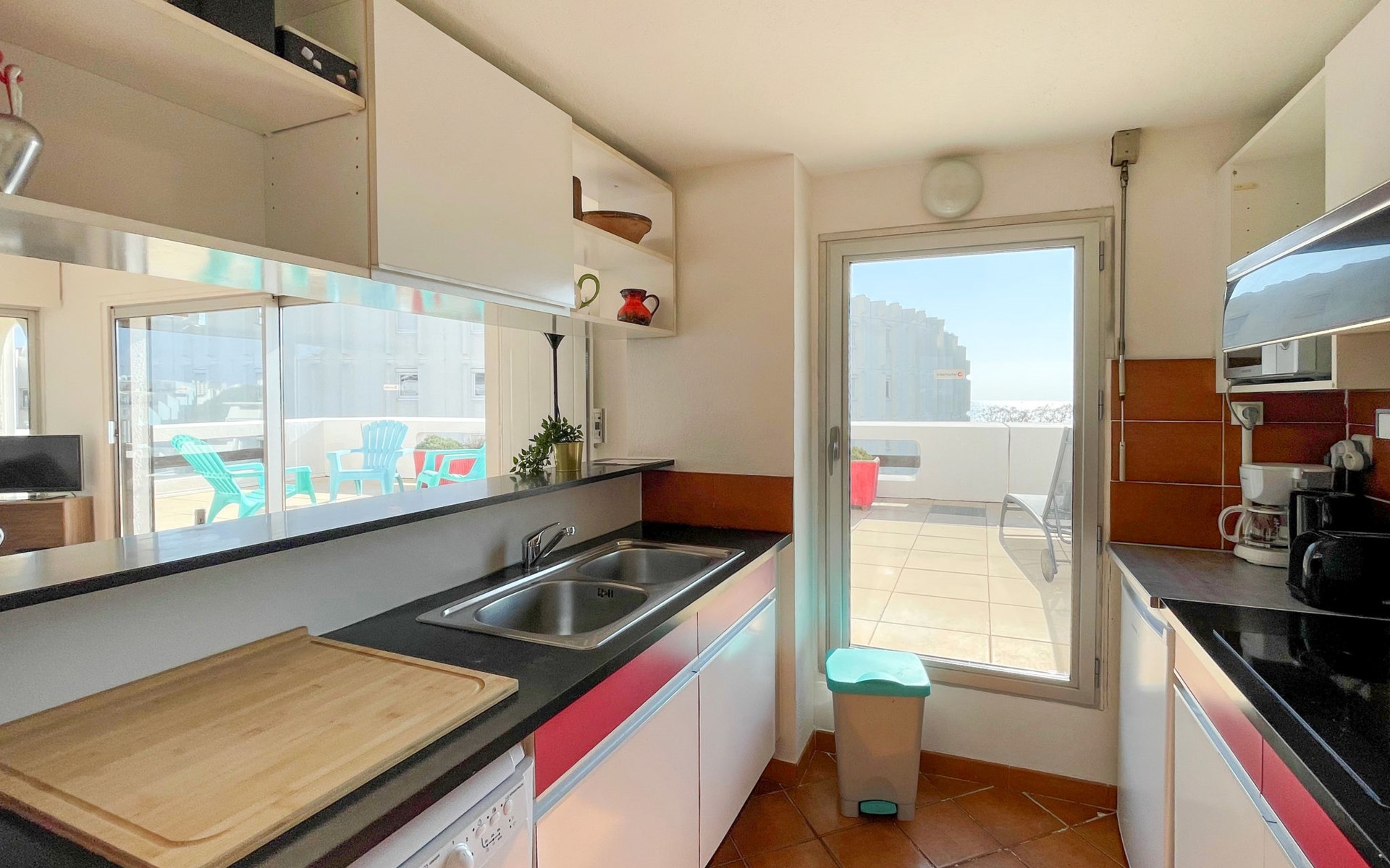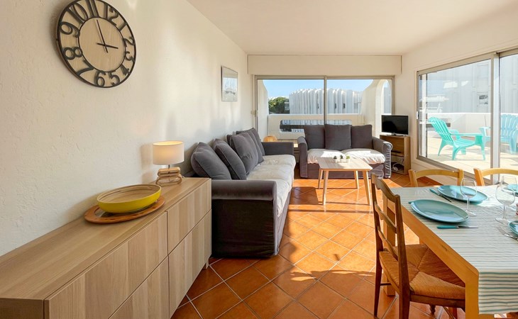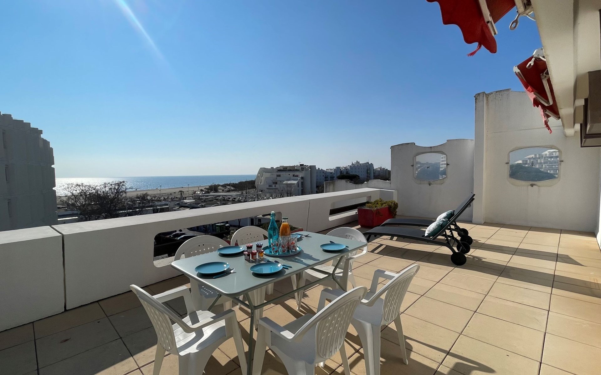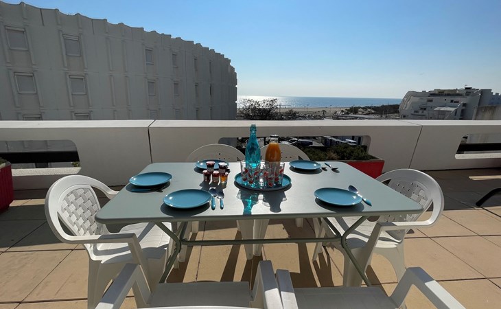 Residentie "Jardins d'Ulysse II", van 5 verdiepingen. In de wijk la Motte du Couchant, 1 km van het centrum, 100 m van zee, 80 m van het strand. In het complex: lift. Winkelcentrum 50 m, restaurant, centrum te voet bereikbaar in 25 minuten, bushalte 400 m, station "Montpellier" 25 km, zandstrand, overdekt zwembad 3 km, thermaalbad "Thalasso Spa" 3 km. Jachthaven 900 m, golfterrein (18 holes) 3.5 km, zeilschool 900 m, tennis 3 km, manege 1 km. Attracties in de buurt: Le Seaquarium du Grau Du Roi 10 km, Les Remparts d'Aigues Mortes 12 km, Les Saintes Maries de la Mer 40 km. Vliegveld in de buurt 20 km van het huis.