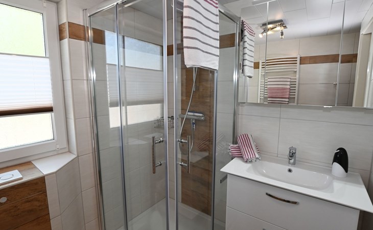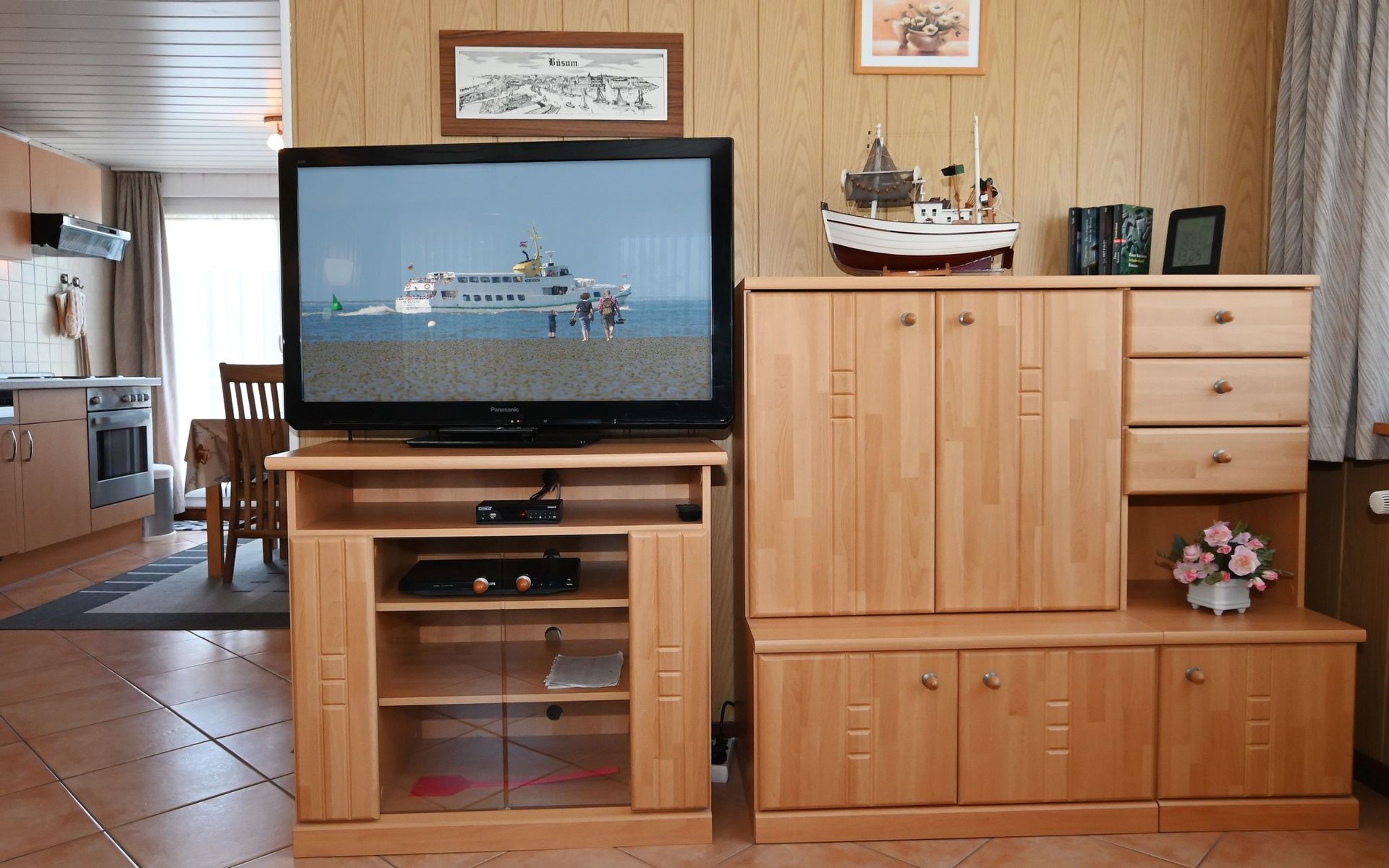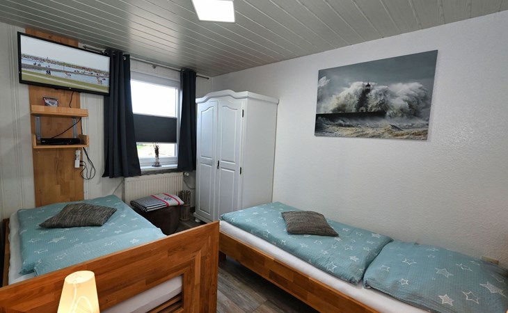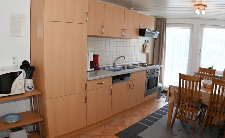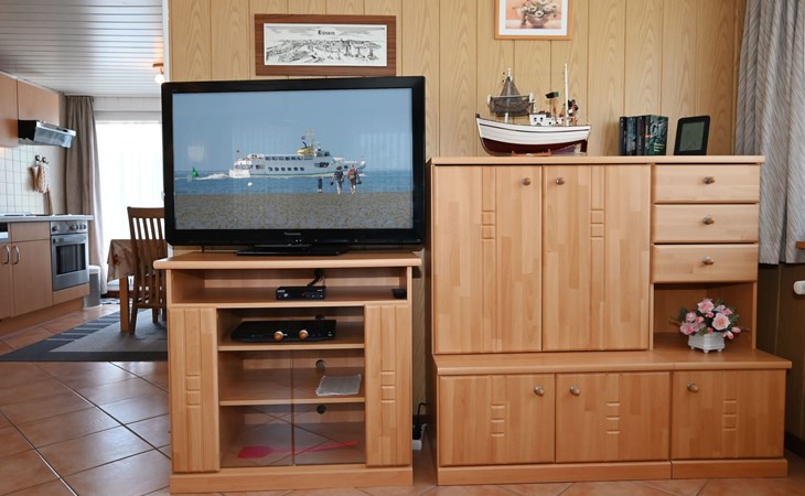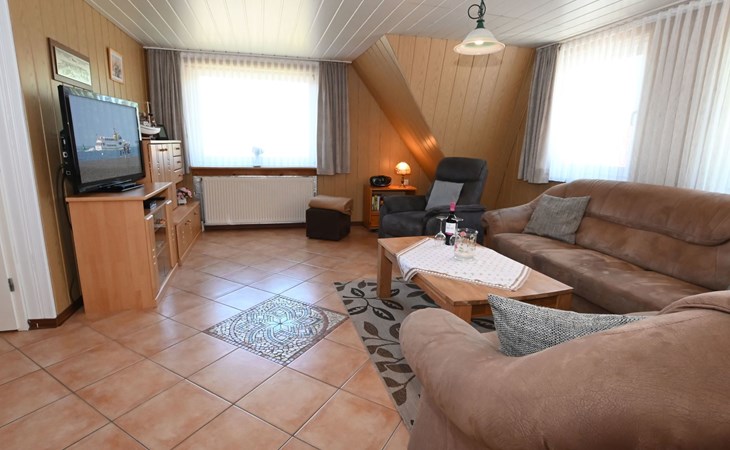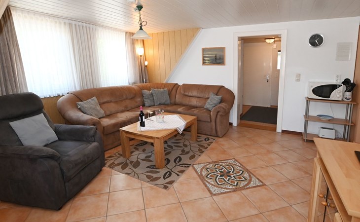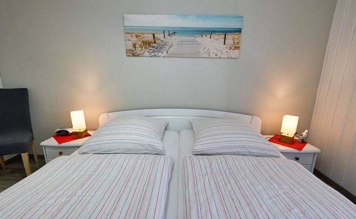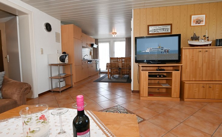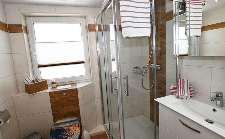 Our holiday flat is located in the centre of Büsum. Here you live very centrally, cosily and comfortably. The beach, pedestrian zone, harbour, shopping facilities and town centre are all within easy walking distance. In the house Karin are: 2 holiday flats and two permanent flats. Our non-smoking 3-room 58 m² holiday flat on the first floor has been lovingly furnished in a contemporary, bright, allergy-friendly style and with every comfort. Floors are tiled or covered with laminate. Our holiday flat has a west-facing balcony.The non-smoking holiday flat Haus Karin 02 is located on the 1st floor holiday flat and is about 58 m² in size it has the following rooms: A living room with kitchenette and a corner couch, coffee table, stool, 1x recliner, 1x stool floor lamp, 42 inch flat screen TV, sideboard and weather station radio CD player floor covered with tiles, hoover. A fully equipped kitchen with 4 ring hob, oven, dishwasher, kettle, toaster, egg cooker, Senseo, microwave, crockery, saucepans, coffee machine, fridge with 3*** freezer compartment, blender, table with 4x chairs, tiled floor. Next to it is a bedroom with 2 single beds 2.00x0.90m wide comfort slatted rose, 2x bedside tables with cloth lamps, wardrobe, chair, (satellite TV with DVD and Playstation 3 . Flooring was laid with laminate. 2 bedrooms with double bed 2.00m x 2.00m wide with comfort slatted bed frame, 2x bedside tables, cloth lamps, wardrobe, mirror, stool, laminate flooring. Bathroom with shower, mirror cabinet with vanity unit, washbasin, scales, hairdryer, stool, make-up mirror, standing toilet. Hallway with wardrobe, tiled floor. We have free W-Lan for you for failures and disturbances we assume no liability.The west-facing balcony is equipped with garden furniture 4x chairs 2x tables, parasol. In 15 m distance is still a garden house with table football, table with 4 chairs and a grill ca.40m² races for common use available. there is no possibility to charge an electric car for this the house current is not designed fire hazard.Car parking space directly at the house, bicycles can be locked in the garage.The distance to the beach is about 900m. The beach is accessible via good paths, so that e.g. a pram or handcart can be taken along. The town centre with restaurants and supermarkets is approx. 800m away. Approx. 15 minutes walk