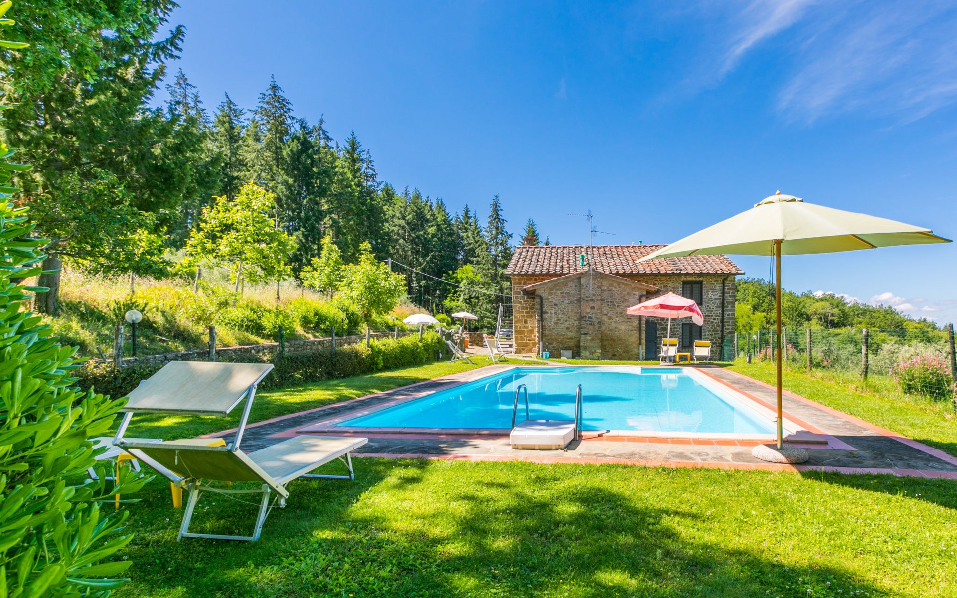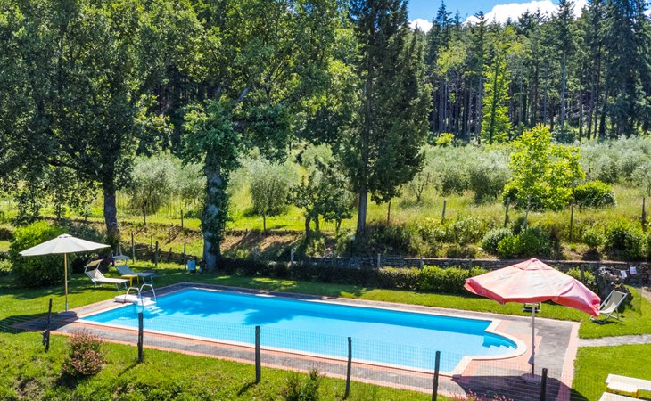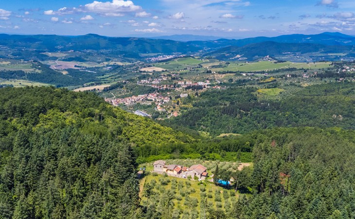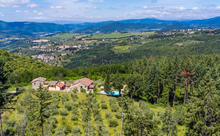 Zeer panoramisch gelegen boven de vallei, 's nachts zijn zelfs de lichten van Florence zichtbaar. Elke 30 minuten vertrekt een trein naar Florence vanuit Pontassieve, waar ook een gratis parkeerterrein is. Het zwembad is omheind, ideaal voor families. Alle appartementen beschikken over een buitenruimte met terrasmeubelen in de tuin. In het eerste gebouw wonen de eigenaren en in het tweede zijn 4 zelfstandige appartementen gerealiseerd. De gebouwen staan midden op een stenen plein, omringd door een bos met sparren en kastanje- en pijnbomen. Hier bevinden zich talrijke wandel- en fietspaden (mountainbike). Zeer oud landhuis "Certina", 510 m boven zeeniveau, gerenoveerd, omgeven door bomen. 13 km van het centrum van Pontassieve, 30 km van het centrum van Firenze, rustige, verhoogde ligging op een heuvel, te midden van groen. Voor medegebruik: terrein 33 ha, tuin, openluchtzwembad omheind (6 x 12 m, 130 - 160 cm diepte, seizoensgebonden beschikbaarheid: 06.Mei. - 23.Sep.) met trap. Buitendouche, barbecue. Voor alleengebruik: terras, tuinmeubelen. In het huis: centrale verwarming, wasmachine (voor medegebruik), Verwarming ter plaatse te betalen, verwarming alleen beschikbaar van 01.Nov. - 07.Apr.. Wissel van linnengoed 1 maal per week. Schoonmaak op verzoek (extra). Toegangsweg tot aan het huis (1 km onverharde weg). Parkeerplaats bij het huis. Winkel 5 km, restaurant 7 km, bushalte 4.7 km, treinstation "Pontassieve" 13 km.