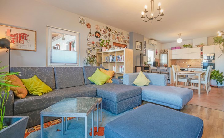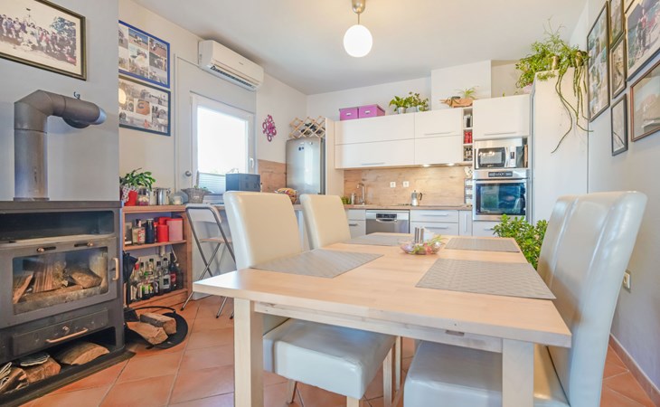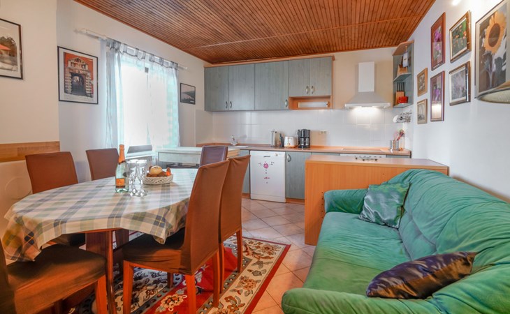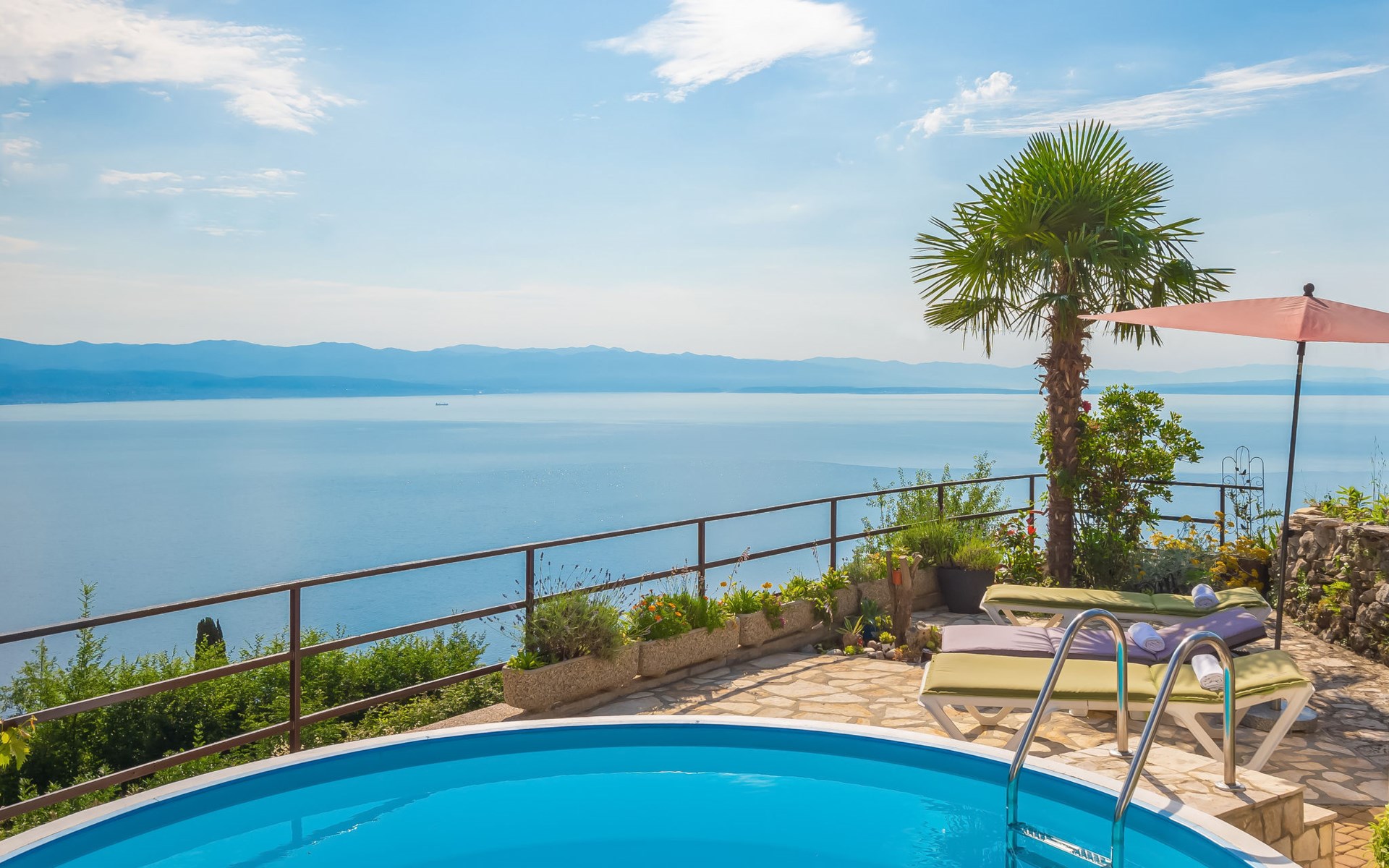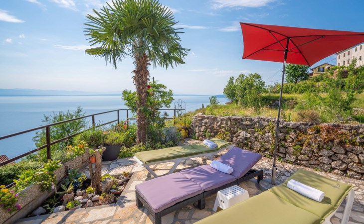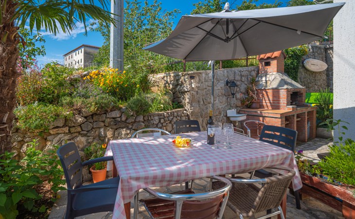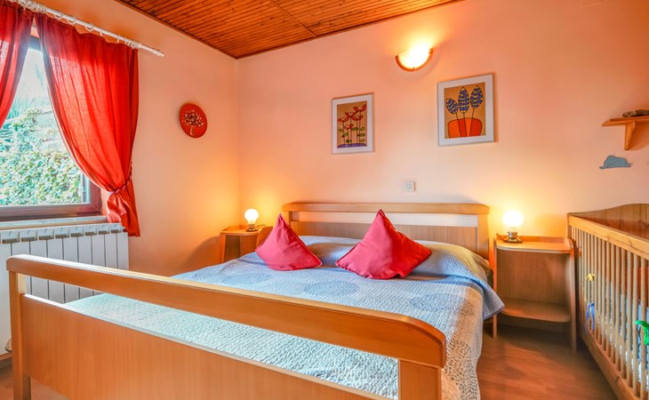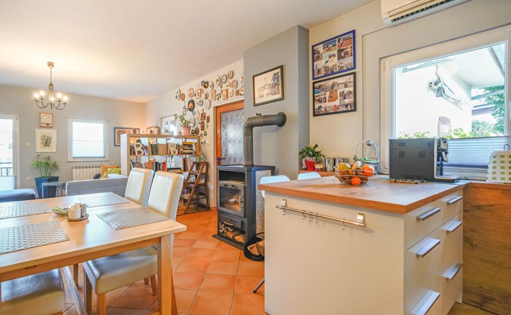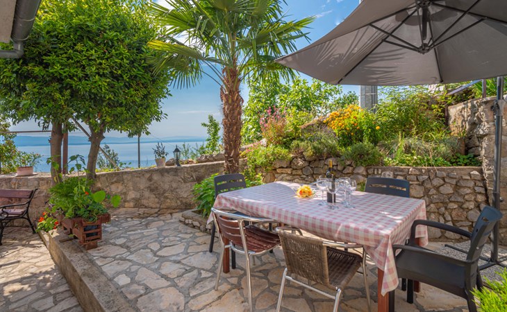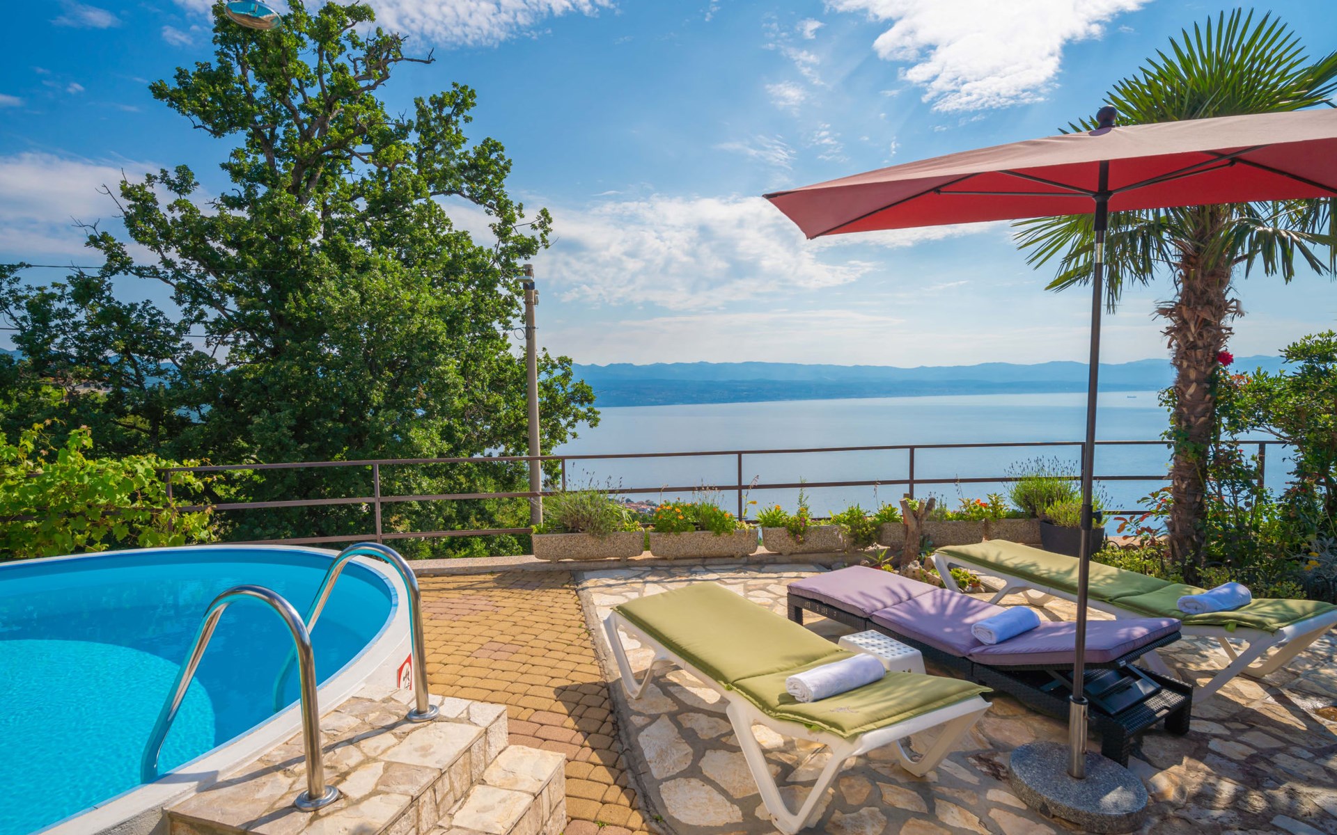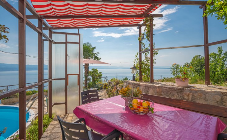 Tuliševica 5 km van Lovran: Gezellige twee onder één kap woning "Villa More". Boven Lovran, in het gehucht Tuliševica, 8 km van het centrum van Opatija, rustige, zonnige ligging tegen een helling, 6 km van zee, 6 km van het strand, te midden van groen, op het zuiden. Voor alleengebruik: openluchtzwembad rond (4 m diameter, 120 cm diepte, seizoensgebonden beschikbaarheid: 01.Mei. - 15.Okt.). Basketbal, volleybal, terras (21 m2), tuinmeubelen, barbecue, kinderspeelplaats (glijbaan, schommel). In het huis: internetaansluiting. Overdekte parkeerplaats (voor 3 auto's) bij het huis op het terrein. Winkel 500 m, supermarkt 5 km, restaurant 1 km, bushalte 350 m, kiezelstrand 6 km, stenenstrand 6 km, rotsstrand 6 km, overdekt zwembad 6 km, strandbad 6 km. Tennis 6 km.