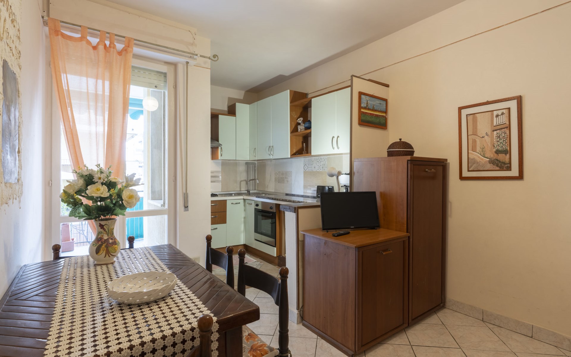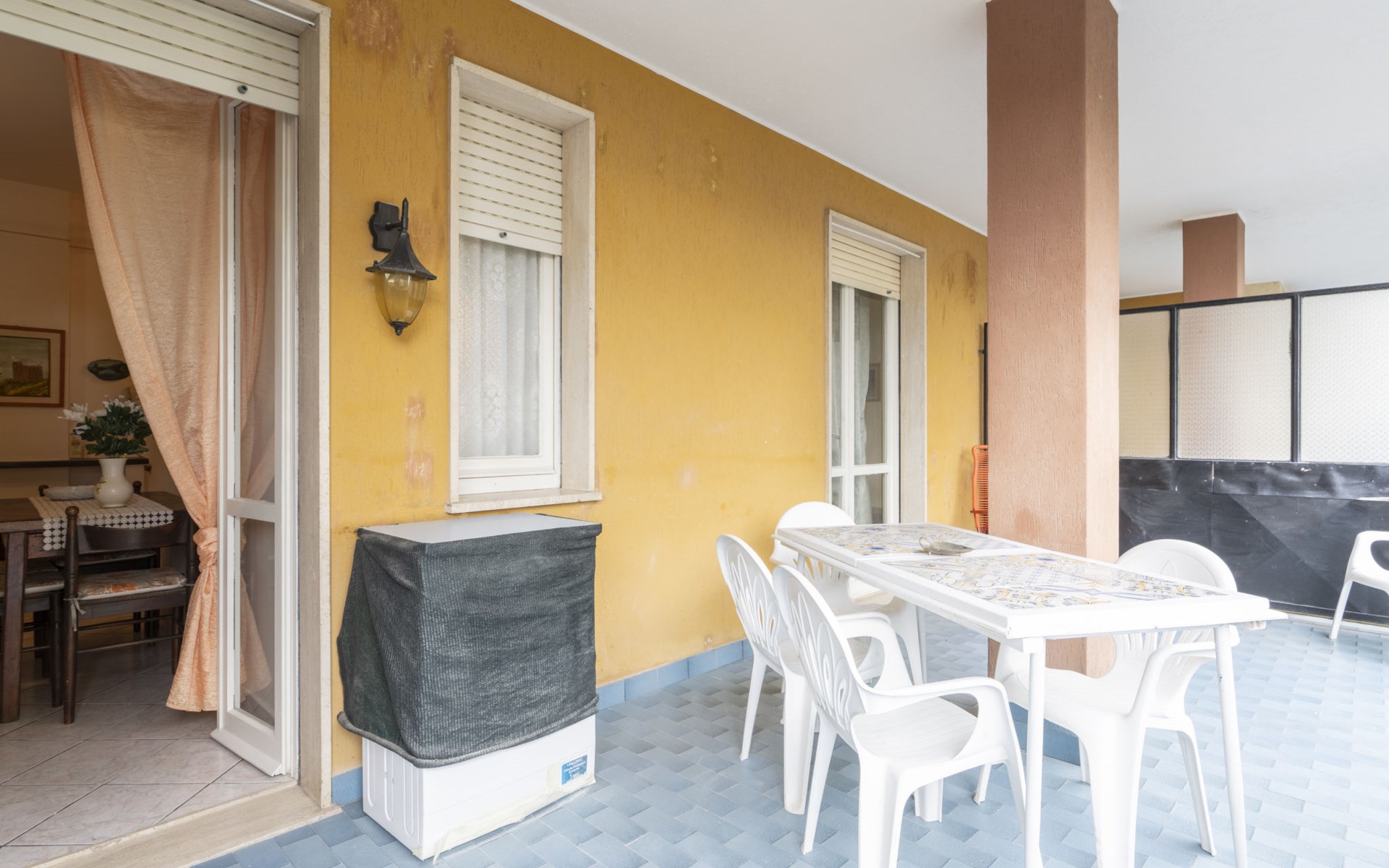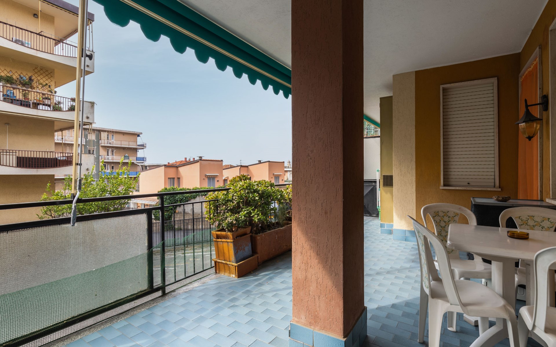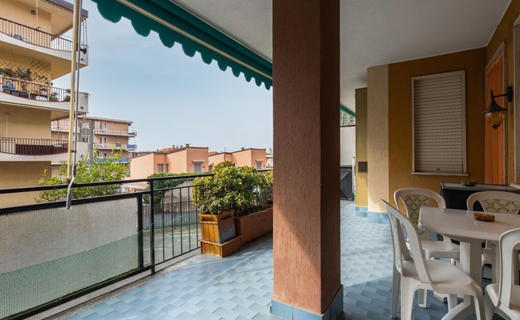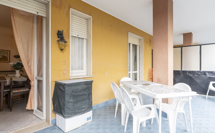 Groot flatgebouw van 4 verdiepingen. 32 appartementen in de woning. 300 m van het centrum van Santo Stefano al Mare, 1 km van het centrum van Riva Ligure, 11 km van het centrum van San Remo, drukke ligging in een woonwijk, 800 m van zee. In het huis: lift. Winkel 300 m, supermarkt, restaurant, bar, café, voetgangersgebied 300 m, bushalte 100 m, treinstation "Arma di Taggia" 4 km, zandstrand "Santo Stefano al Mare" 800 m. Fietspad 600 m. Gesloten residentie met een elektrische deur. Hoofdstraat 25 m van het huis.