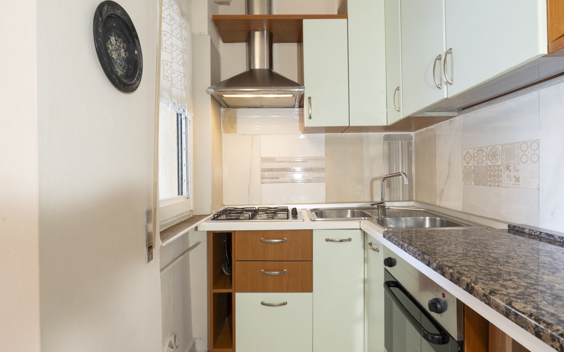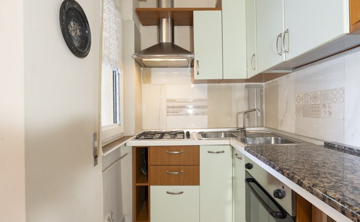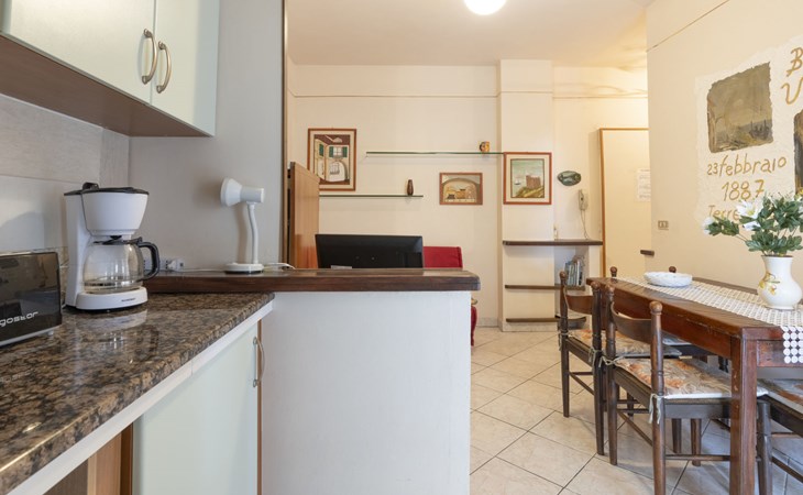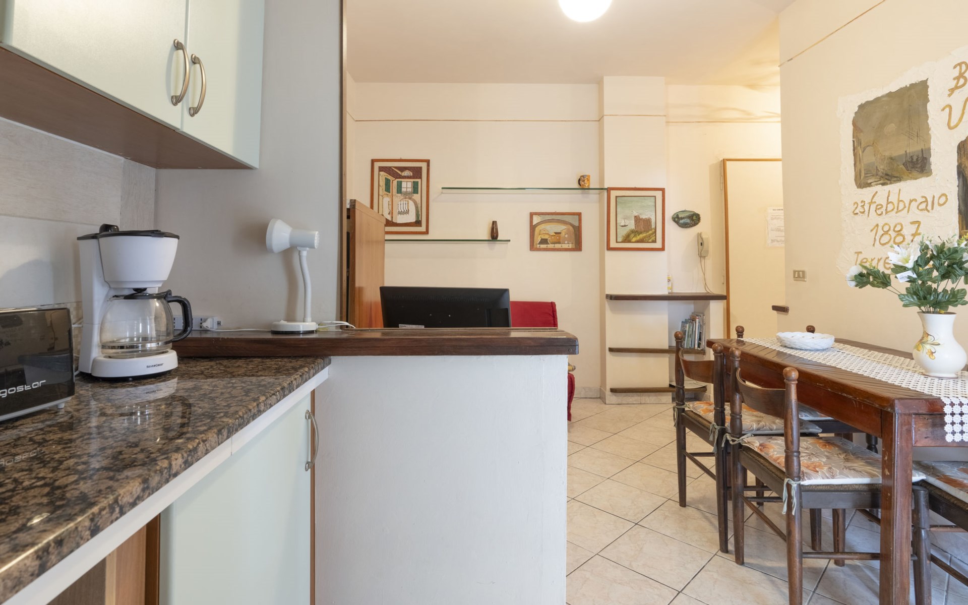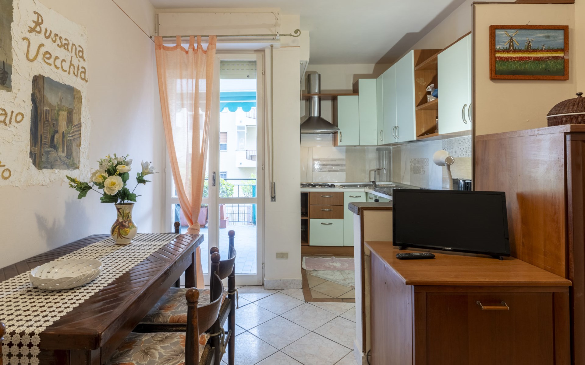 Groot flatgebouw van 4 verdiepingen. 32 appartementen in de woning. 300 m van het centrum van Santo Stefano al Mare, 1 km van het centrum van Riva Ligure, 11 km van het centrum van San Remo, drukke ligging in een woonwijk, 800 m van zee. In het huis: lift. Winkel 300 m, supermarkt, restaurant, bar, café, voetgangersgebied 300 m, bushalte 100 m, treinstation "Arma di Taggia" 4 km, zandstrand "Santo Stefano al Mare" 800 m. Fietspad 600 m. Gesloten residentie met een elektrische deur. Hoofdstraat 25 m van het huis.