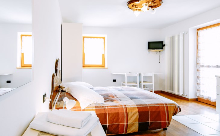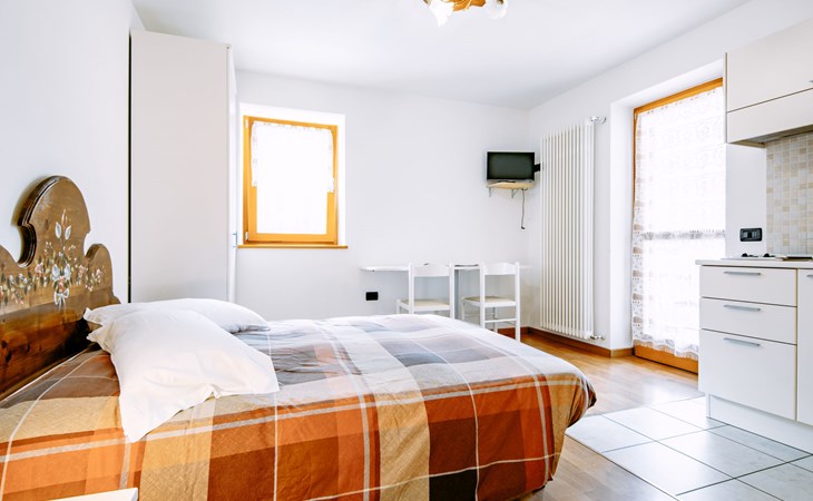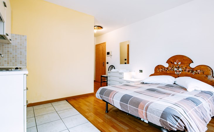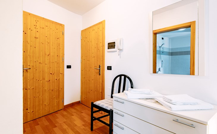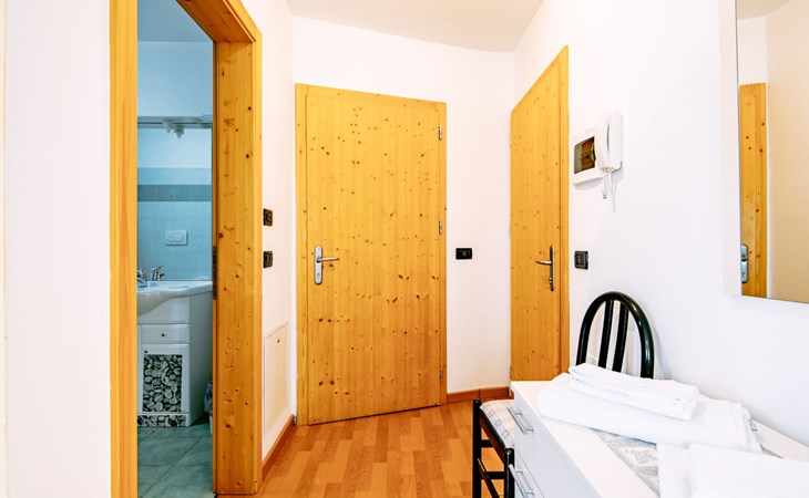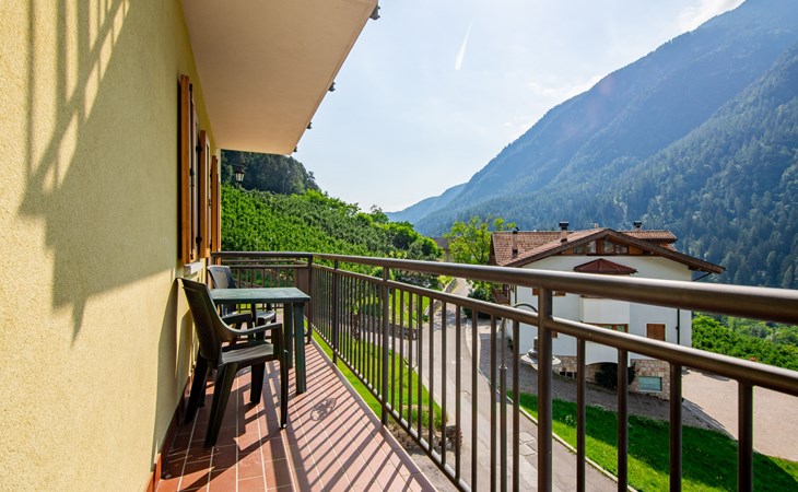 Val di Sole: Kleine, comfortabele residentie "Al Pescatore", van 3 verdiepingen, omgeven door bomen en velden. 15 appartementen in de woning. In het gehucht Tozzaga, 4 km van het centrum van Caldes, 7 km van het centrum van Malè, rustige ligging tegen een helling. Voor medegebruik: tuin, openluchtzwembad, overdekt zwembad verwarmd (4 x 10 m, 130 cm diepte, seizoensgebonden beschikbaarheid: 01.Jun. - 15.Sep. openingstijden zwembad: 10:00-19:00). Terras, tuinmeubelen. In het complex: restaurant, bar, Internet (WiFi), sauna, stoombad, solarium, hot tub, berging voor ski's, centrale verwarming. Trappenweg naar het huis. Parkeerplaats (beperkt aantal) bij het huis, gemeenschappelijke garage (extra) bij het huis. Winkel, restaurant 50 m, bushalte 100 m, treinstation "Tozzaga" 500 m, park "Parco Nazionale dello Stelvio" 28 km. Skipisten 15 km. Attracties in de buurt: Folgarida 19 km, Marilleva 25 km, Trento 50 km, Merano 58 km. Bekende meren kunnen gemakkelijk worden bereikt: Lago di Garda (Riva Del Garda) 87 km. De eigenaar woont op hetzelfde terrein. Spoorweg 100 m van het huis.