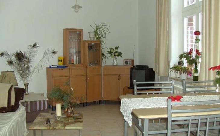 Pure peace and relaxation Our small village of Roddan is now only a neighbourhood, but it survives. The village is located near the forest, in the Elbe/Brandenburg River Biosphere Reserve with many opportunities to observe nature. The district of Prignitz offers an extensive network of cycle paths - and after only a few kilometres by bike you can reach the Havel estuary in Saxony-Anhalt for further excursions into nature and water sports. Our house is located in the old village centre, opposite the church on a residential street.The house, courtyard, garden and outbuildings of the former farm are completely fenced in, the residential road has hardly any traffic, opposite the house is a small park with a children's playground and table tennis table. Guests can get garden furniture, set up a barbecue, inflate the pool for a small child, play ball, badminton, etc. as required.In our large listed house you actually live in 2 separate flats, which are connected by a common staircase: Upper floor 2 persons, flat with balcony; mezzanine floor 3 persons, flat with conservatory. The flats are internally without thresholds, but there are steps to negotiate at the entrance. There is a cot in the 2nd bedroom of the ground floor flat - an extra bed is possible. If you take apart the bed in the "children's room" on the ground floor, in addition to the children's bed there are 2 low beds, each 90x200, so also suitable for older children - if necessary for adults. Our house is therefore suitable for families or friends travelling together who want to be together, but also have their own separate accommodation. You will find 2 bathrooms and 2 fully equipped kitchens to prepare your own meals. There are even other accommodation options in the house, which you can find out more about on request.Many of our guests come to Bad Wilsnack for spa treatments or to relax in the local Kristalltherme. The Prignitz, Havelland and Altmark regions in the immediate vicinity also offer a wealth of culture in addition to nature: from archaeological sites to many churches and museums, hands-on activities in old crafts, musical events, traditional village festivals, but also modern attractions such as climbing towers, a diving tower in Wittenberge - and much more! Come and discover a new holiday destination for yourself.The combination of 2 flats on offer has been certified with 4 stars by the German Tourism Association. The listed building (1898) has been carefully restored and modernised. The furnishing of the living rooms is partly modern, partly historically comfortable, in keeping with the character of the monument.