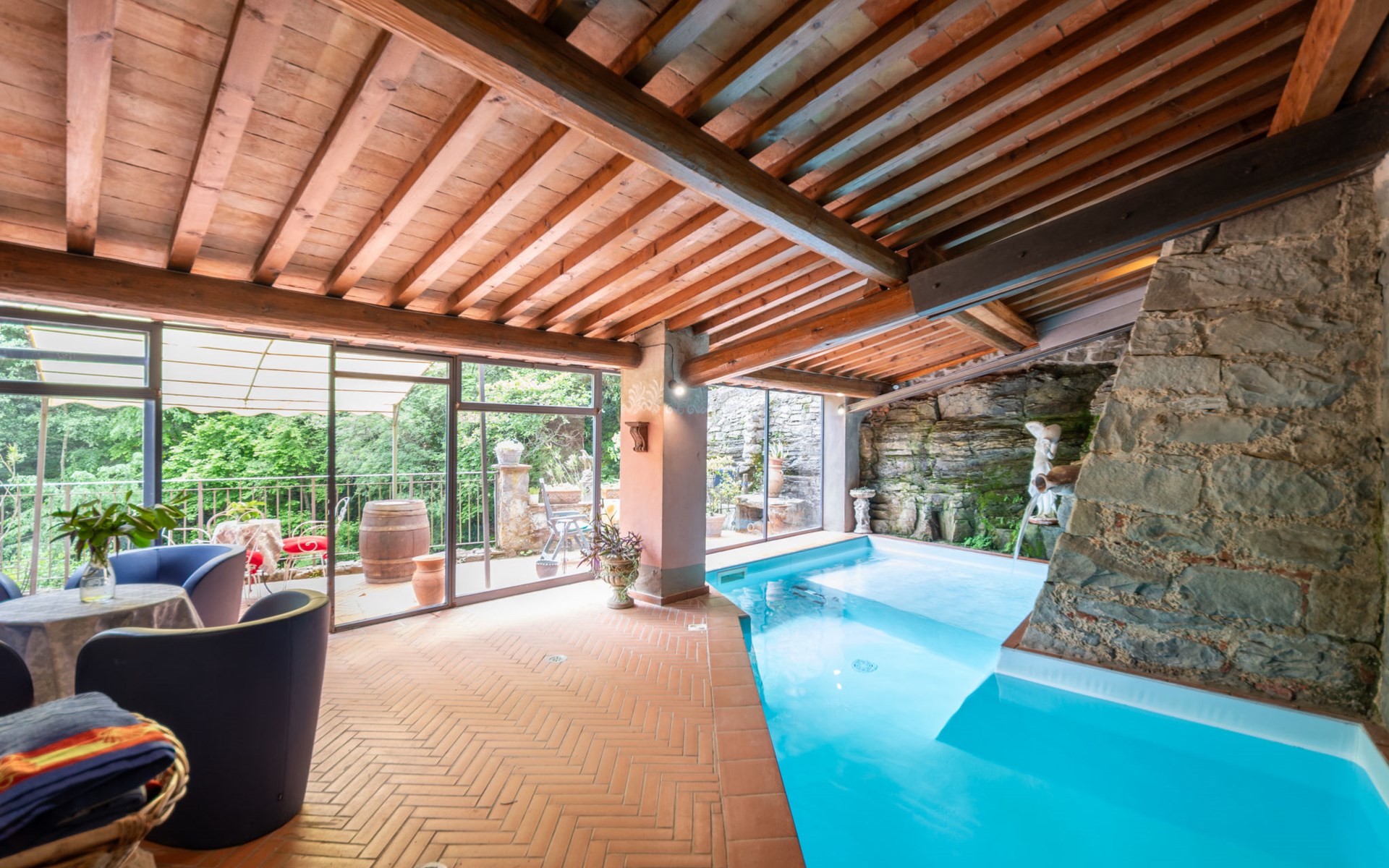 Deze oude molen uit de XVIe eeuw werd volledig gerenoveerd, met uitzicht op een waterval en een beekje. Vanaf het verwarmd en overdekt zwembad van 30 m2 (gehele jaar open) heeft men zicht op het oude molenrad. Men kan er zelfs in koudere periodes zwemmen. Via een wandeling van 1 km door het bos komt u in Loro Ciuffenna. Ideaal voor wandel-/ tracking-/ en mountainbiketochten. Op aanvraag kan men boogschiet- en relaxatielessen volgen. De mate van rust is afhankelijk van het geluid van de waterval. Molen "Il Mulinaccio". 3 appartementen in de woning. 1 km van het centrum van Loro Ciuffenna, 28 km van het centrum van Arezzo, 30 km van het centrum van Siena. Voor medegebruik: terrein (omheind), tuin, overdekt zwembad verwarmd (50 - 135 cm diepte, seizoensgebonden beschikbaarheid: 01.Jan. - 31.Dec.) met trap. Onregelmatig zwembad. Tuinmeubelen, barbecue. In het huis: Internet (WiFi), centrale verwarming, wasmachine (voor medegebruik), Verwarming ter plaatse te betalen, verwarming alleen beschikbaar van 01.Nov. - 15.Apr.. Wissel van linnengoed 1 maal per week. Schoonmaak op verzoek (extra). Kok op verzoek (extra). Parkeerplaats bij het huis. Levensmiddelenwinkel 1.5 km, restaurant 2 km, bushalte 2.5 km, treinstation "Montevarchi" 12 km. Tennis 12 km. Attracties in de buurt: Castelfranco di Sopra 19 km, Reggello 24 km, Arezzo 31 km, Abbazia di Vallombrosa 35 km, Bibbiena, Greve in Chianti 41 km, Monte San Savino 50 km.