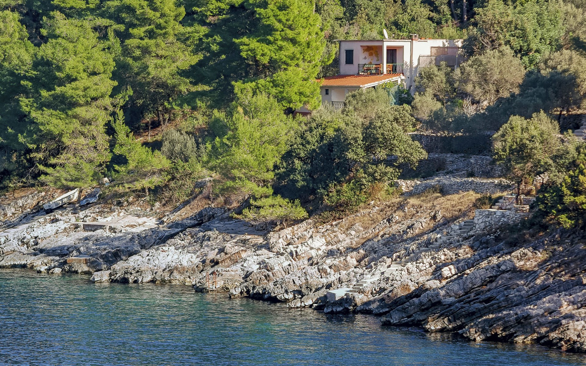 Črnja Luka 3 km van Prigradica: Huis met 2 woningen "Dijana". Rustige, zonnige ligging, 20 m van zee, 20 m van het strand. Voor medegebruik: terrein 300 m2 (omheind). Tuinmeubelen, barbecue. In het huis: internetaansluiting. Parkeerplaats bij het huis op het terrein. Winkel 4 km, restaurant 3 km, bushalte 6.1 km, veerboot 8 km, rotsstrand, betonnen strand 20 m. Tennis 8 km, wandelroutes 3 km vanaf het huis, fietspad 3 km. Privé aanlegsteiger voor een boot, op aanvraag.