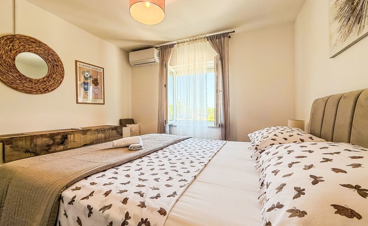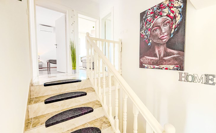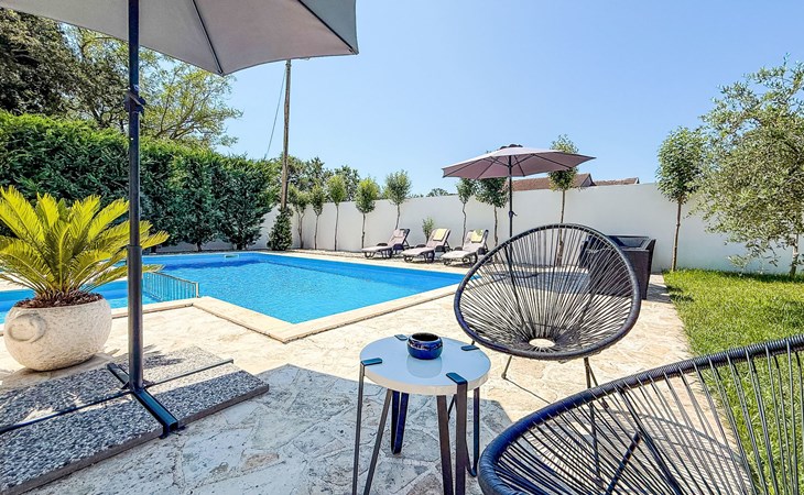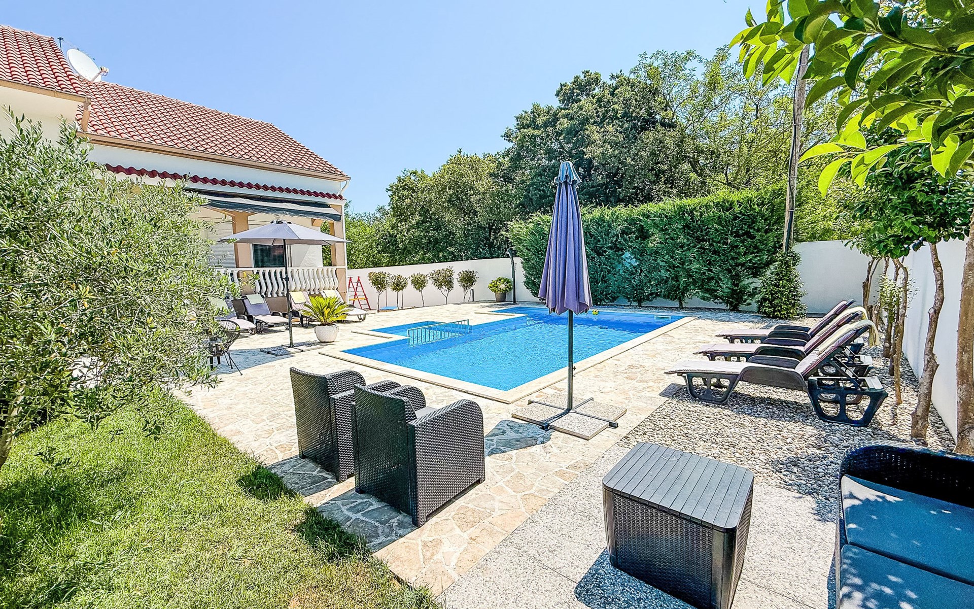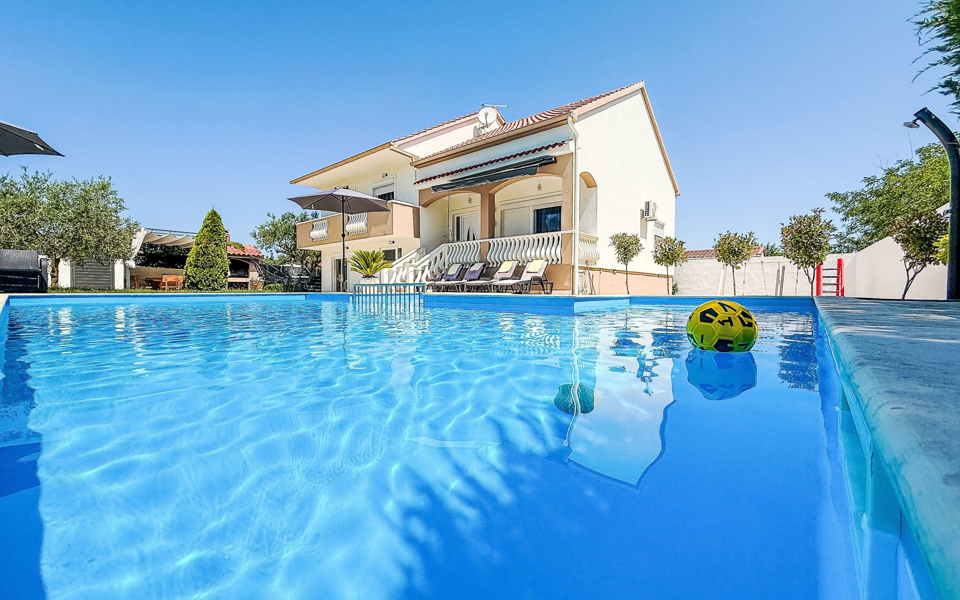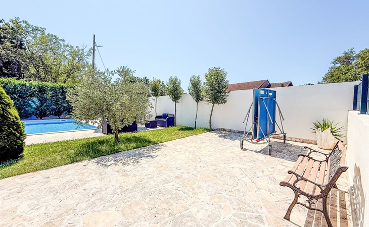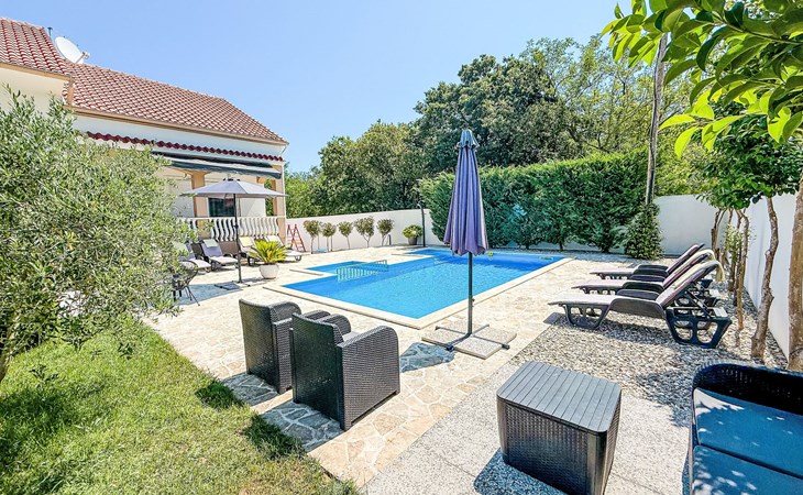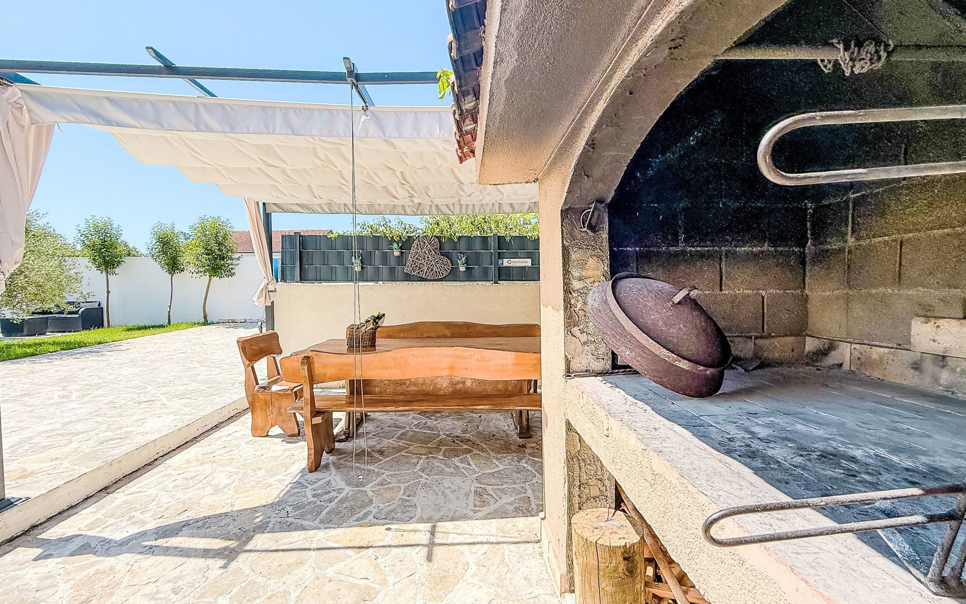 Briševo 11 km van Zadar: Eengezinswoning "Tina & Tino", van 3 verdiepingen. Zonnige ligging, 11 km van zee, aan een weg. Voor alleengebruik: terrein 1.300 m2 (omheind), openluchtzwembad hoekig (8 x 4 m, 140 cm diepte, seizoensgebonden beschikbaarheid: 02.Mei. - 26.Sep.) met trap. Buitendouche, tuinmeubelen, barbecue. In het huis: internetaansluiting, wasmachine. Parkeerplaats (voor 3 auto's) bij het huis op het terrein. Winkel 500 m, restaurant 2.3 km, bushalte 4 km, kiezelstrand 11 km. Tennis 15 km. Attracties in de buurt: Aquapark 15 km.