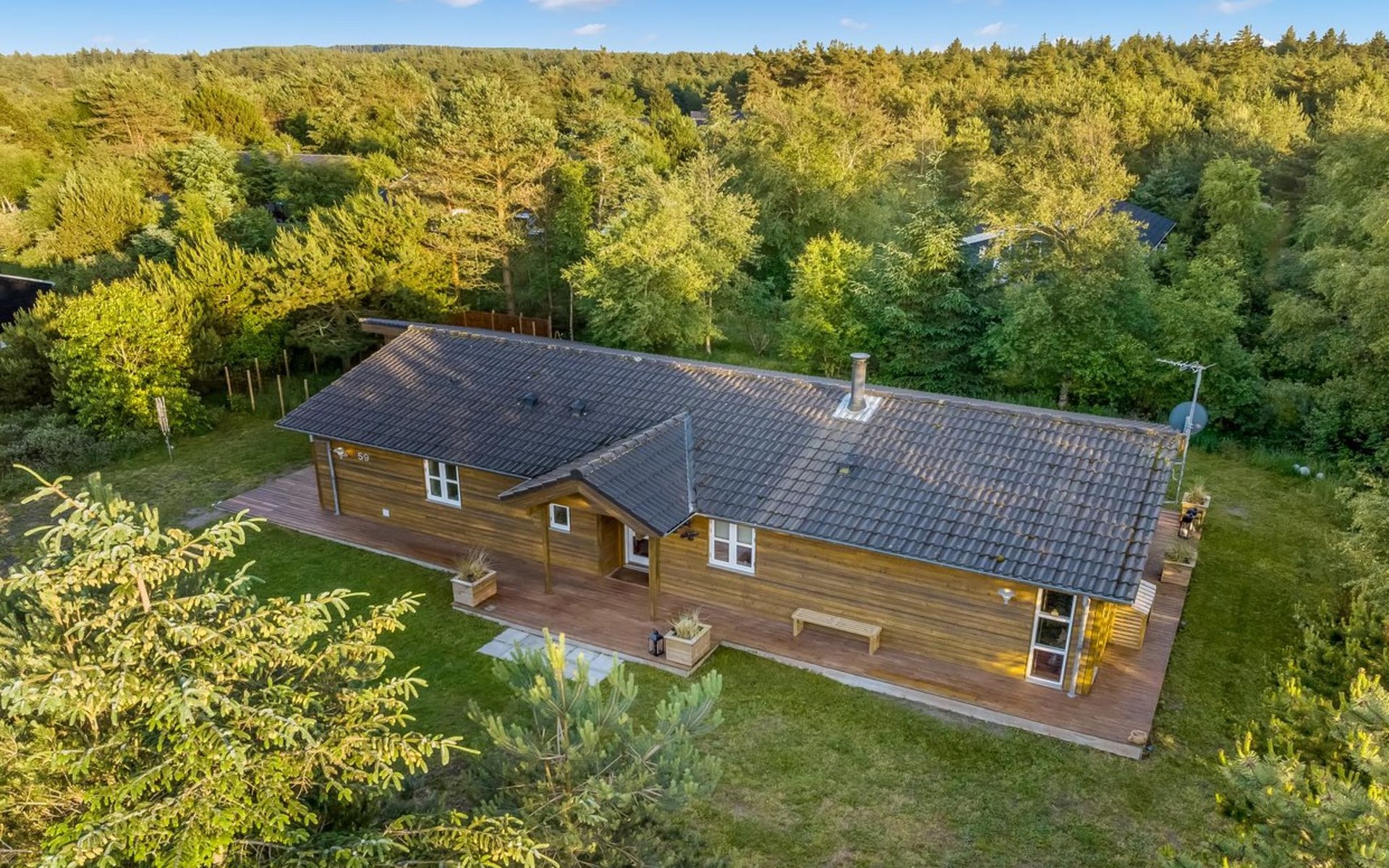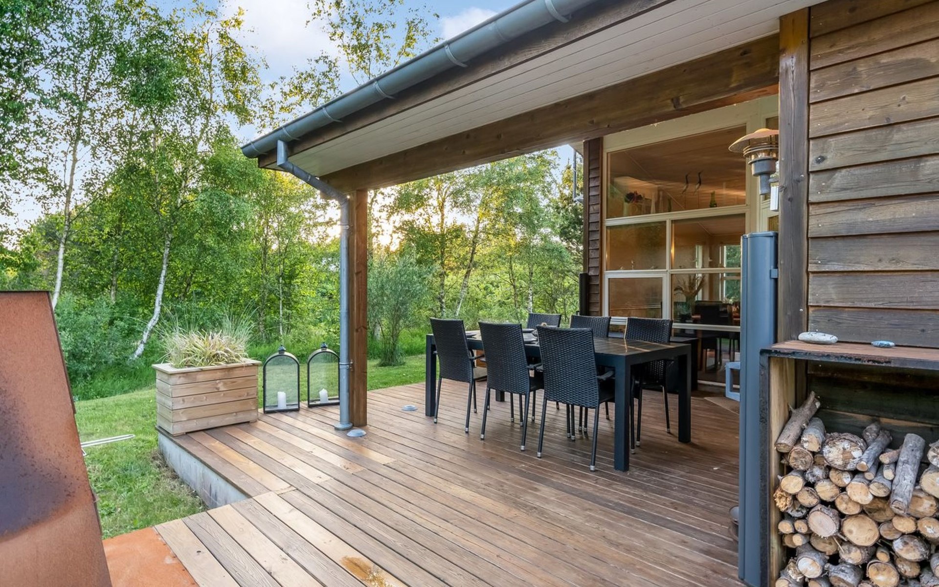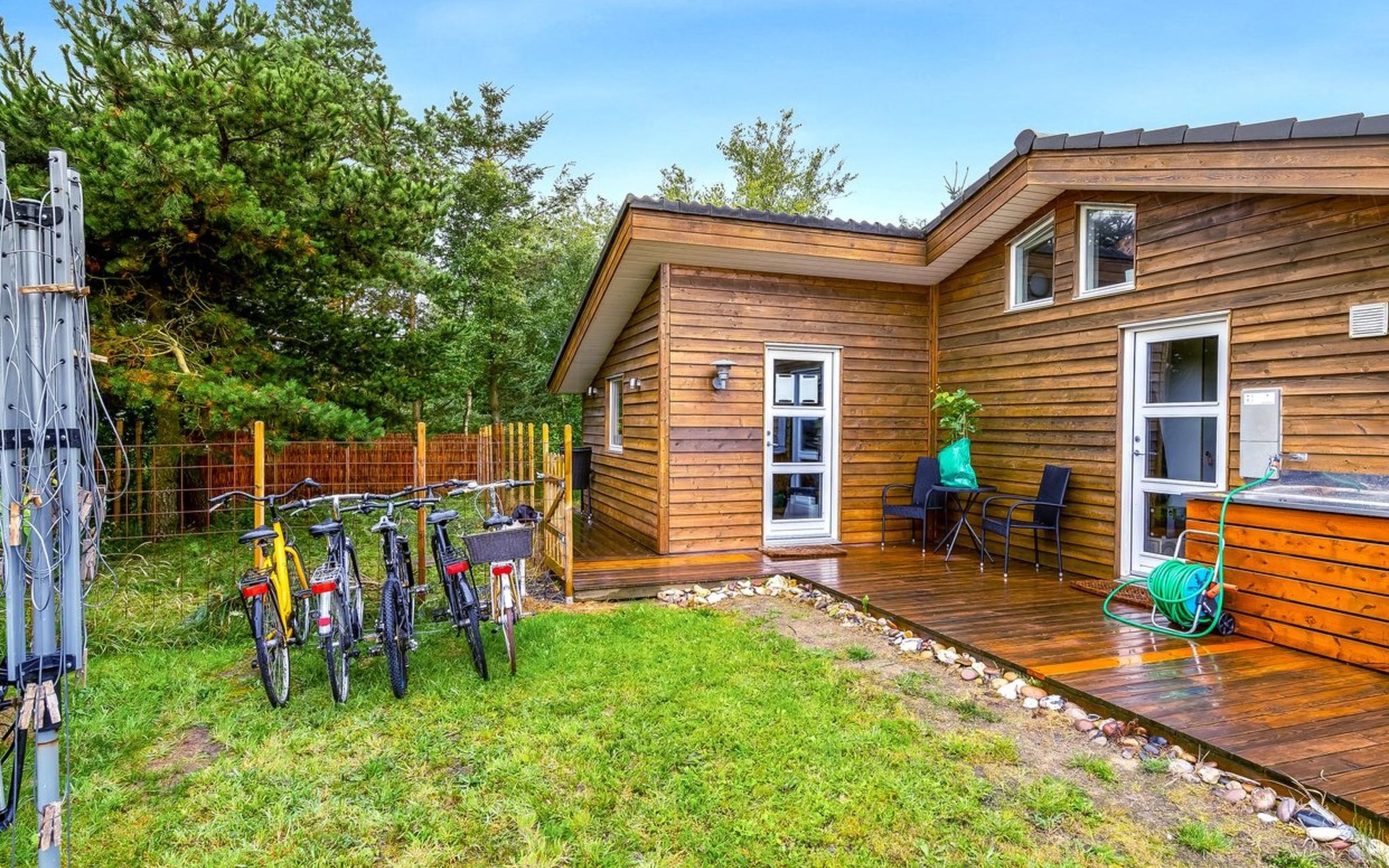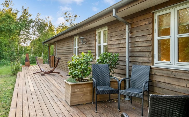 Eengezinswoning, bouwjaar 2004. 1 km van zee. Voor alleengebruik: wild terrein 1.147 m2. Barbecue, stookplaats. In het huis: sauna, wasmachine, droger. Parkeerplaats bij het huis. Levensmiddelenwinkel 5 km. Golfterrein 7.7 km. De eigenaar accepteert geen jeugdgroepen.