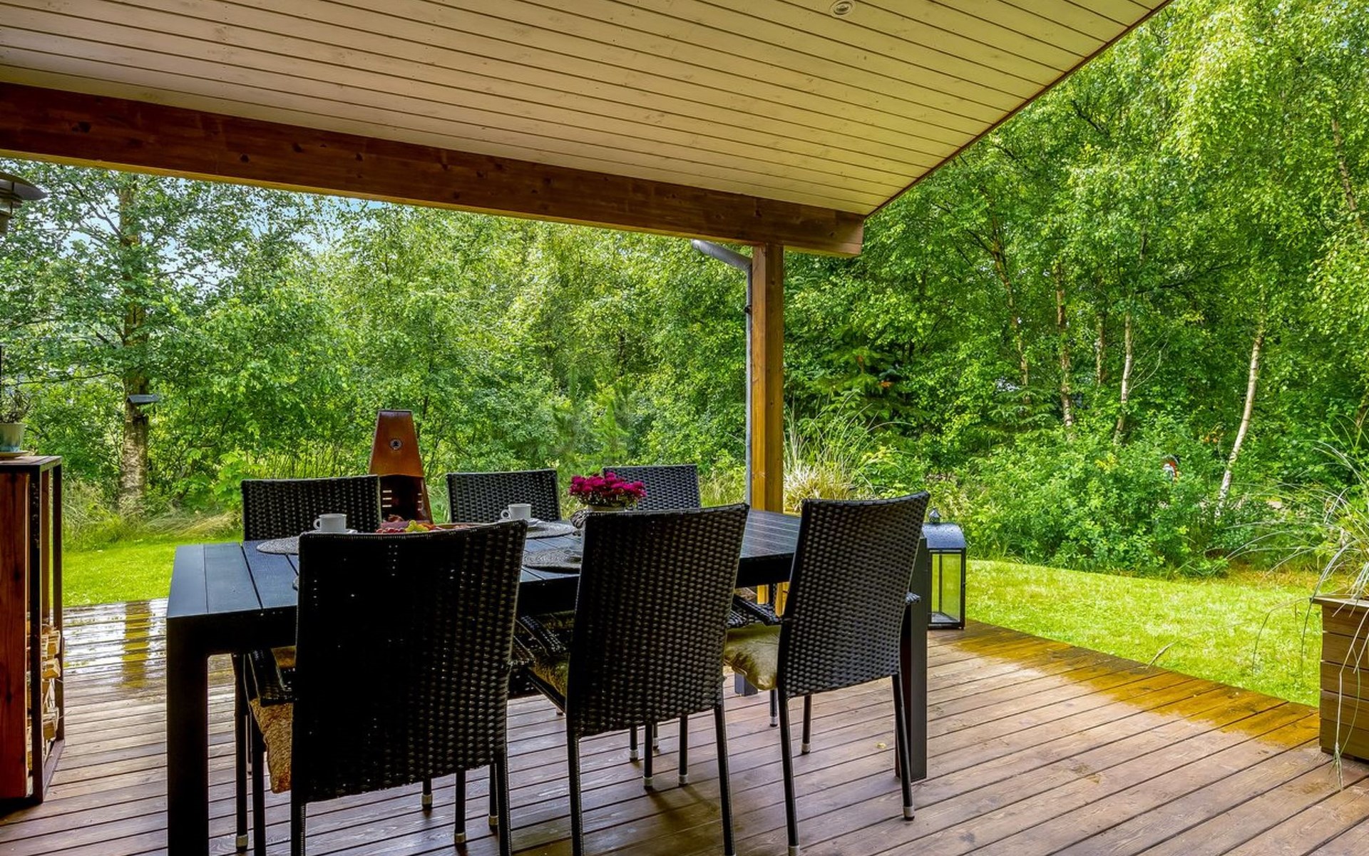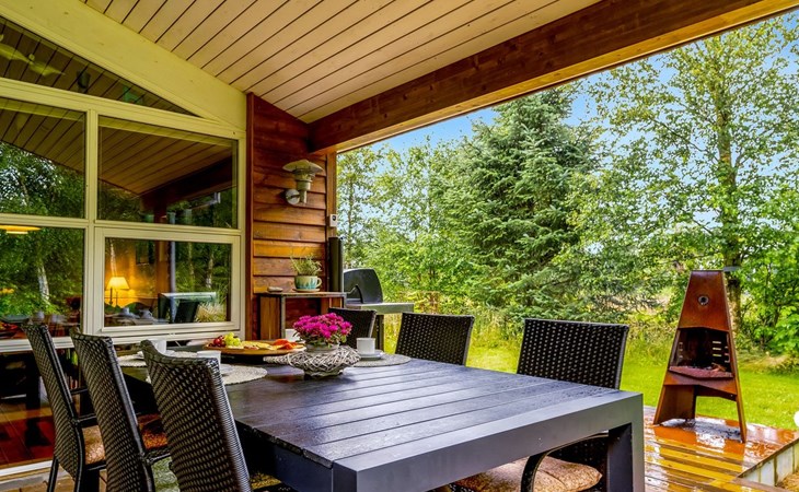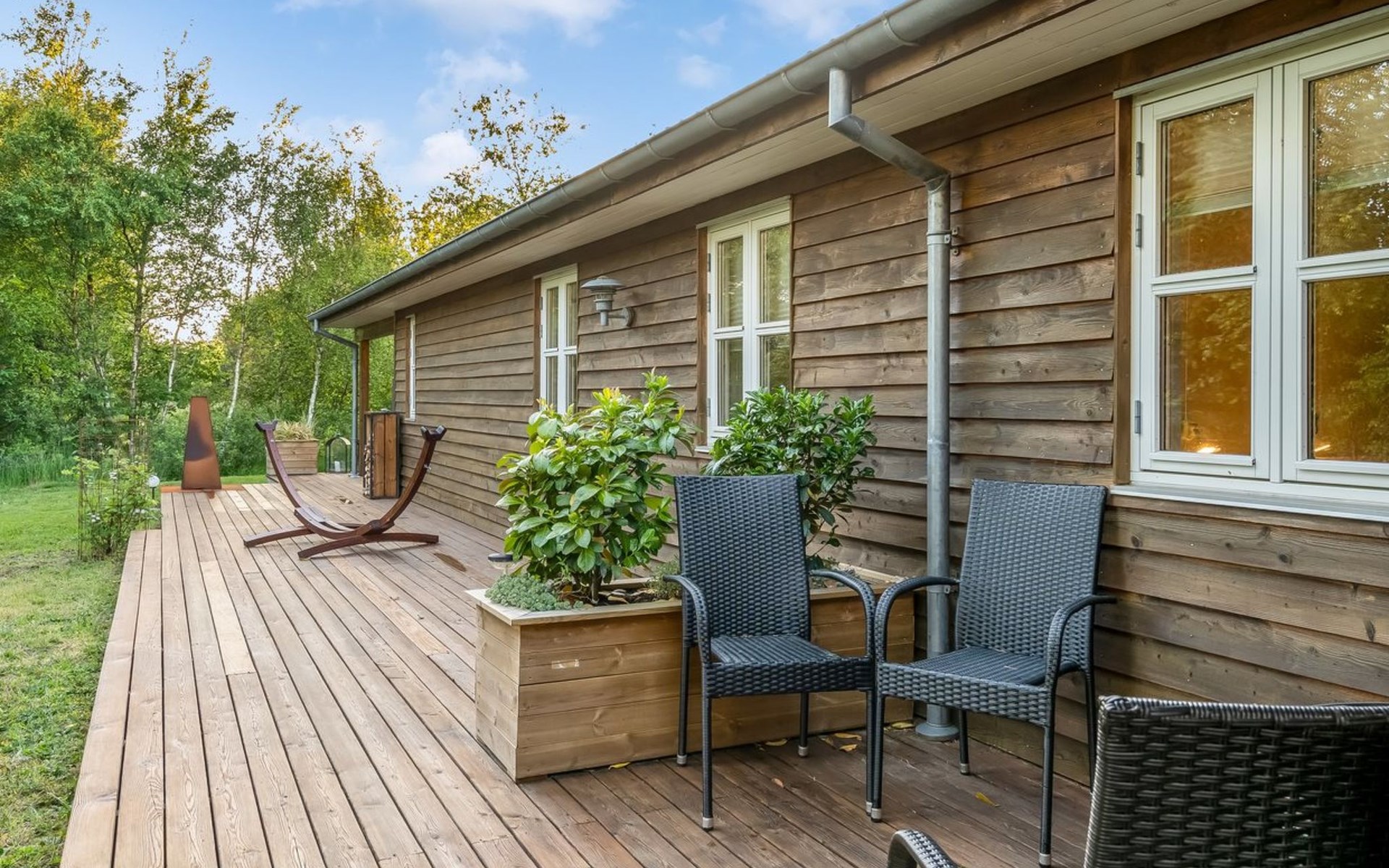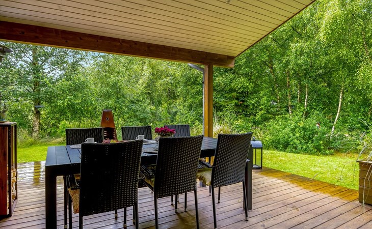 Eengezinswoning, bouwjaar 2004. 1 km van zee. Voor alleengebruik: wild terrein 1.147 m2. Barbecue, stookplaats. In het huis: sauna, wasmachine, droger. Parkeerplaats bij het huis. Levensmiddelenwinkel 5 km. Golfterrein 7.7 km. De eigenaar accepteert geen jeugdgroepen.