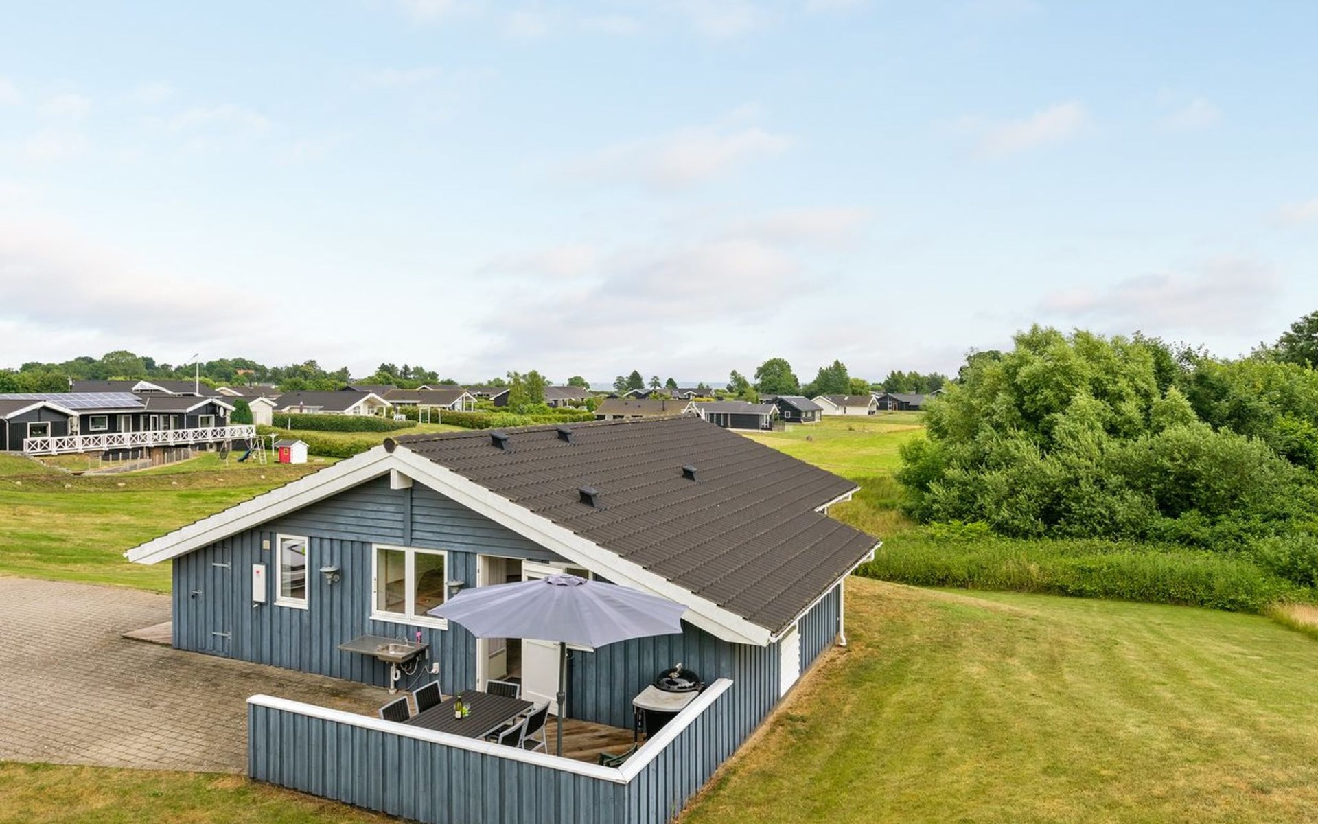 Eengezinswoning, bouwjaar 2010. 600 m van zee. Voor alleengebruik: terrein 1.200 m2, verzorgde tuin. Terras (45 m2), barbecue. In het huis: sauna, wasmachine. Parkeerplaats bij het huis. Levensmiddelenwinkel 4 km. De eigenaar accepteert geen jeugdgroepen.