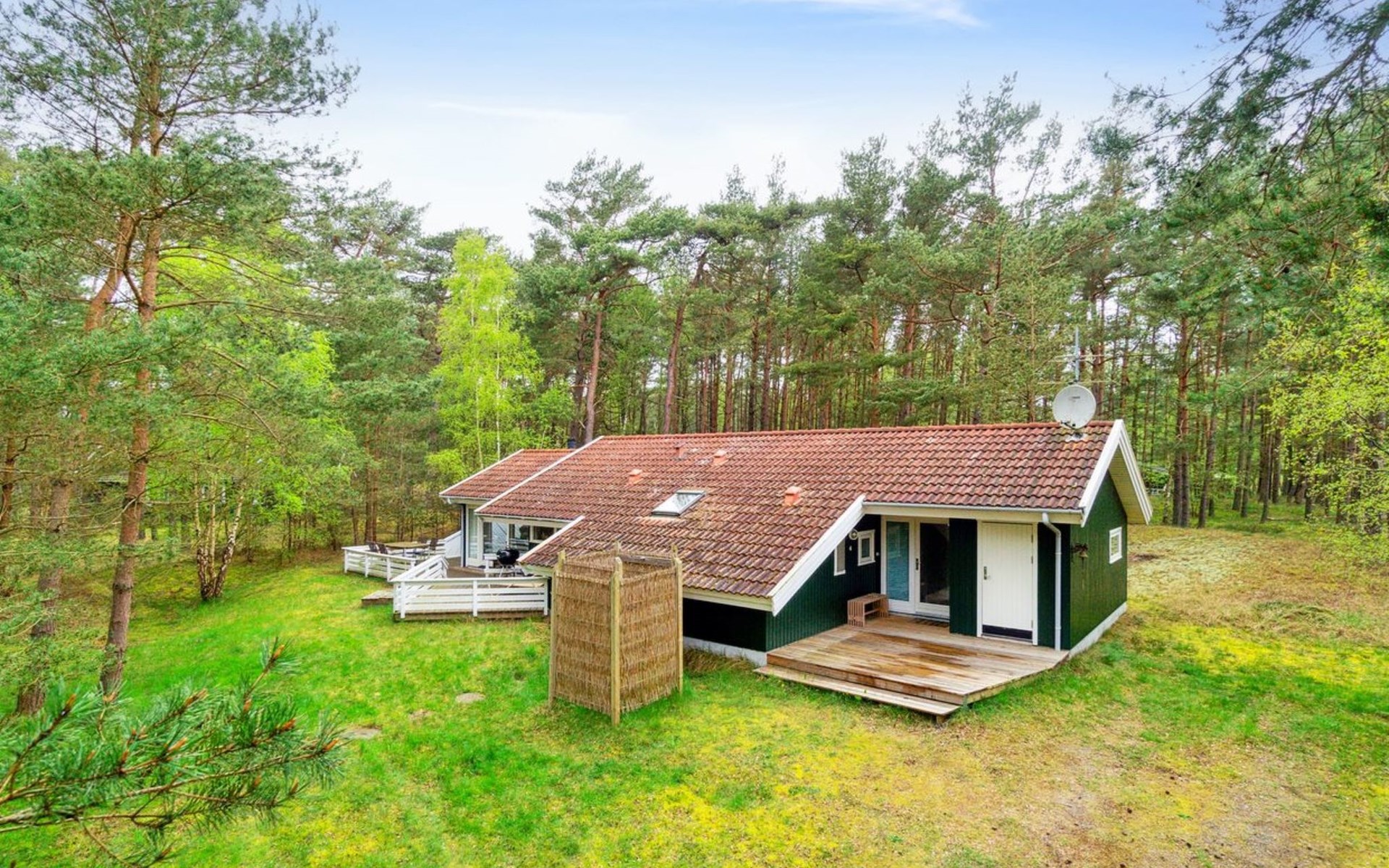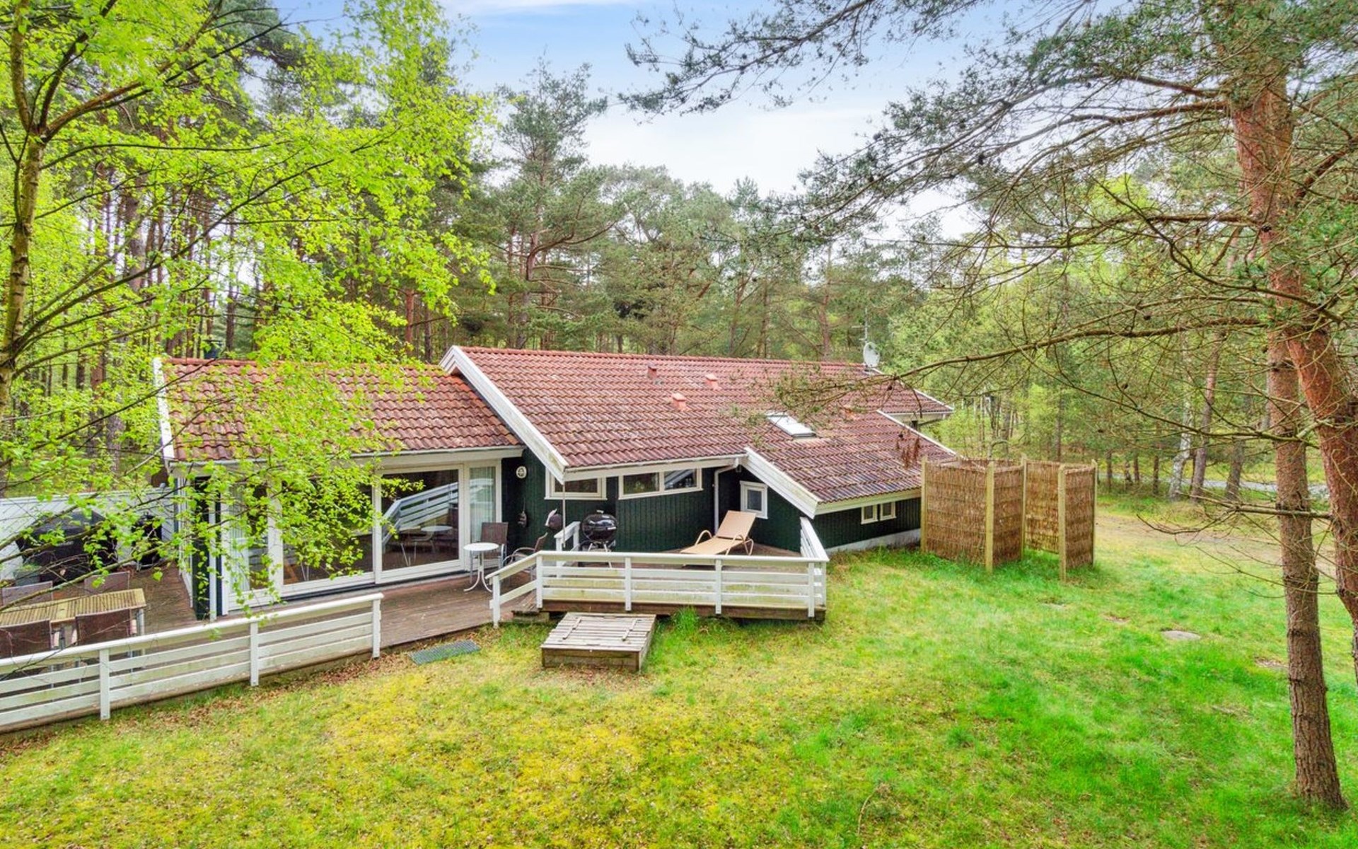 Eengezinswoning, bouwjaar 1998. 500 m van zee. Voor alleengebruik: wild terrein 2.450 m2. Barbecue. In het huis: sauna, wasmachine, droger. Parkeerplaats bij het huis. Levensmiddelenwinkel 4 km. Golfterrein 4 km. De eigenaar accepteert geen jeugdgroepen.