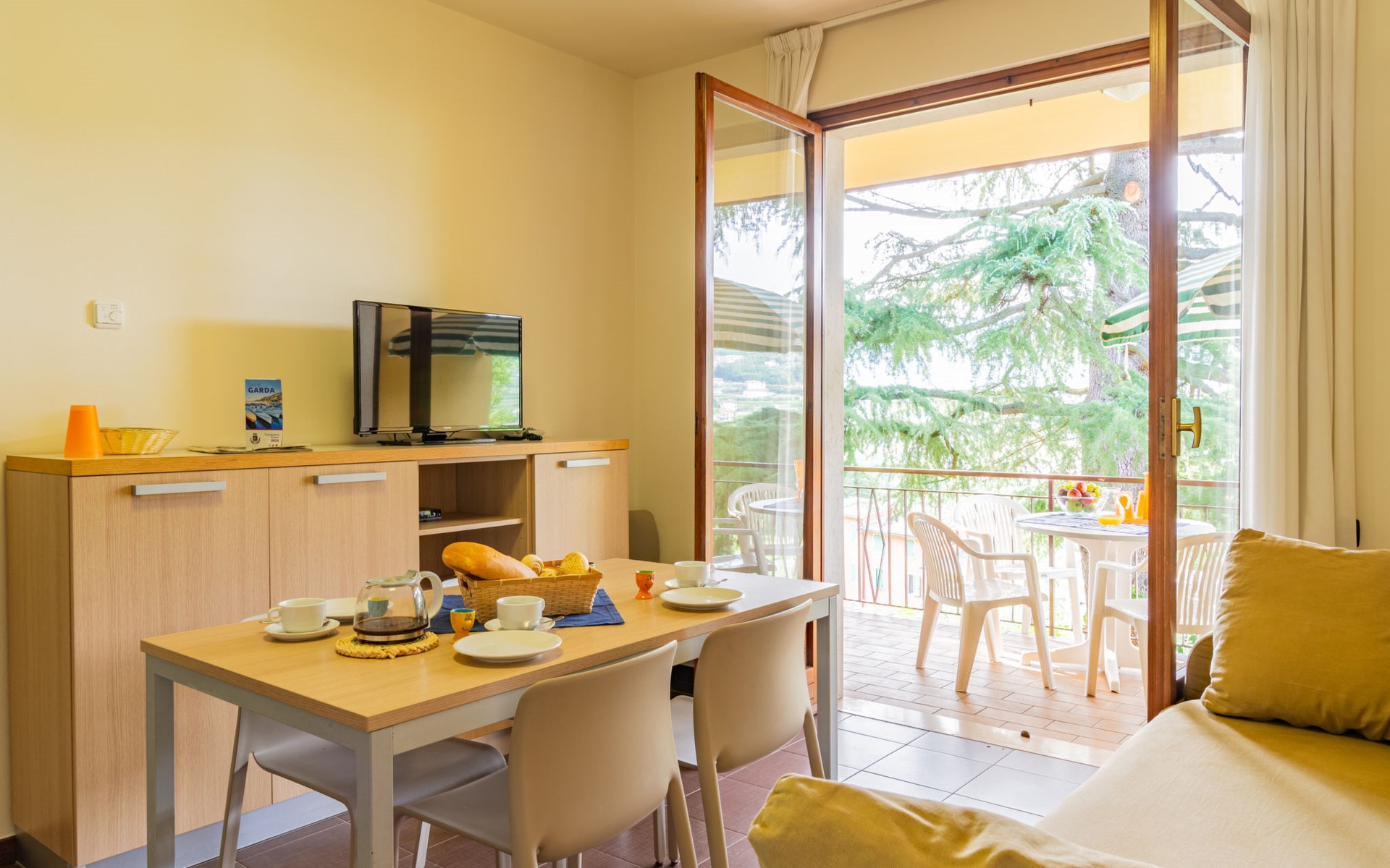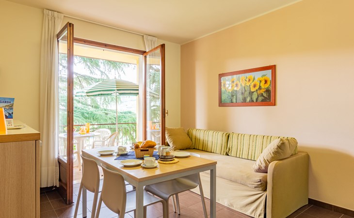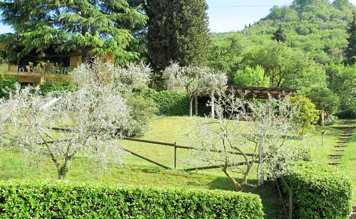 Residentie "Corte Camaldoli". 20 appartementen in de woning. Aan de rand van de plaats, 1.2 km van het centrum van Garda, tegen een helling, 1.5 km van het meer. Voor medegebruik: terrein 14.000 m2, verzorgde tuin op verschillende niveaus met gazon en bomen, openluchtzwembad (20 x 10 m, seizoensgebonden beschikbaarheid: 01.Apr. - 30.Okt.). WC bij het zwembad, buitendouche, beachvolleybal, patio, prieel, tuinmeubelen, barbecue, kinderspeelplaats. In het complex: receptie, salon met TV, internetaansluiting, Internet (WiFi), fitnessruimte, tafeltennis, tafelvoetbal, bergruimte voor fietsen, wasmachine (voor medegebruik), Verwarming ter plaatse te betalen, fietsverhuur. Broodjesservice. Parkeerplaats op het terrein. Bushalte 20 m, kiezelstrand 1.5 km. Golfterrein (18 holes) 5 km. Attracties in de buurt: Peschiera del Garda 29 km, Malcesine 30 km, Verona 38 km. Wandelgebied Monte Baldo 30 km. De eigenaar accepteert geen jeugdgroepen. Gesloten residentie met een elektrische deur. Airconditioning alleen beschikbaar van begin juni tot midden september.
