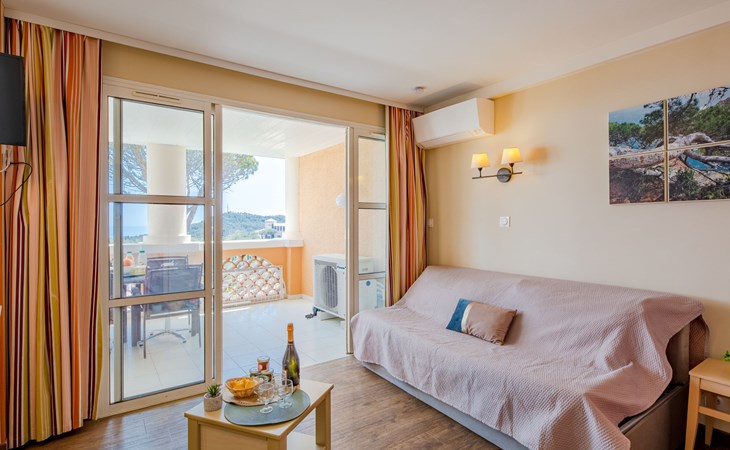 Groot vakantiecomplex "Village Cap Estérel - L'Esquinade", bouwjaar 1990. Aan de rand van de plaats, 2 km van het centrum van Agay, tegen een helling, in een woonwijk, 900 m van zee, 900 m van het strand, de straat oversteken, aan de golfbaan, in een voetgangerszone. Voor medegebruik: park 210 ha, 5 zwembaden (seizoensgebonden beschikbaarheid: 06.Apr. - 03.Nov.). Kinderzwembad, jeu de boules, kinderspeelplaats (glijbaan, schommel). In het complex: spa centrum (extra), winkel, wasserette (extra). Oplaadstation. Winkel, levensmiddelenwinkel 500 m, supermarkt 6 km, restaurant, bakkerij, café, fietsverhuur 500 m, bushalte "Ligne 21" 300 m, station "Saint-Raphaël-Valescure - Agay" 9 km, zandstrand "Le Pourrousset" 800 m. Jachthaven 1 km, golfterrein (9 holes) 300 m, tennis 500 m. Attracties in de buurt: Anthéor 8 km, Saint-Raphaël 9 km, Fréjus 13 km, Cannes 33 km, Saint-Tropez 50 km, Nice 76 km. Bekende meren kunnen gemakkelijk worden bereikt: Lac Saint-Cassien. Wandelgebied Massif de l'Estérel. Autovrij vakantiepark, geen lift. Animatie in het hoogseizoen. Geschikt voor families, kinderopvang mogelijk in het hoogseizoen (extra). Bewaakt vakantiecomplex. De sleuteloverdracht vindt plaats bij het agentschap Interhome in Cap Estérel. De woning bevindt zich in een voor verkeer beperkte zone. Vergelijkbare accommodaties kunnen worden geboekt.