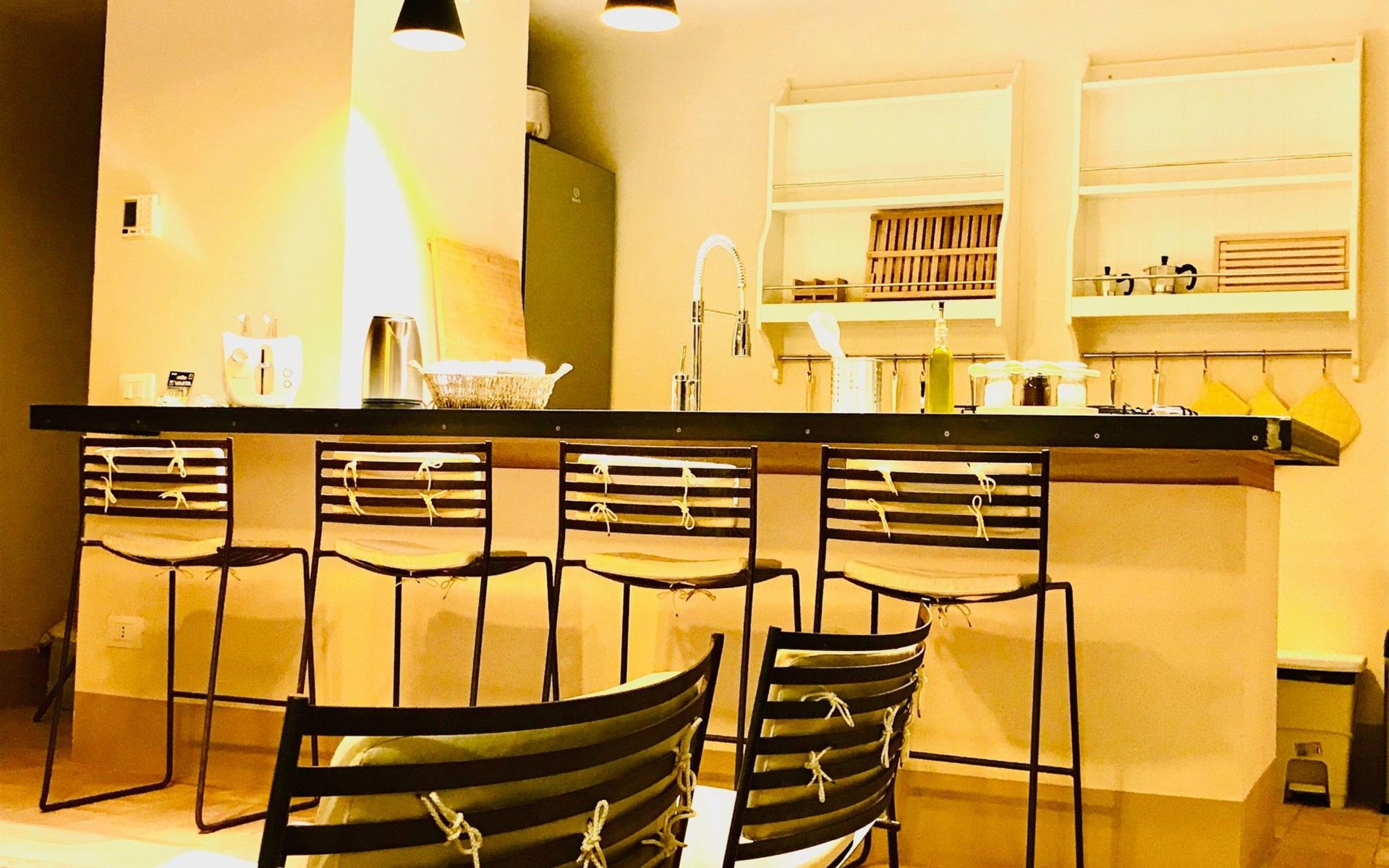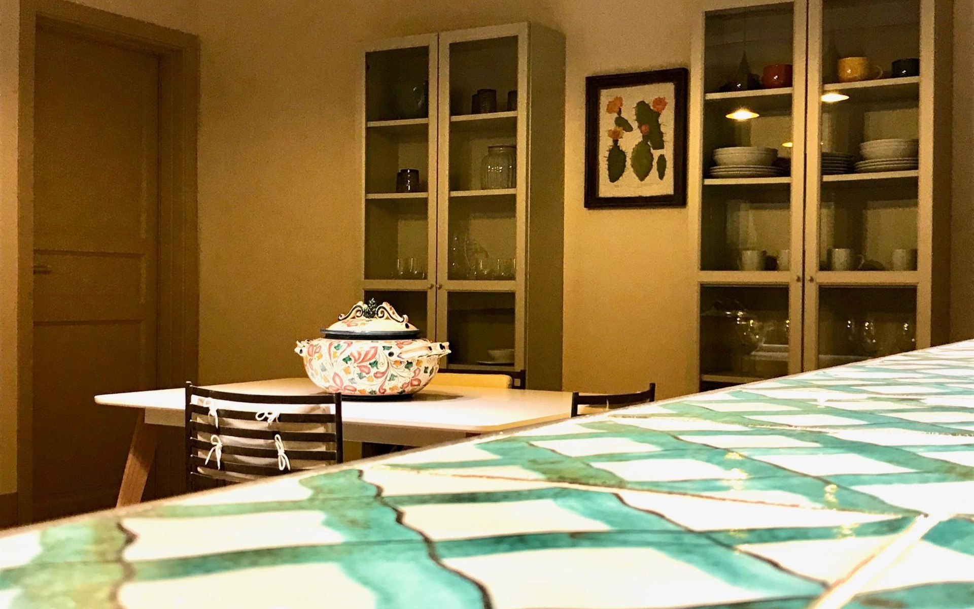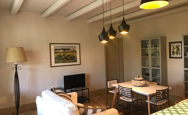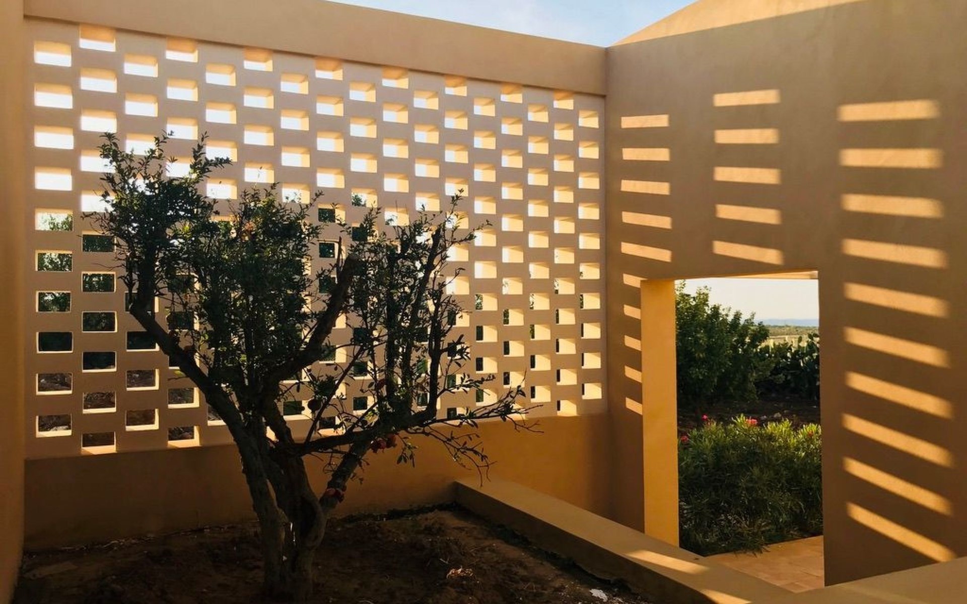 The Casa del Melograno is set in a vast flower garden, surrounded by vineyards, olive groves, orchards and other dense vegetation in a mutual contamination of Mediterranean colours, smells and flavours. It has its own private outdoor area, cosy and immersed in greenery. Two centuries-old carob trees mark the garden, from which there is a breathtaking view of the valley and the sea. The atmosphere is typically Mediterranean. A stay at the Casa del Melograno is a genuine Sicilian experience, where rurality and tradition guarantee a familiar and authentic welcome and hospitality. The possibility of spending pleasant moments of relaxation, enjoying private outdoor spaces, enriches this feeling of wellbeing, ease and intimacy. Outside, in their small gardens and verandas covered with reeds and bordered by palms, bougainvilleas, rose bushes and jasmine, guests can indulge in their moments of food and also enjoy the cool evenings that Sicily's temperate evening climate gives us. In addition to the spaces specifically belonging to the Pomegranate House, guests can also enjoy the Belvedere over the Menfi countryside, which merges to the south with the sea line, as well as the vegetable garden of Case Graffeo, set in a space bordered by a colourful hedge of prickly pears. The vegetables and greens, strictly organic, that the Graffeo family produces in this garden can be harvested directly by guests, who can then use them to prepare delicious dishes from the local culinary tradition.The Casa del Melograno in the Borgo di Case Graffeo is an ideal place to spend a pleasant natural and cultural holiday in western Sicily. From Menfi, by car and in some cases also by bicycle, in absolute relaxation and taking between 15 and 60 minutes, crossing gentle hills and admiring wonderful natural landscapes, it is possible to reach and visit numerous sites of historical and archaeological interest; to name but a few the Archaeological Park of Selinunte and Cave di Cusa - the most extensive evidence of Greek domination in Sicily -, the Greek Temple and Theatre of Segesta, the Oriented Nature Reserves of the Belice River and the Zingaro, the Scala dei Turchi the Greek Temple of Concordia and with it all the others that enrich and adorn the famous and marvellous Valley of the Temples in Agrigento - included since 1997 in the list of World Heritage Sites drawn up by UNESCO - and then Mazara del Vallo with the Museum that preserves its Dancing Satyr - an emblem of Mediterranean beauty, an example of the submerged cultural heritage recovered in the sea of Sicily - and the Salt Pans of Marsala, Erice and Trapani.In addition to the spaces specifically pertaining to the Casa del Melograno, which include a large, bright, reed-covered veranda on the ground floor, overlooking the Fruit Garden, guests can enjoy the Belvedere over the Menfi countryside that merges to the south with the sea line, as well as the vegetable garden of Case Graffeo, set in a space bordered by a colourful hedge of Prickly Pears; The vegetables and greens, strictly organic, which the Graffeo family produces in this garden, can be picked directly by the guests and processed by them for the preparation of delicious dishes of the local culinary tradition.The Casa del Melograno (Pomegranate House) is one in which the path to access it is studded with the scents and colours of Sicily and the influences that this region inherited from the Arabs in the past. A domination that began in 867 A.D. and lasted for about two centuries. One is immersed in a courtyard characterised by the presence of the Musciarabia - from the Arabic Mušrabīya -. It is a space closed on three sides and open from above; a fourth side, that of the Musciarabia, closes the courtyard. The grid, with its classic regular geometric fretwork, typical of Islamic art and culture, allows shade on one side and wind in on the other; it creates a particularly favourable climatic condition for the development and protection of Mediterranean domestic plants, both ornamental and fruit trees. Consistent with this function, in the courtyard of the Musciarabia grow luxuriantly a Palm and in particular a Pomegranate from which we have taken our inspiration to identify this house. Around the base of the Palm grows and blossoms a marvellous carpet of delightful Callas which, with their green leaves and white flowers, in harmony with the Palm and the Pomegranate, allow the Musciarabia to make those who pass through it feel and experience an intense sensation of Mediterranean contamination. On leaving the Musciarabia, the east-facing veranda of the House with its reed roof opens out; from it, through a wide four-leaf door, one enters the interior where guests are welcomed into the spacious and bright living room, overlooking the orchard garden. A strongly distinctive element of the house, as well as of this area, is the presence of a large and efficient cooking corner in which the predominant element, as well as a link with the rural tradition of the area, is a hob and work surface made of ceramic tiles produced by a Master Ceramist from Sciacca; these tiles reproduce the colours, designs, lines and inserts of 18th-century Sciacca ceramic production. The living room is equipped with every comfort; the furnishings combine tradition, typicality and rurality with simplicity, sobriety and essentiality. In the centre of the room, special, comfortable designer armchairs allow for fantastic moments of absolute relaxation. Outside the living room is the reed-covered veranda; as it overlooks the orchard garden, it gives our guests the opportunity to travel through a sensory journey created naturally by the scents of the Mediterranean fruits and essences that ripen in that garden. They can then in this cosy space organise their moments dedicated to food and also enjoy the cool evenings that the temperate evening climate of Sicily gives us. The house is arranged on one floor; in addition to the living room, it includ