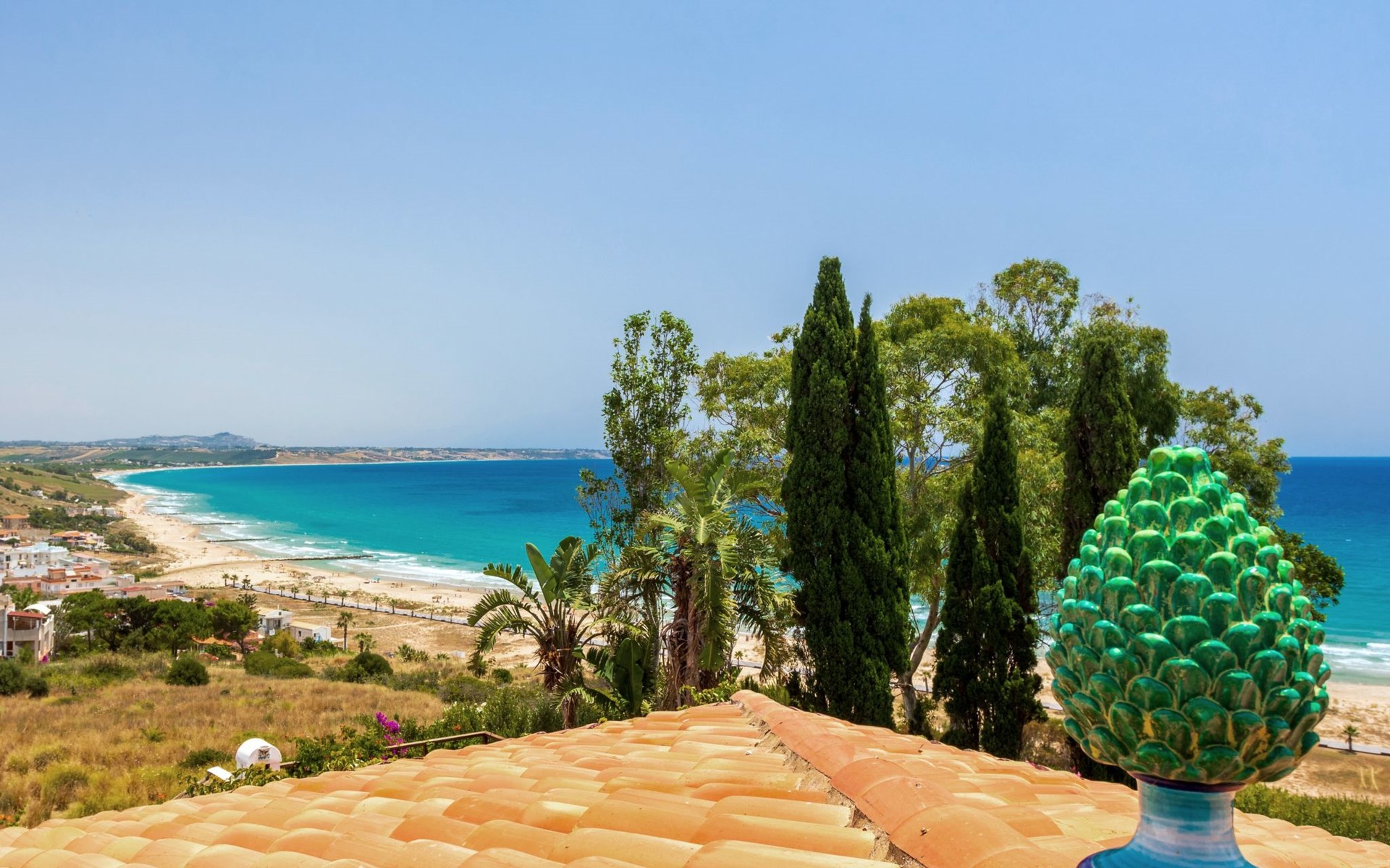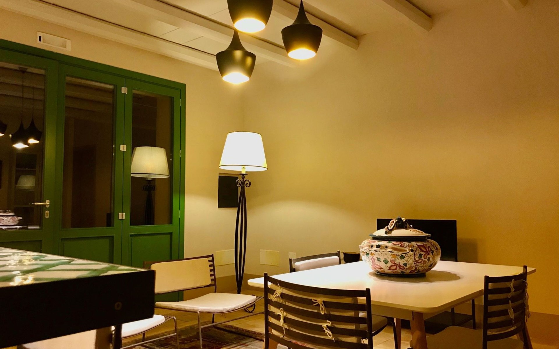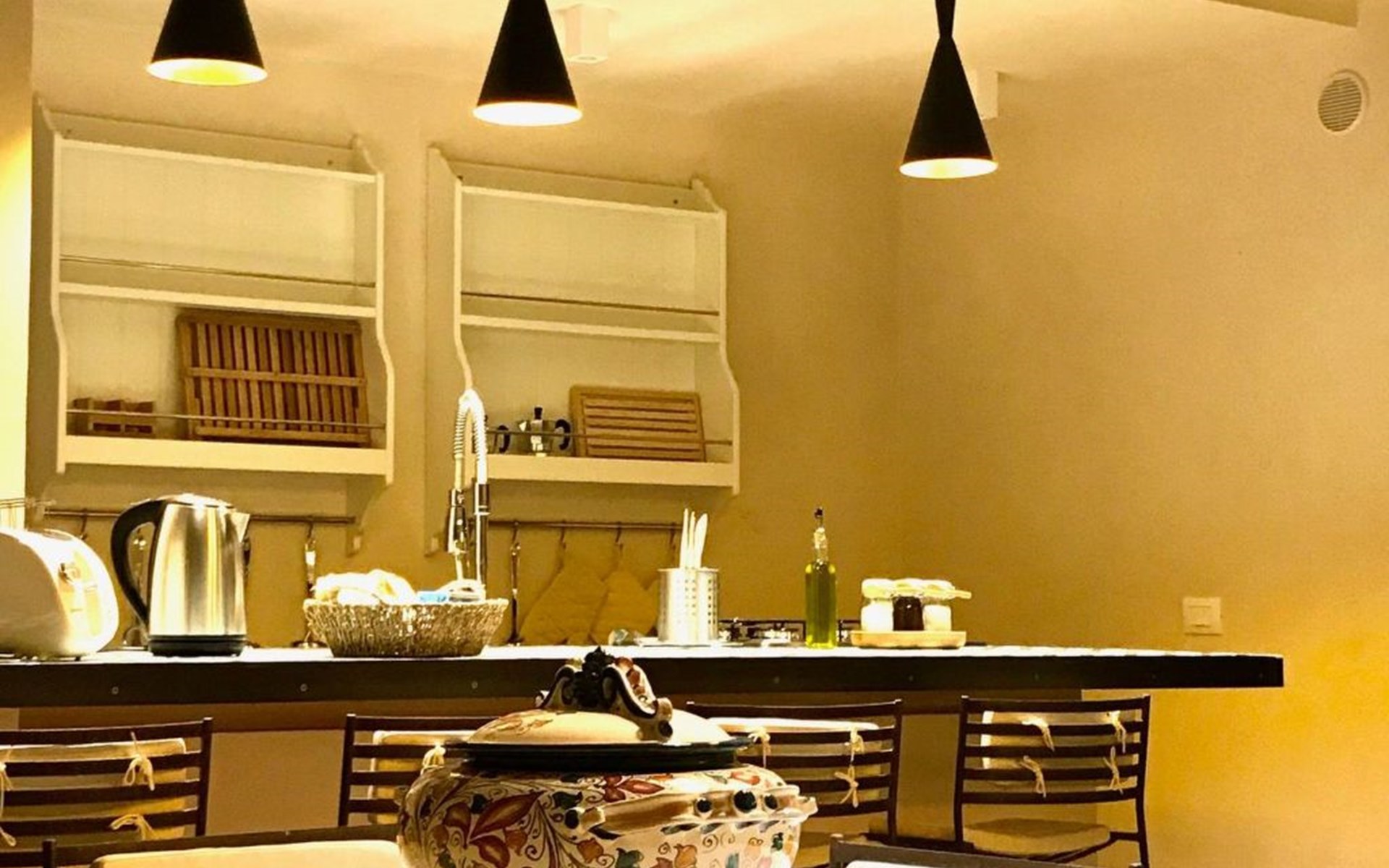 The Casa del Melograno is set in a vast flower garden, surrounded by vineyards, olive groves, orchards and other dense vegetation in a mutual contamination of Mediterranean colours, smells and flavours. It has its own private outdoor area, cosy and immersed in greenery. Two centuries-old carob trees mark the garden, from which there is a breathtaking view of the valley and the sea. The atmosphere is typically Mediterranean. A stay at the Casa del Melograno is a genuine Sicilian experience, where rurality and tradition guarantee a familiar and authentic welcome and hospitality. The possibility of spending pleasant moments of relaxation, enjoying private outdoor spaces, enriches this feeling of wellbeing, ease and intimacy. Outside, in their small gardens and verandas covered with reeds and bordered by palms, bougainvilleas, rose bushes and jasmine, guests can indulge in their moments of food and also enjoy the cool evenings that Sicily's temperate evening climate gives us. In addition to the spaces specifically belonging to the Pomegranate House, guests can also enjoy the Belvedere over the Menfi countryside, which merges to the south with the sea line, as well as the vegetable garden of Case Graffeo, set in a space bordered by a colourful hedge of prickly pears. The vegetables and greens, strictly organic, that the Graffeo family produces in this garden can be harvested directly by guests, who can then use them to prepare delicious dishes from the local culinary tradition.The Casa del Melograno in the Borgo di Case Graffeo is an ideal place to spend a pleasant natural and cultural holiday in western Sicily. From Menfi, by car and in some cases also by bicycle, in absolute relaxation and taking between 15 and 60 minutes, crossing gentle hills and admiring wonderful natural landscapes, it is possible to reach and visit numerous sites of historical and archaeological interest; to name but a few the Archaeological Park of Selinunte and Cave di Cusa - the most extensive evidence of Greek domination in Sicily -, the Greek Temple and Theatre of Segesta, the Oriented Nature Reserves of the Belice River and the Zingaro, the Scala dei Turchi the Greek Temple of Concordia and with it all the others that enrich and adorn the famous and marvellous Valley of the Temples in Agrigento - included since 1997 in the list of World Heritage Sites drawn up by UNESCO - and then Mazara del Vallo with the Museum that preserves its Dancing Satyr - an emblem of Mediterranean beauty, an example of the submerged cultural heritage recovered in the sea of Sicily - and the Salt Pans of Marsala, Erice and Trapani.In addition to the spaces specifically pertaining to the Casa del Melograno, which include a large, bright, reed-covered veranda on the ground floor, overlooking the Fruit Garden, guests can enjoy the Belvedere over the Menfi countryside that merges to the south with the sea line, as well as the vegetable garden of Case Graffeo, set in a space bordered by a colourful hedge of Prickly Pears; The vegetables and greens, strictly organic, which the Graffeo family produces in this garden, can be picked directly by the guests and processed by them for the preparation of delicious dishes of the local culinary tradition.The Casa del Melograno (Pomegranate House) is one in which the path to access it is studded with the scents and colours of Sicily and the influences that this region inherited from the Arabs in the past. A domination that began in 867 A.D. and lasted for about two centuries. One is immersed in a courtyard characterised by the presence of the Musciarabia - from the Arabic Mušrabīya -. It is a space closed on three sides and open from above; a fourth side, that of the Musciarabia, closes the courtyard. The grid, with its classic regular geometric fretwork, typical of Islamic art and culture, allows shade on one side and wind in on the other; it creates a particularly favourable climatic condition for the development and protection of Mediterranean domestic plants, both ornamental and fruit trees. Consistent with this function, in the courtyard of the Musciarabia grow luxuriantly a Palm and in particular a Pomegranate from which we have taken our inspiration to identify this house. Around the base of the Palm grows and blossoms a marvellous carpet of delightful Callas which, with their green leaves and white flowers, in harmony with the Palm and the Pomegranate, allow the Musciarabia to make those who pass through it feel and experience an intense sensation of Mediterranean contamination. On leaving the Musciarabia, the east-facing veranda of the House with its reed roof opens out; from it, through a wide four-leaf door, one enters the interior where guests are welcomed into the spacious and bright living room, overlooking the orchard garden. A strongly distinctive element of the house, as well as of this area, is the presence of a large and efficient cooking corner in which the predominant element, as well as a link with the rural tradition of the area, is a hob and work surface made of ceramic tiles produced by a Master Ceramist from Sciacca; these tiles reproduce the colours, designs, lines and inserts of 18th-century Sciacca ceramic production. The living room is equipped with every comfort; the furnishings combine tradition, typicality and rurality with simplicity, sobriety and essentiality. In the centre of the room, special, comfortable designer armchairs allow for fantastic moments of absolute relaxation. Outside the living room is the reed-covered veranda; as it overlooks the orchard garden, it gives our guests the opportunity to travel through a sensory journey created naturally by the scents of the Mediterranean fruits and essences that ripen in that garden. They can then in this cosy space organise their moments dedicated to food and also enjoy the cool evenings that the temperate evening climate of Sicily gives us. The house is arranged on one floor; in addition to the living room, it includ
