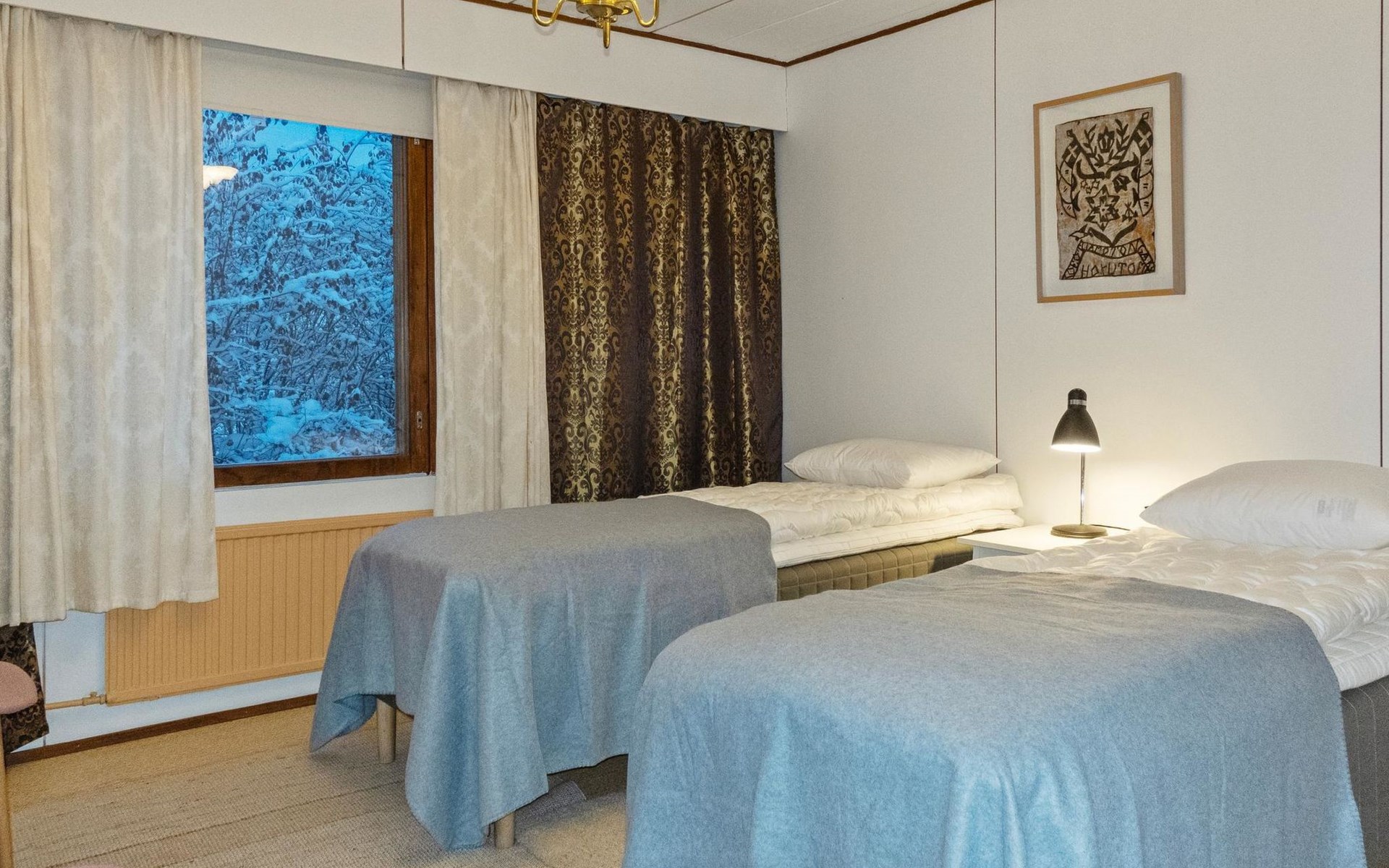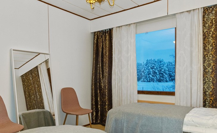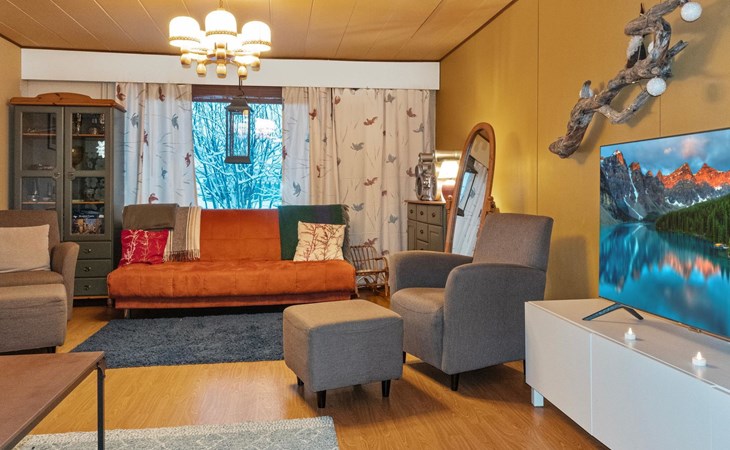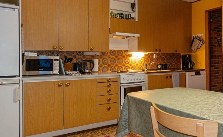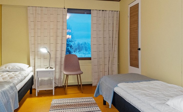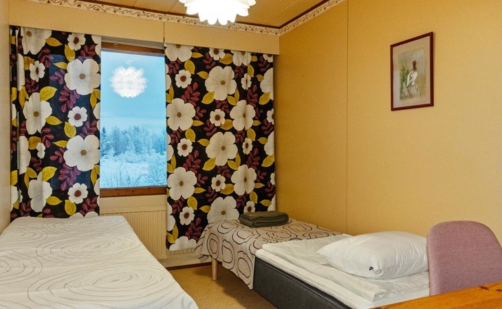 The house is old but well-maintained. All rooms are on one level and provide the basic comforts of a detached house (including electricity, running water, indoor WC, and sauna). There are three bedrooms with a total of 6 beds.