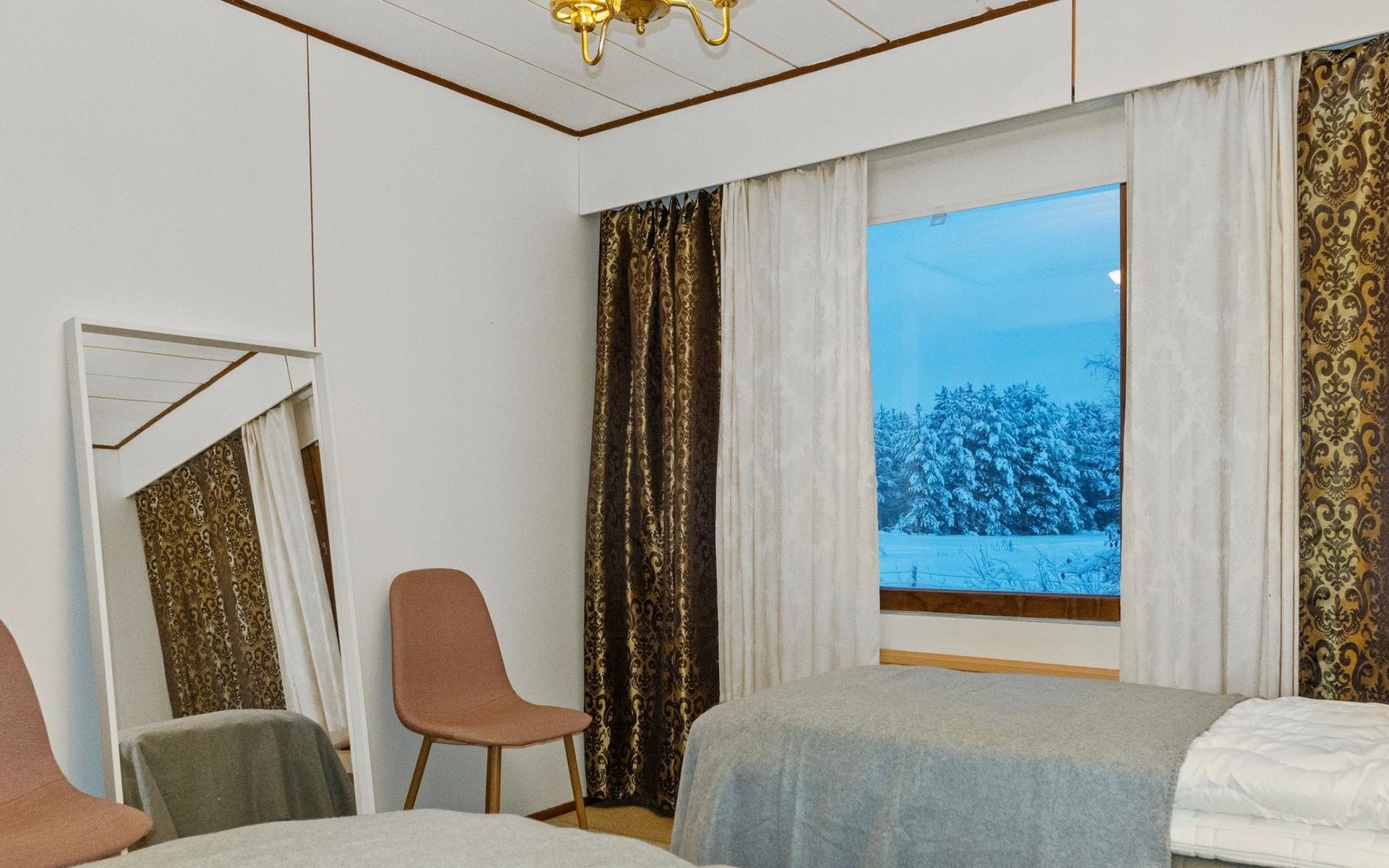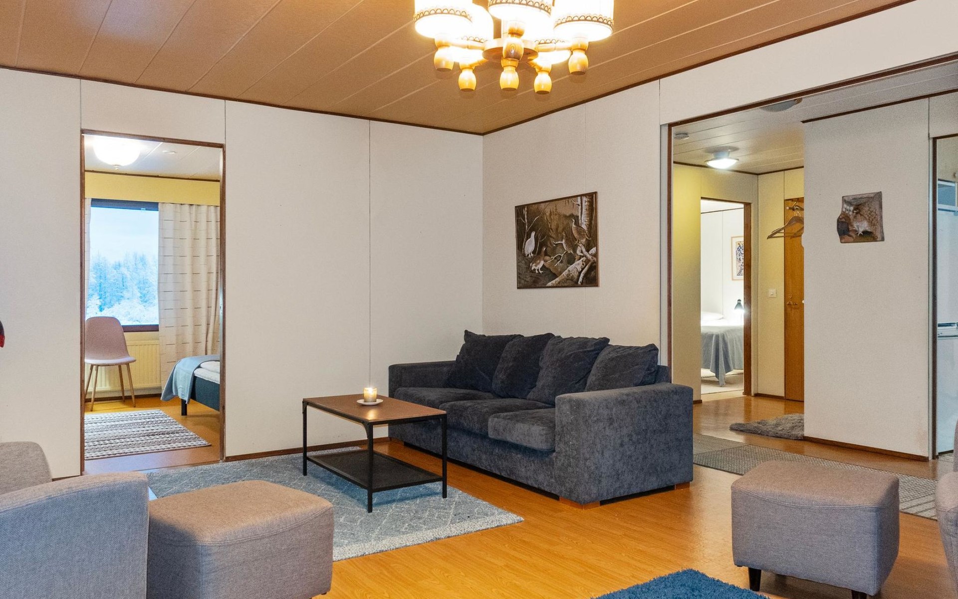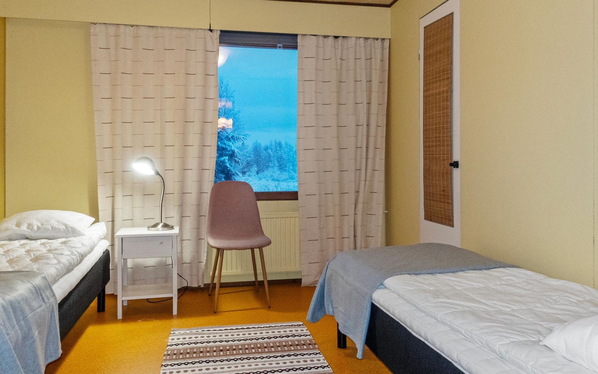 The house is old but well-maintained. All rooms are on one level and provide the basic comforts of a detached house (including electricity, running water, indoor WC, and sauna). There are three bedrooms with a total of 6 beds.