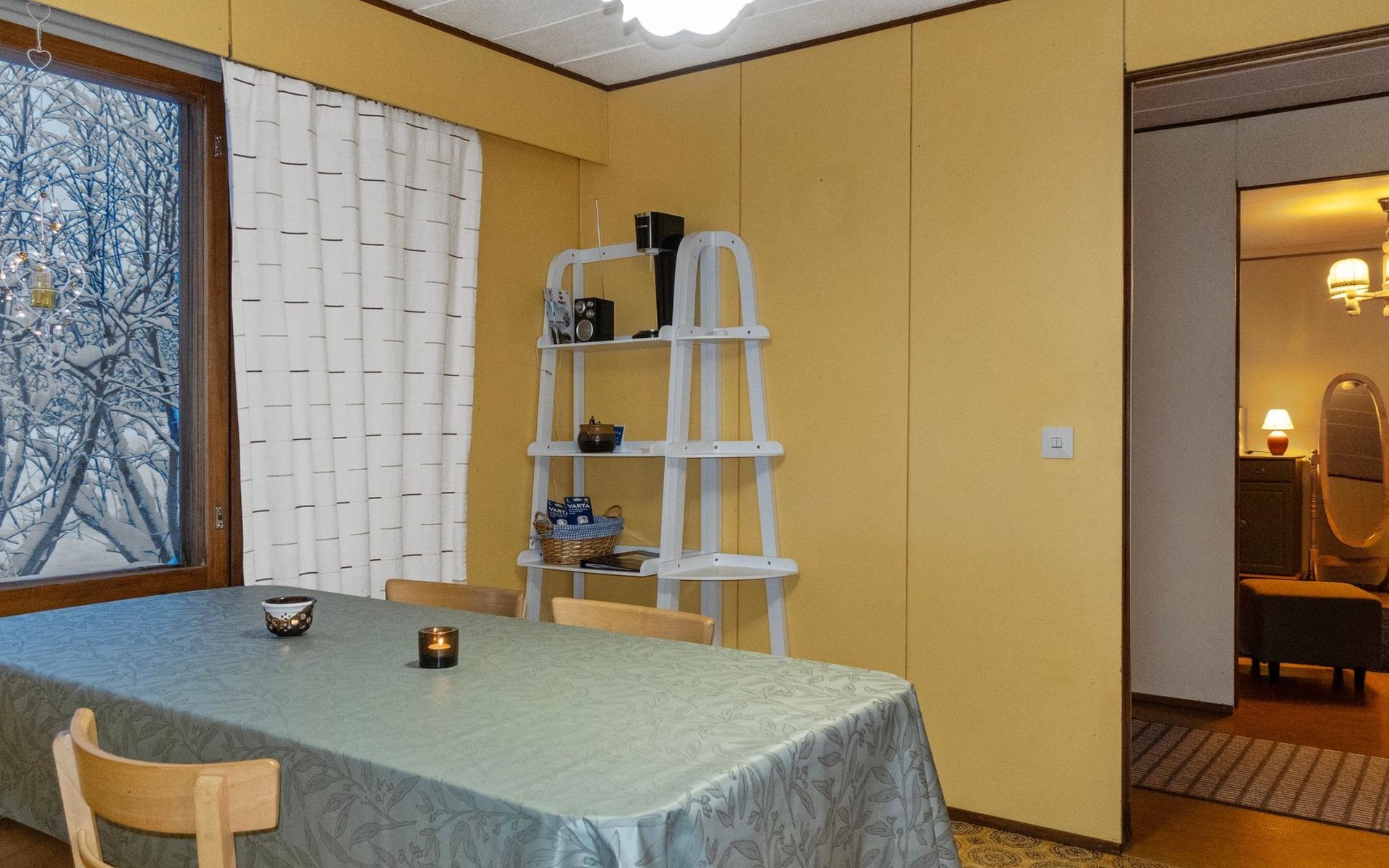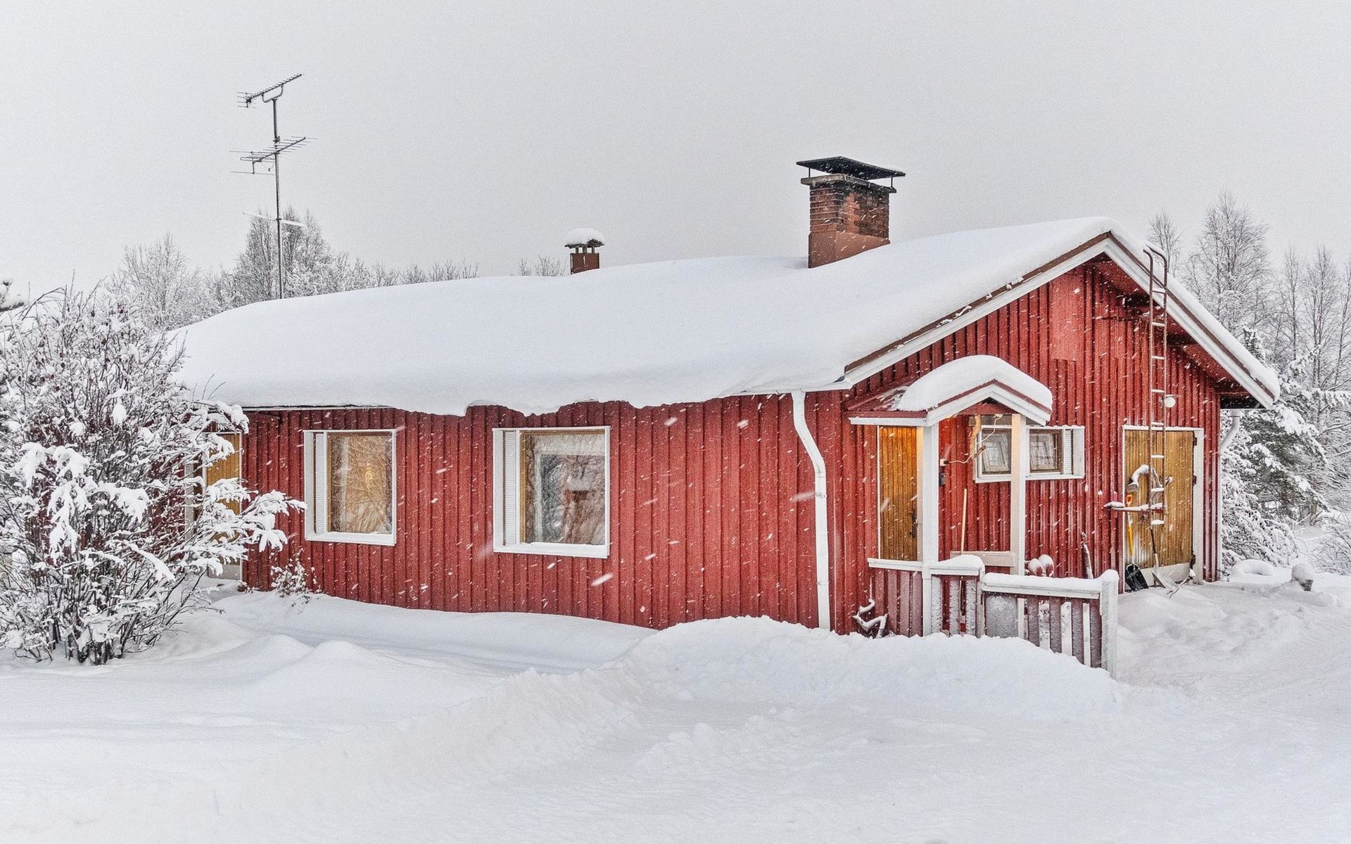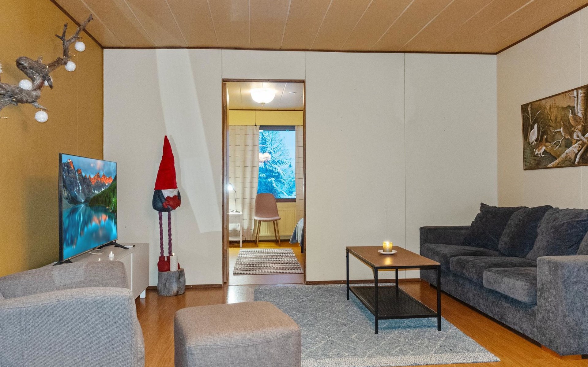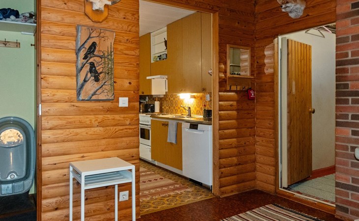 During the winter, you may have the opportunity to enjoy the Northern Lights in the courtyard. The village-maintained ski trail passes by the cabin, allowing you to start skiing right from the yard.