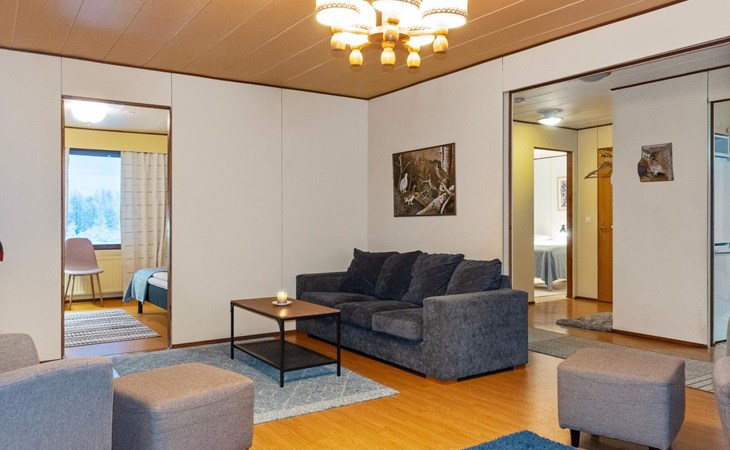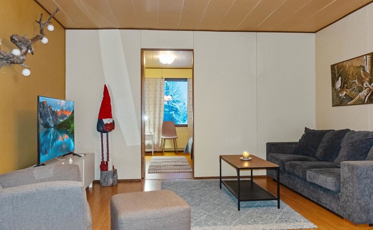 The apartment is situated within a short walking distance (approx. 300 m) from the shores of Lake Lokka, where you can also find a public hut. The Luiro riverside and Lokka suspension bridge are 200 m away.