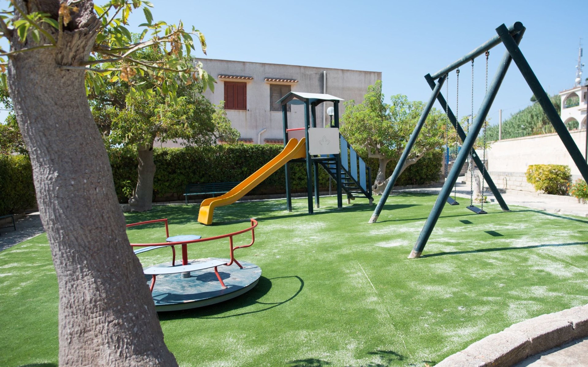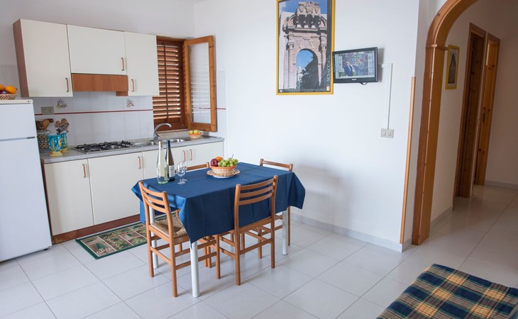 The flat, furnished in a simple and functional way, consists of a living room with kitchenette and double sofa bed, a double bedroom, small bedroom with two beds or bunk beds, bathroom with shower, and a comfortable terrace equipped with table and chairs for outdoor dining. The accommodation will give you the opportunity to spend a holiday of relaxation and well-being.Guests will have the opportunity to use the common areas inside the residence, such as the green areas with gazebo, tennis court and five-a-side football pitch, playground, barbecue area, and will be able to park for free inside the residence.Guests will be supported by our presence and advised on the best places to visit and the wine and food appointments not to be missed in an area so rich in tradition.The flat is located in San Marco Renella, famous for its lush vegetation, the variety of its underwater landscape and its unspoilt beaches.The flat is the ideal starting point for visiting the Valley of the Temples in Agrigento, the Archaeological Park of Selinunte, the Temple of Segesta, nature reserves such as Torre Salsa and the Zingaro, and the beaches of Eraclea Minoa, Scala dei Turchi and Menfi.Bed linen is included in the stay and, on request, bathroom linen at an additional cost.An internet access password will be provided to tourists.Small pets are allowed, with a small supplement, by contacting the property in advance.Cleaning fee included in the total daily price.Short descriptionOther : Non-smoking houseShort description 1Total kitchens : 1ServicesServices (possibly for a fee) : Laundry service during your stay, Shuttle service (airport, etc.)Garden and outdoor spacesGarden facilities : Playground equipment, Grill, Garden furniture availableNeighbouring leisure facilities : Tennis court, Playground, Table tennisThe flat is the ideal starting point for visiting the Valley of the Temples in Agrigento, the Archaeological Park of Selinunte, the Temple of Segesta, nature reserves such as Torre Salsa and the Zingaro, the beaches of Eraclea Minoa, Scala dei Turchi and Menfi.Upon arrival, guests will be provided with some useful information on the most popular destinations to visit in the area.SurroundingsSports facilities nearby : Football pitch, Golf course, Sailing, Mountain biking, Fishing, Snorkelling, TennisRental Facilities : Boat rental. IT084041B4U4K7DU2P