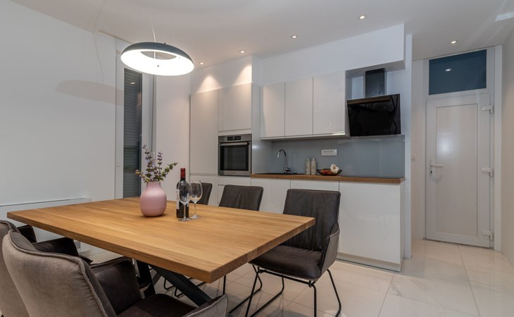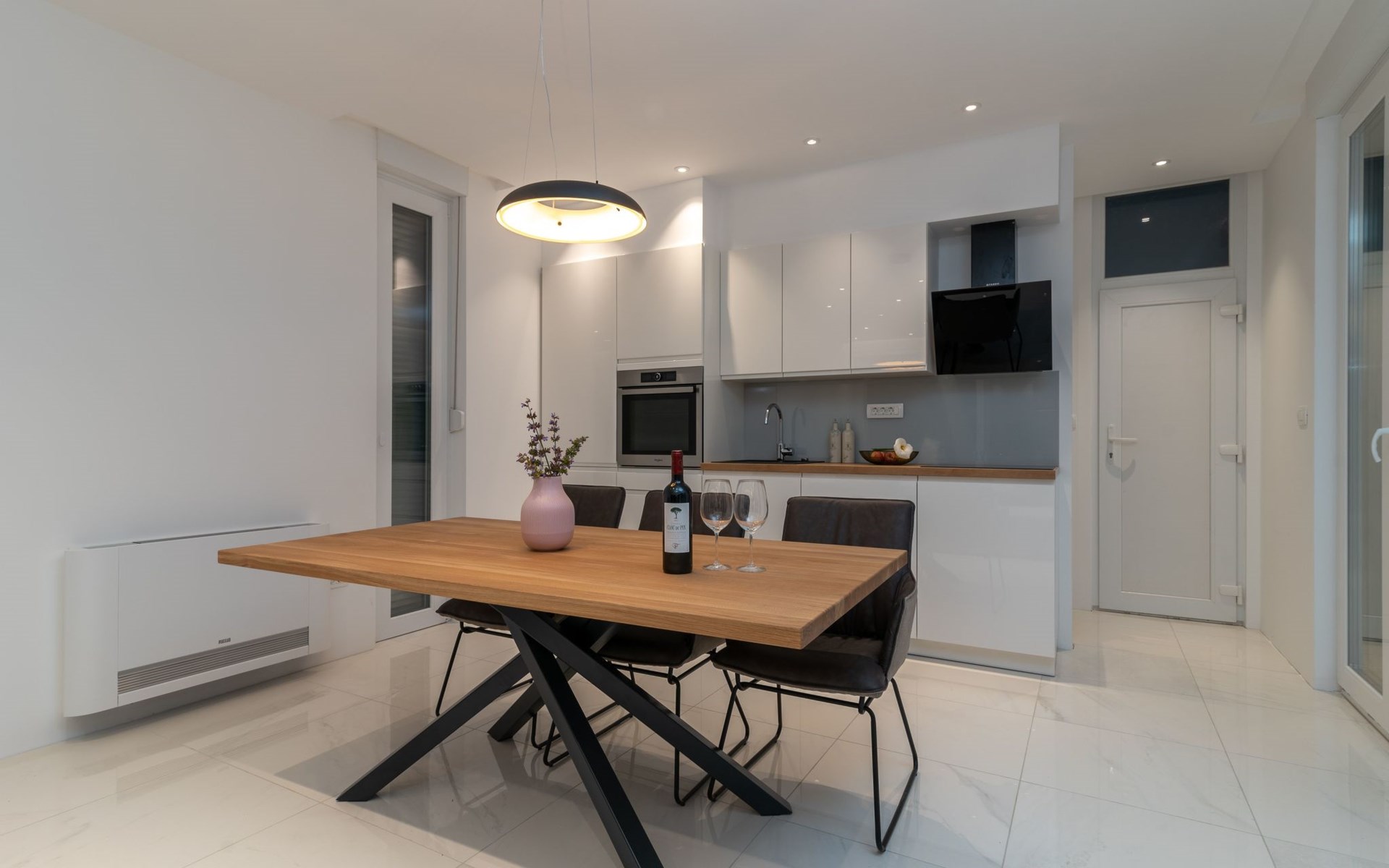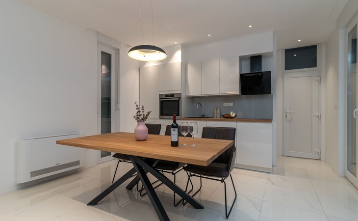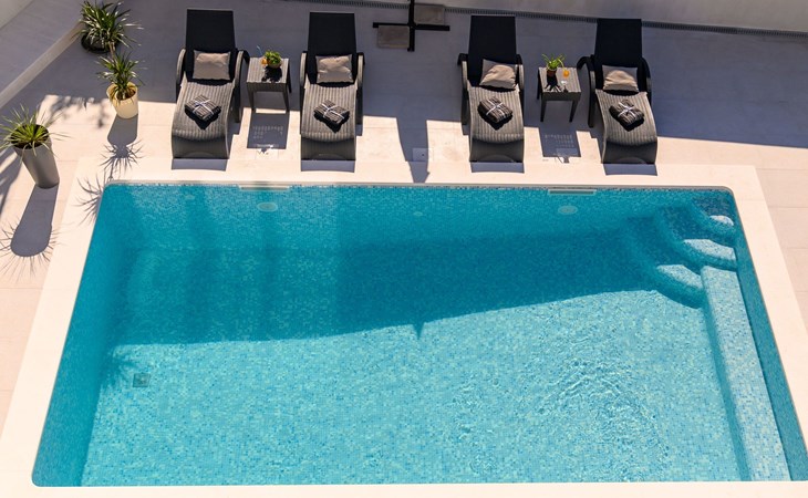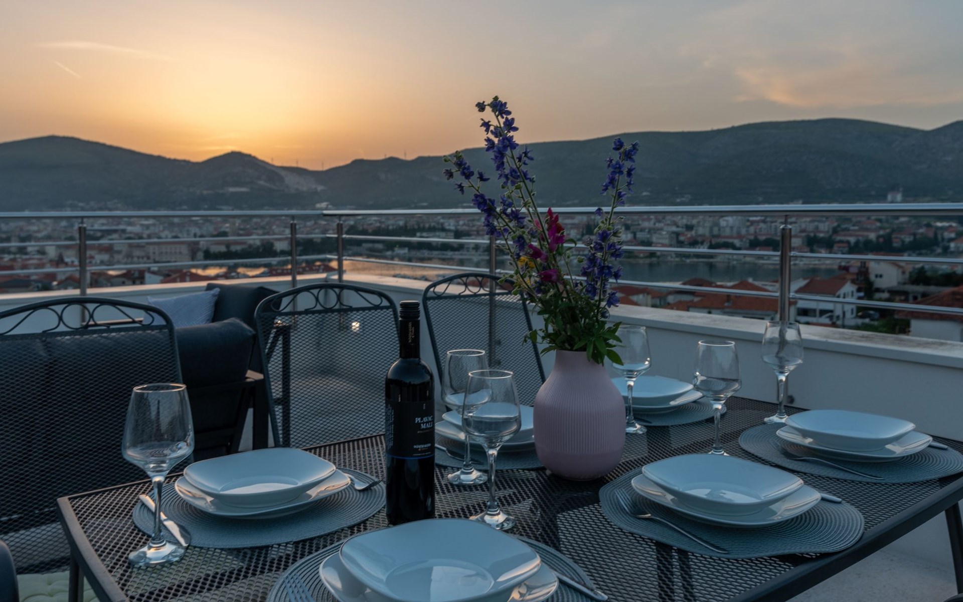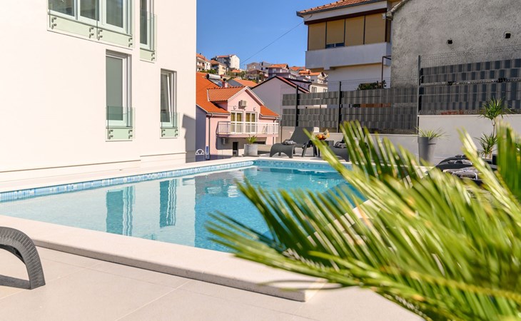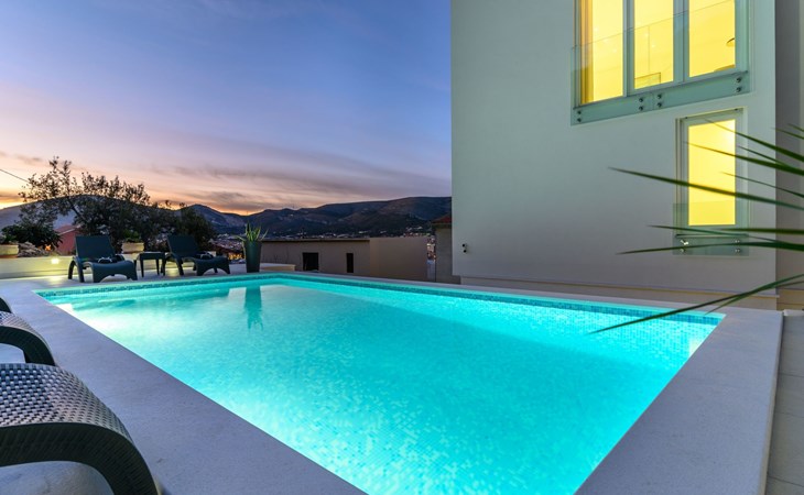 Experience unparalleled luxury and comfort in our brand-new villa, embarking on its inaugural season to offer guests the pinnacle of vacationing. Leveraging years of experience in the tourism industry, we’ve crafted every aspect of your stay to ensure a relaxing, stress-free, and unforgettable holiday. Set against the majestic backdrop of the Adriatic Sea and the historic old town of Trogir, this villa epitomizes the perfect holiday retreat.Inside, the villa unfolds over three spacious floors, each meticulously designed for your comfort. The second floor, a breathtaking open-concept space, houses the living room, dining room, and kitchen, all framing stunning views through a French balcony. Bedrooms, located on the ground and first floors, offer serene private havens, paired with modern bathrooms that ensure your utmost convenience and privacy. Throughout the villa, WiFi access keeps you connected, enveloping you in the luxury and ease of modern living.Outside, the villa’s allure continues with a rooftop terrace presenting a spectacular vantage point over the sea and Trogir’s old town. This outdoor relax zone is the villa’s crowning glory, inviting you to unwind and drink in the breathtaking panorama. The beautifully designed swimming pool offers a tranquil escape, encouraging leisurely days spent basking in the sun after exploring the local sights.Nestled just a 10-minute walk from Trogir’s captivating old town center, the villa’s location is second to none. Proximity to a pristine beach and the town center places you in an ideal spot to experience everything this enchanting area has to offer, from historical sites to culinary delights. Every need or desire for a perfect holiday is within easy reach, making each day a new opportunity for adventure and exploration.Embrace the luxury, serenity, and immaculate design of our villa for a holiday that transcends the ordinary. Let the breathtaking views of the Adriatic and the cultural richness of Trogir craft your unforgettable holiday narrative. Here, every moment is a promise of relaxation, inspiration, and experiences that will linger long after your journey home.