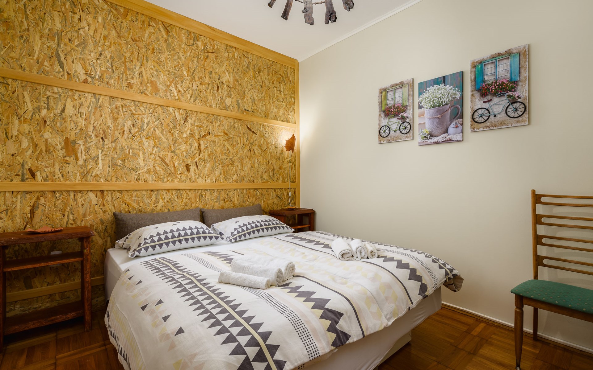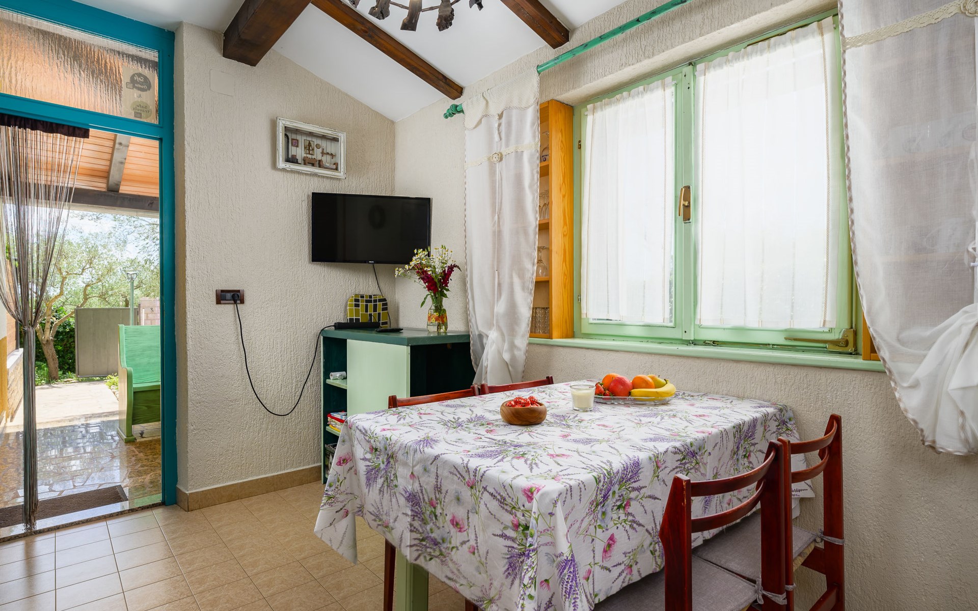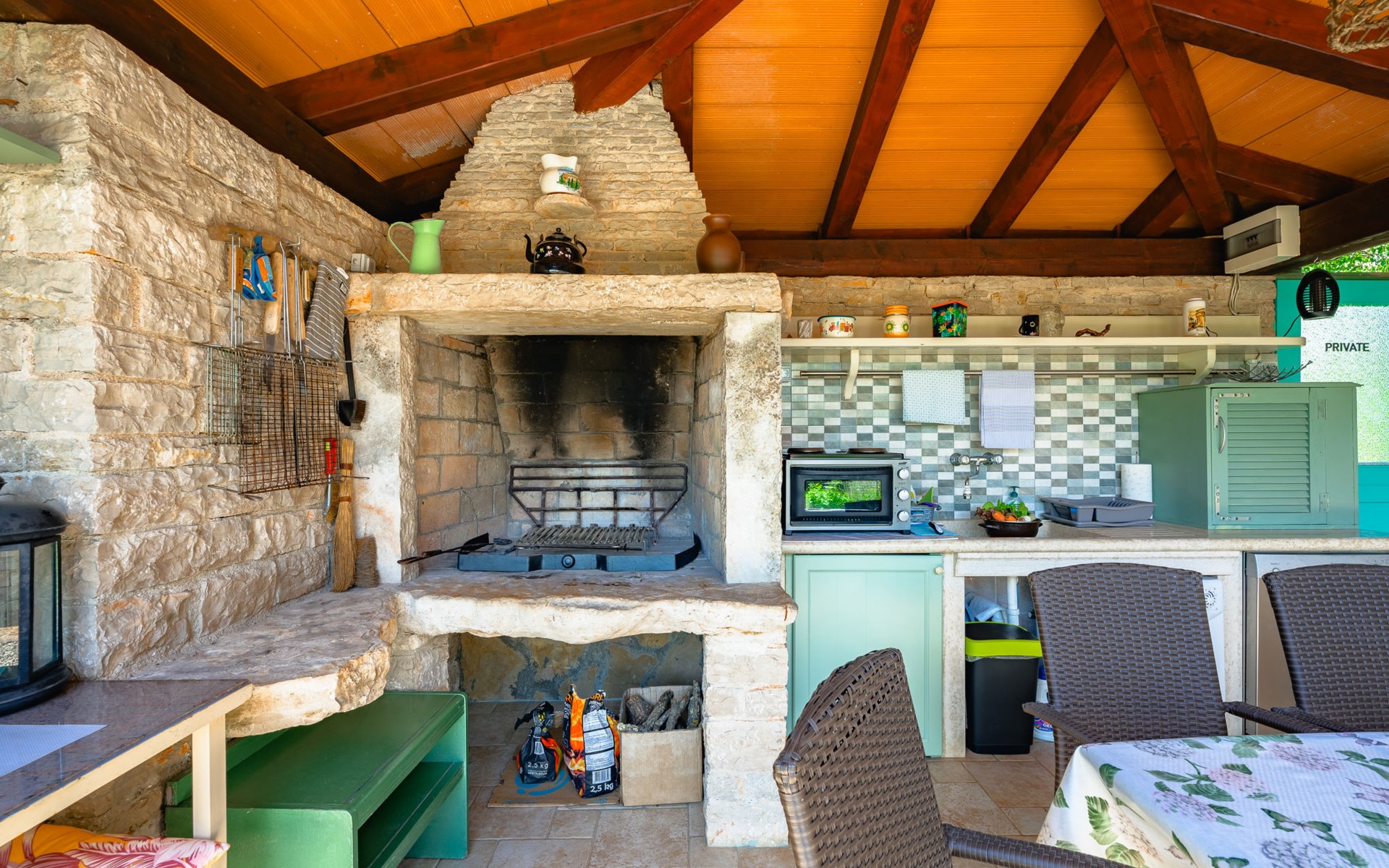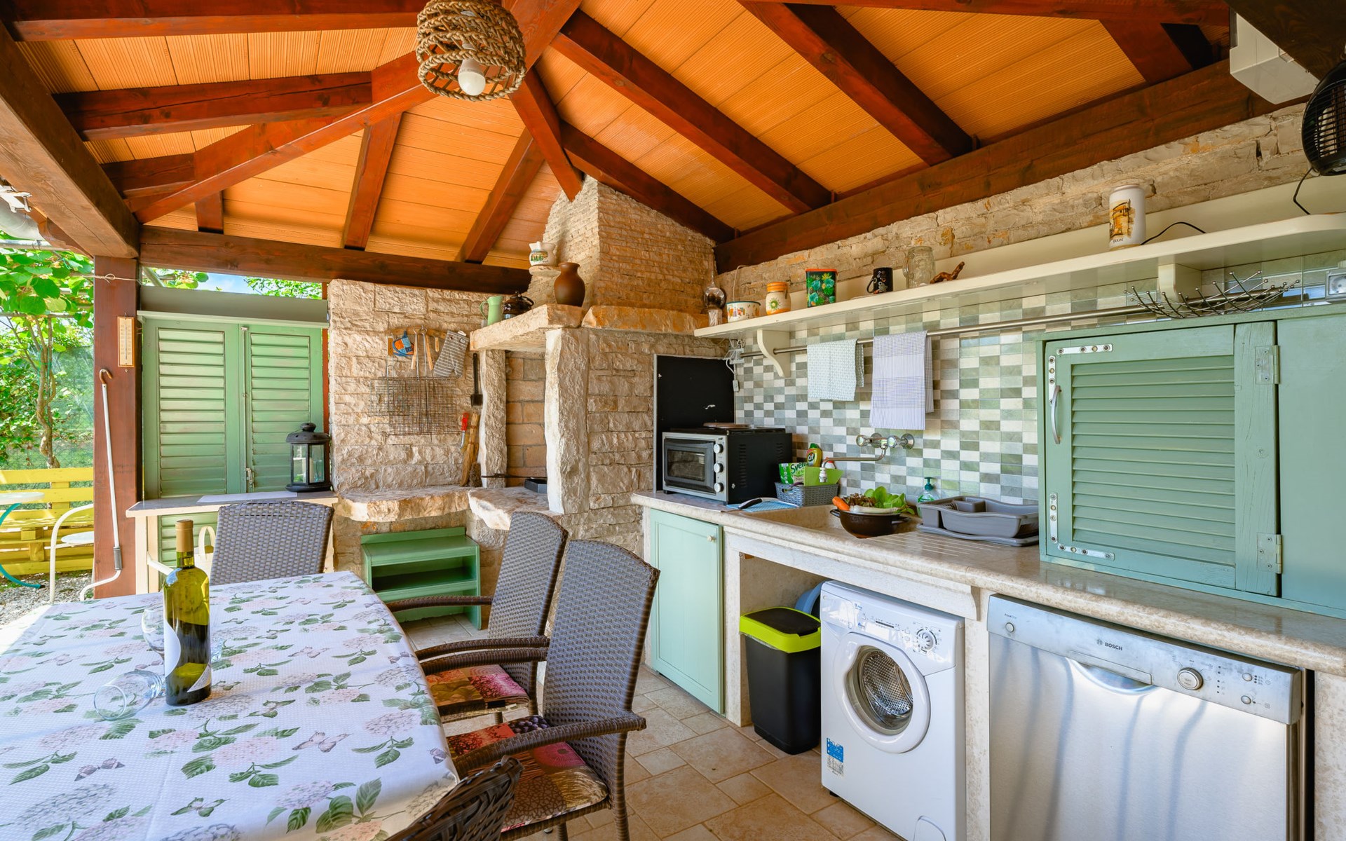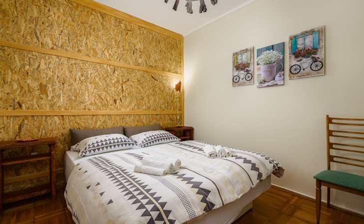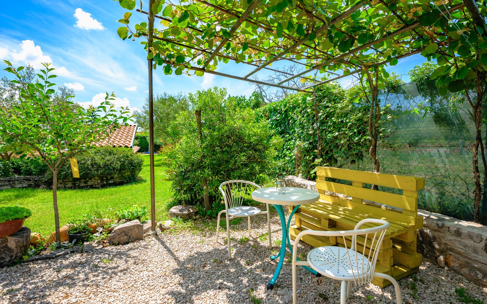 Twee onder één kap woning "Pina". In het gehucht Muntrilj, 15 km van het centrum van Pazin, 4 km van het centrum van Tinjan, 18 km van het centrum van Poreč, 18 km van zee. Voor medegebruik: terrein 3.000 m2 met gazon en bomen. Voor alleengebruik: terrein 500 m2 (omheind) met gazon en planten, openluchtzwembad rond (38 m2, 120 cm diepte, seizoensgebonden beschikbaarheid: 01.Mei. - 01.Okt.). Buitendouche, jeu de boules, terras, barbecue (schommel), onderhoud zwembad door de eigenaar/tuinman. In het huis: internetaansluiting. Parkeerplaats op het terrein. Winkel 4 km, supermarkt 15 km, restaurant 4 km, bushalte 3.3 km, rotsstrand 18 km. Jachthaven 18 km. De eigenaar woont in hetzelfde huis. Voor alleengebruik:buitenkeuken (2-pits kookplaat).