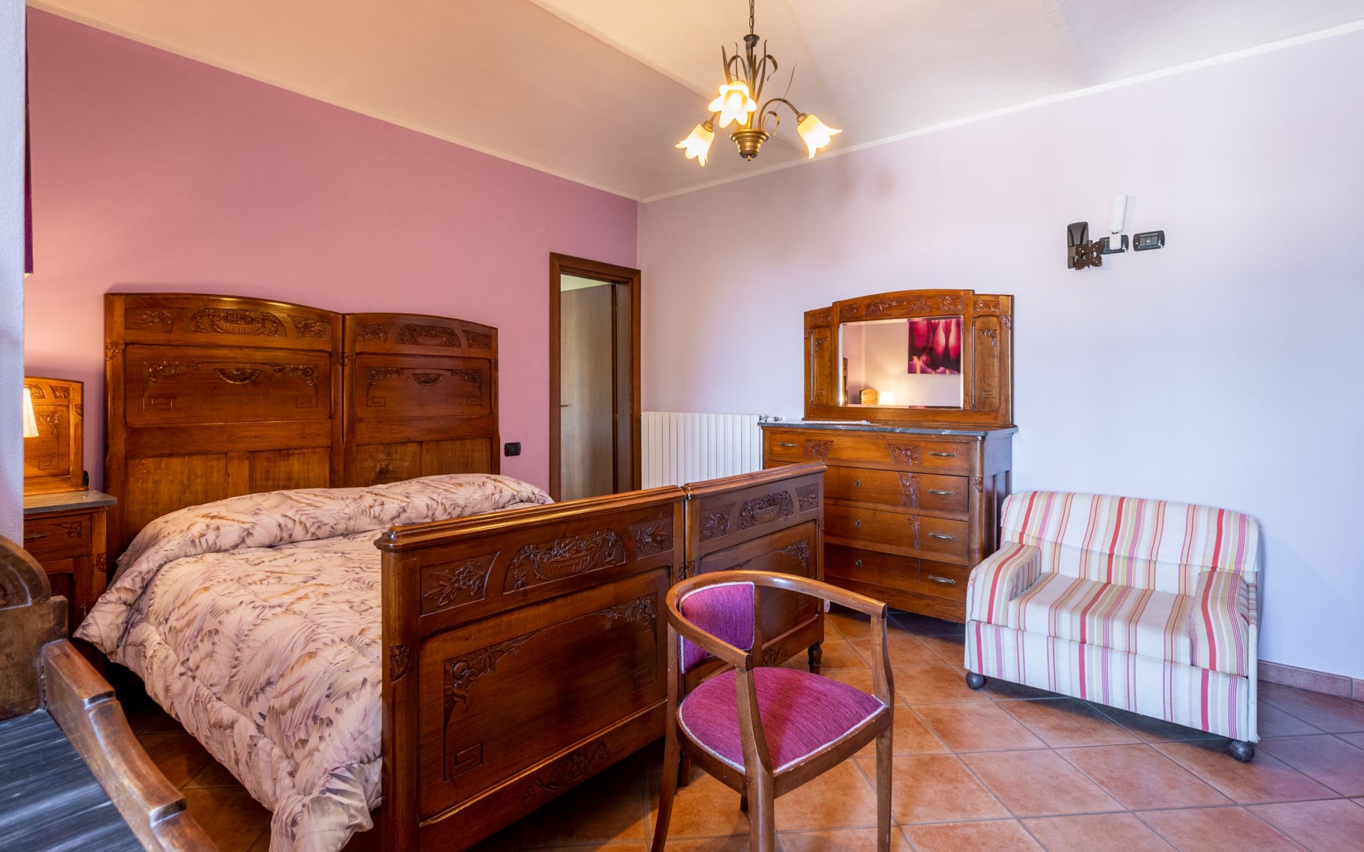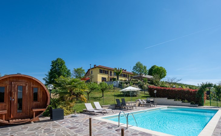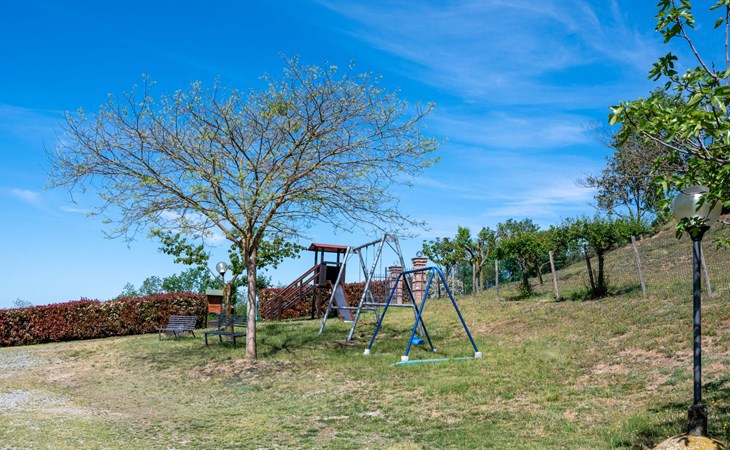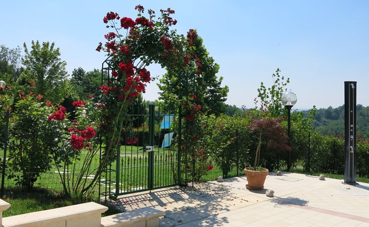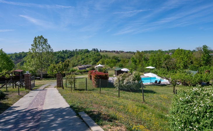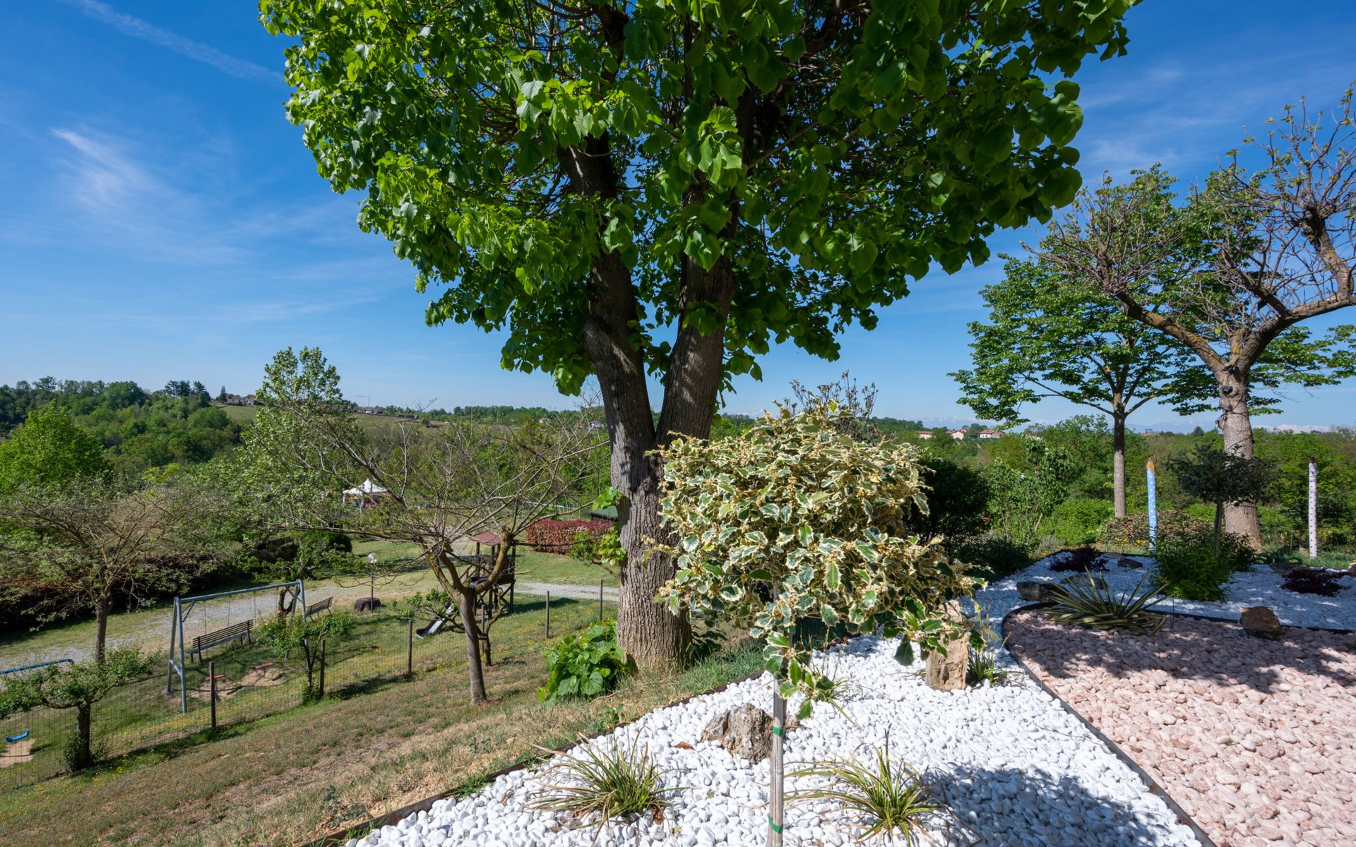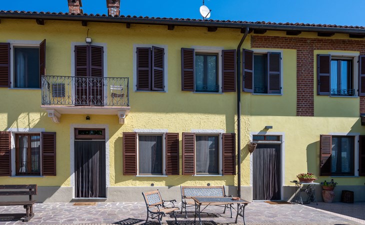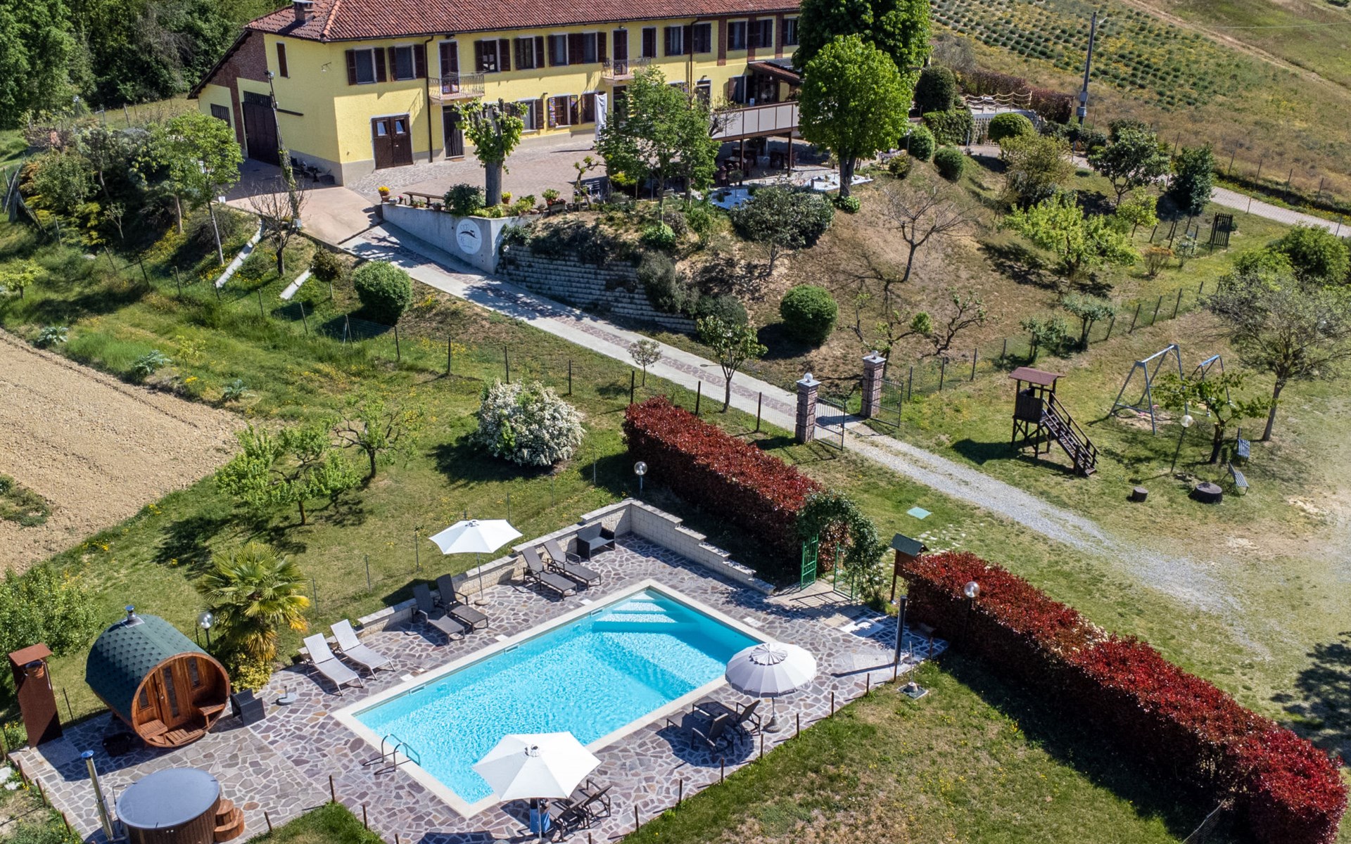 Agriturismo "Agriturismo I Tre Tigli", van 2 verdiepingen, omgeven door bomen en wijngaarden. 10 km van het centrum van Asti, 2 km van het centrum van Montegrosso Cinaglio, 55 km van het centrum van Turin, verhoogde ligging tegen een helling. Voor medegebruik: terrein 4.000 m2, tuin op verschillende niveaus (niet omheind) met wilde tuin, weide, boomgaard, openluchtzwembad (10 x 5 m, 100 - 160 cm diepte, seizoensgebonden beschikbaarheid: 01.Mei. - 30.Okt.). Buitendouche, terras (150 m2), tuinmeubelen, onderhoud zwembad door de eigenaar/tuinman. In het huis: restaurant, sauna (extra). Tafelvoetbal. Ontbijt en half pension op verzoek (extra). Parkeerplaats bij het huis op het terrein. Supermarkt 5 km, bushalte 2 km, treinstation "Asti" 10 km. Golfterrein (18 holes) 15 km. Op het grondstuk dierhouderij. Lokale verkoop van streekproducten. Eigenaar woont in apart huisgedeelte.