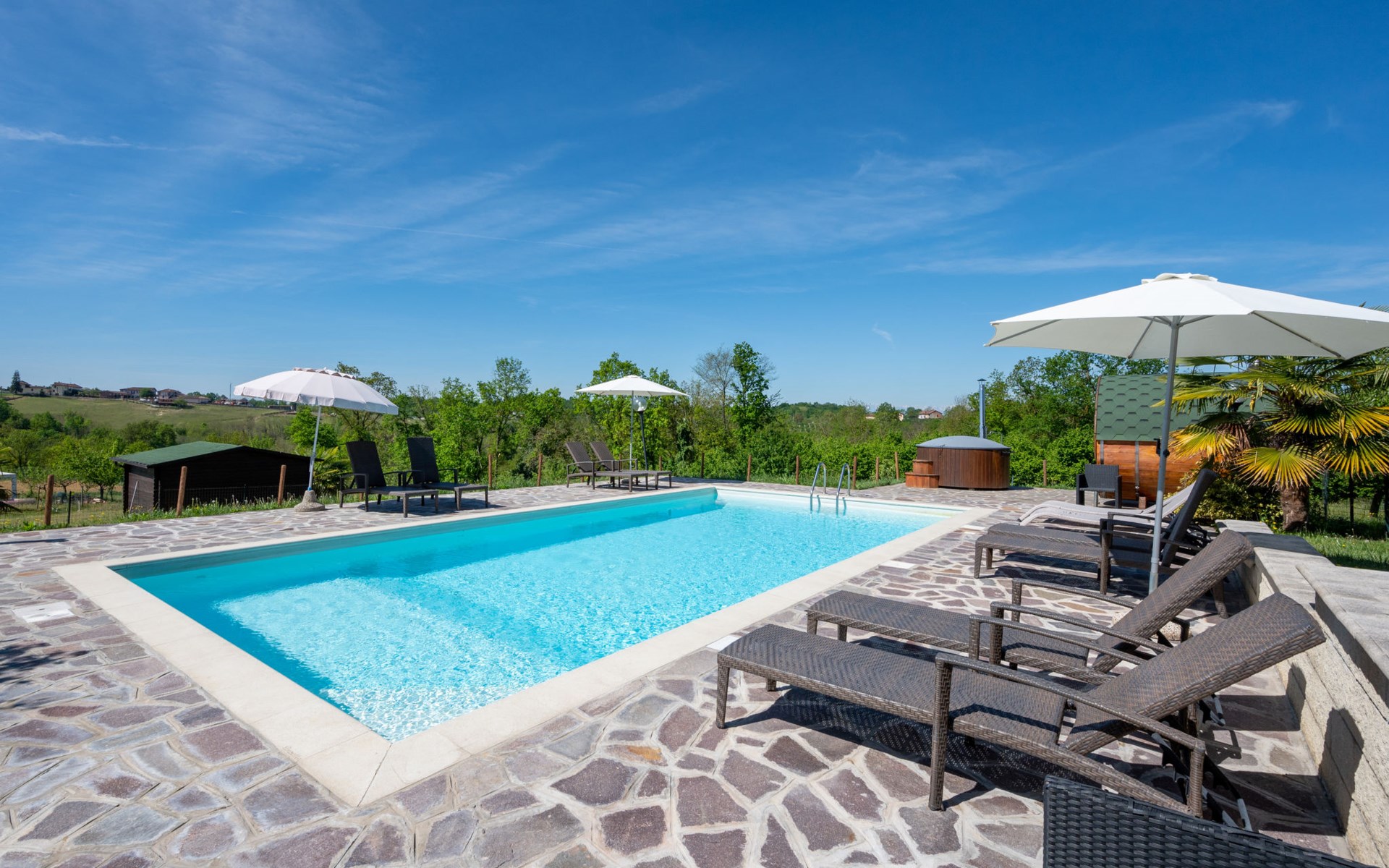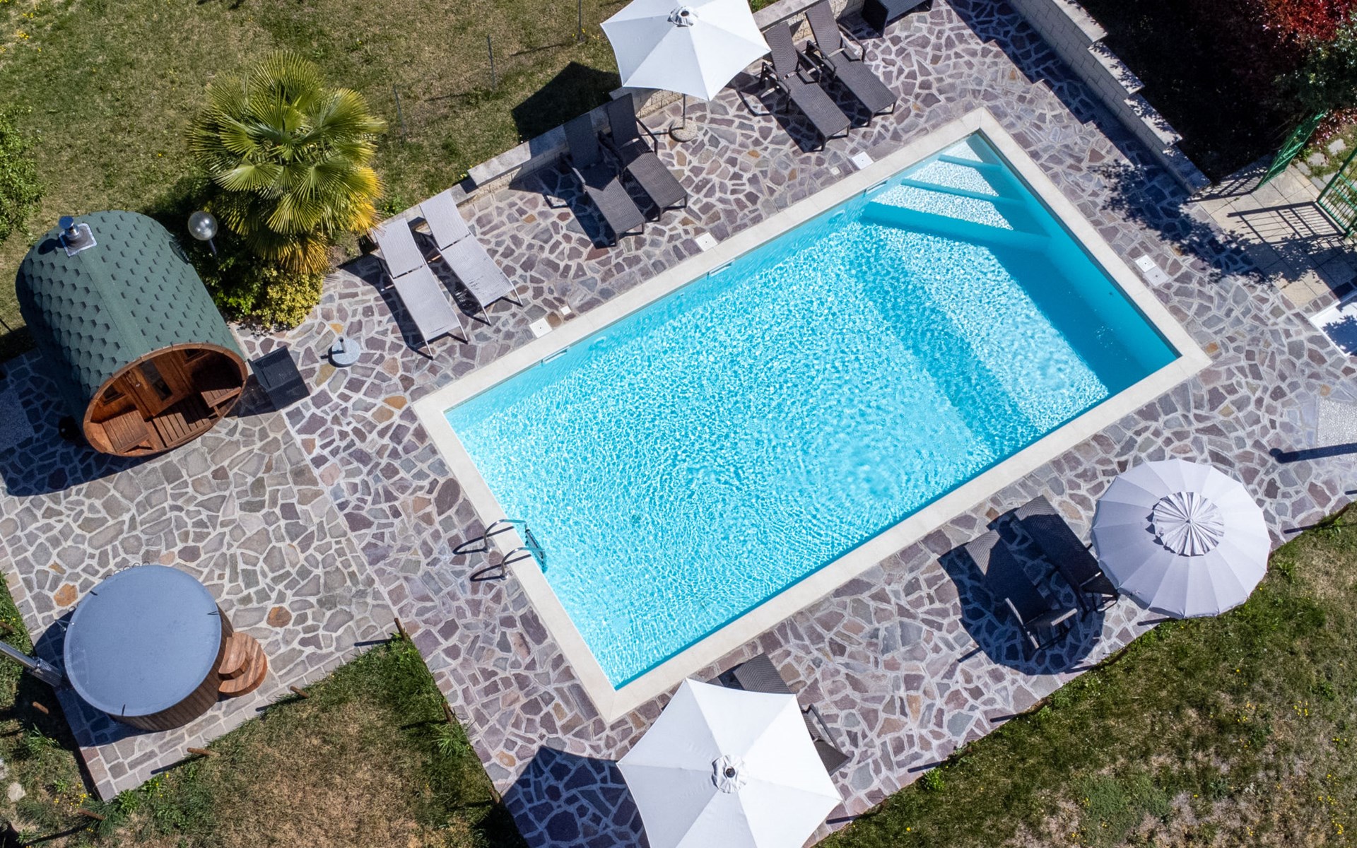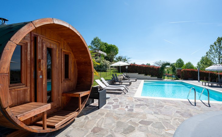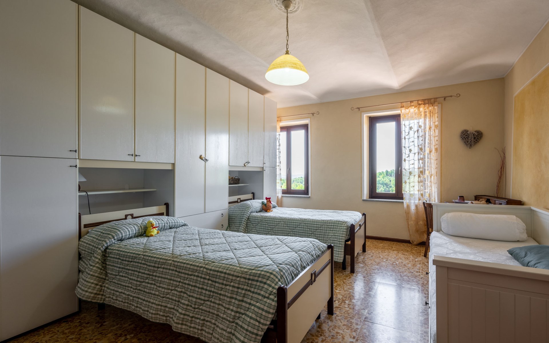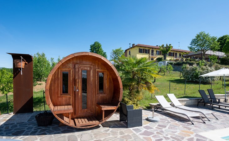 Agriturismo "Agriturismo I Tre Tigli", van 2 verdiepingen, omgeven door bomen en wijngaarden. 10 km van het centrum van Asti, 2 km van het centrum van Montegrosso Cinaglio, 55 km van het centrum van Turin, verhoogde ligging tegen een helling. Voor medegebruik: terrein 4.000 m2, tuin op verschillende niveaus (niet omheind) met wilde tuin, weide, boomgaard, openluchtzwembad (10 x 5 m, 100 - 160 cm diepte, seizoensgebonden beschikbaarheid: 01.Mei. - 30.Okt.). Buitendouche, terras (150 m2), tuinmeubelen, onderhoud zwembad door de eigenaar/tuinman. In het huis: restaurant, sauna (extra). Tafelvoetbal. Ontbijt en half pension op verzoek (extra). Parkeerplaats bij het huis op het terrein. Supermarkt 5 km, bushalte 2 km, treinstation "Asti" 10 km. Golfterrein (18 holes) 15 km. Op het grondstuk dierhouderij. Lokale verkoop van streekproducten. Eigenaar woont in apart huisgedeelte.