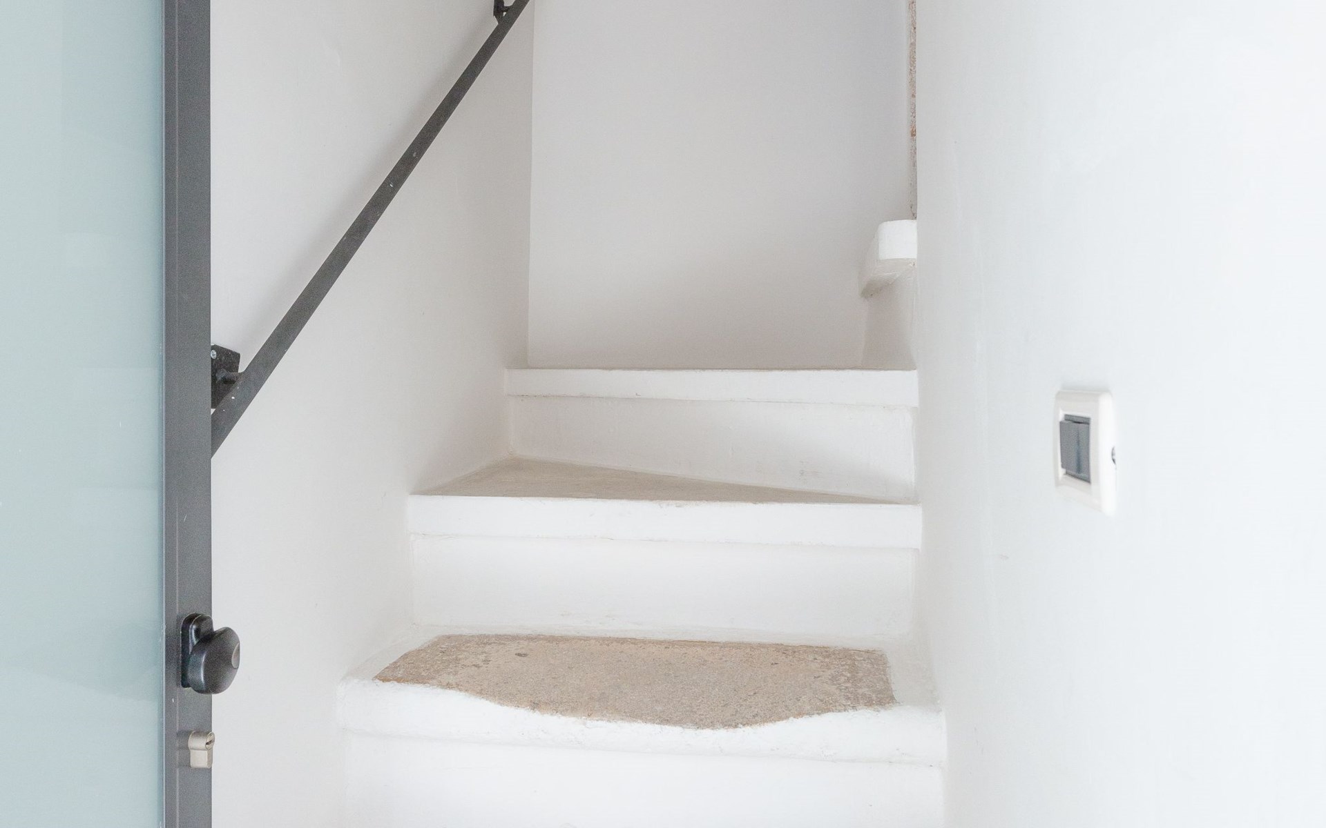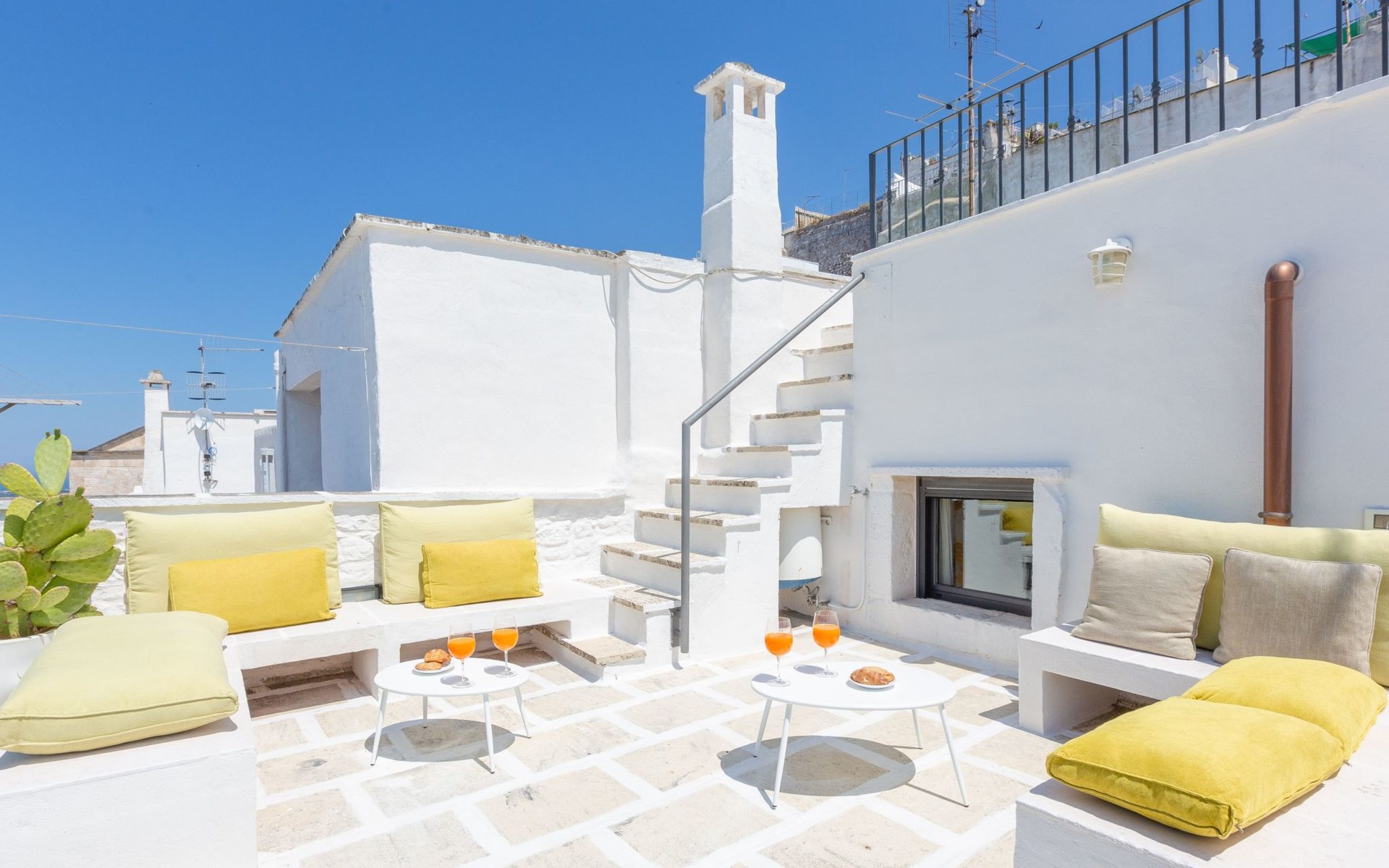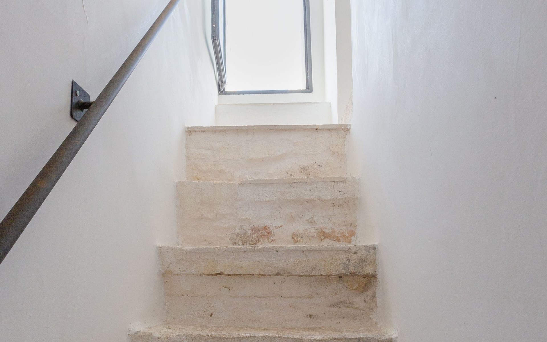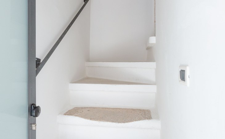 Om het terras te bereiken is er een trap met onregelmatige treden. De overgang van de ene verdieping naar de andere vereist sportiviteit.